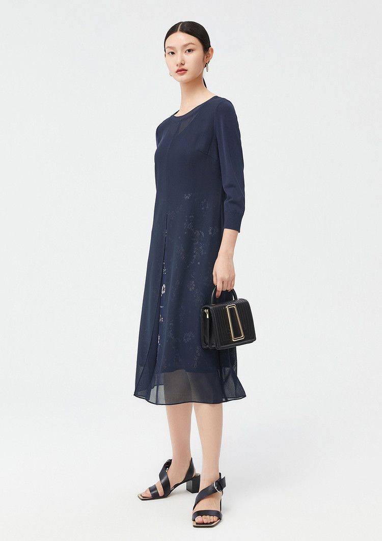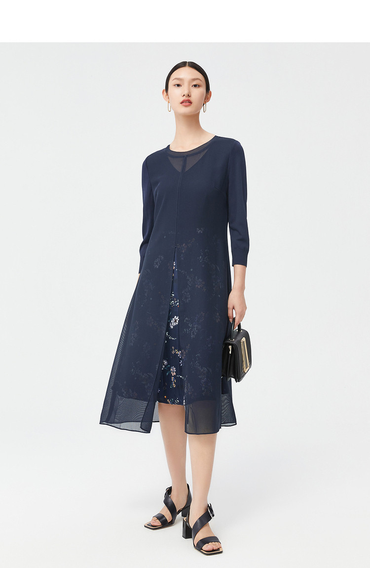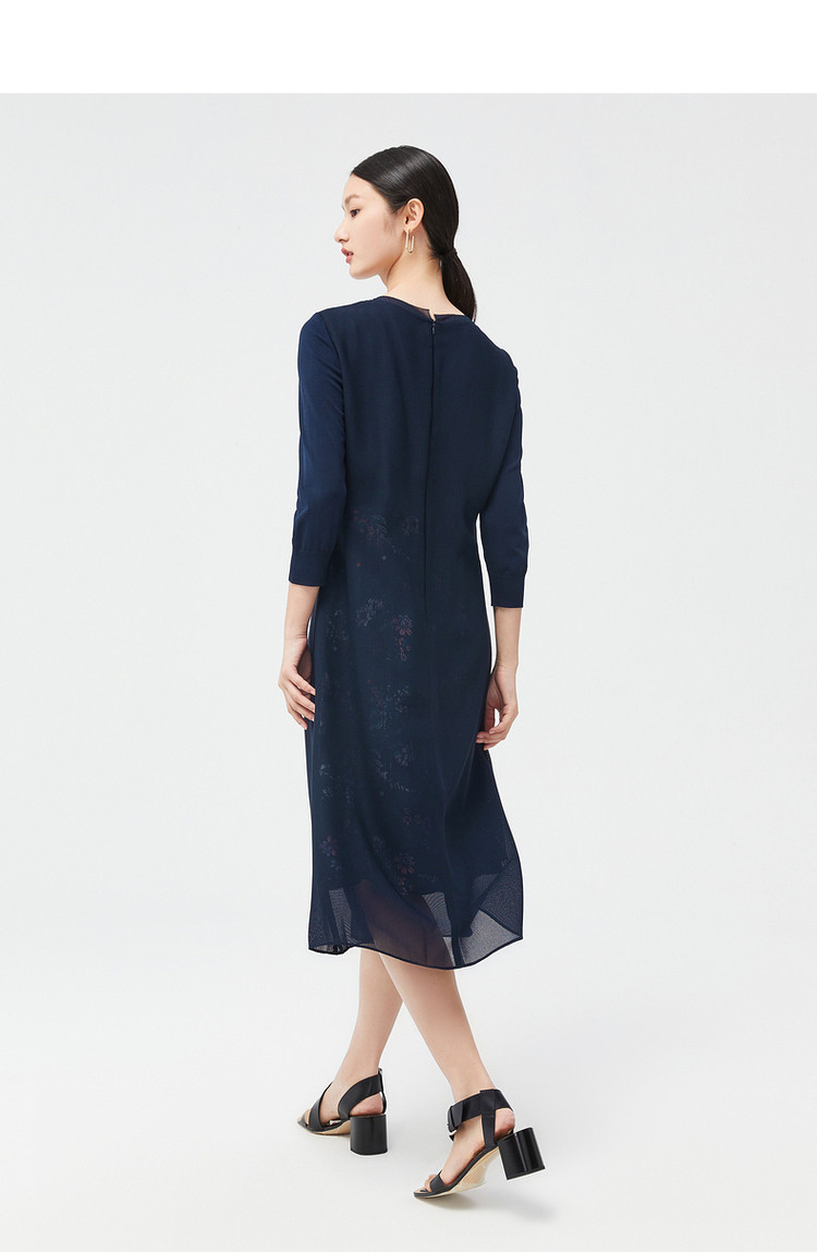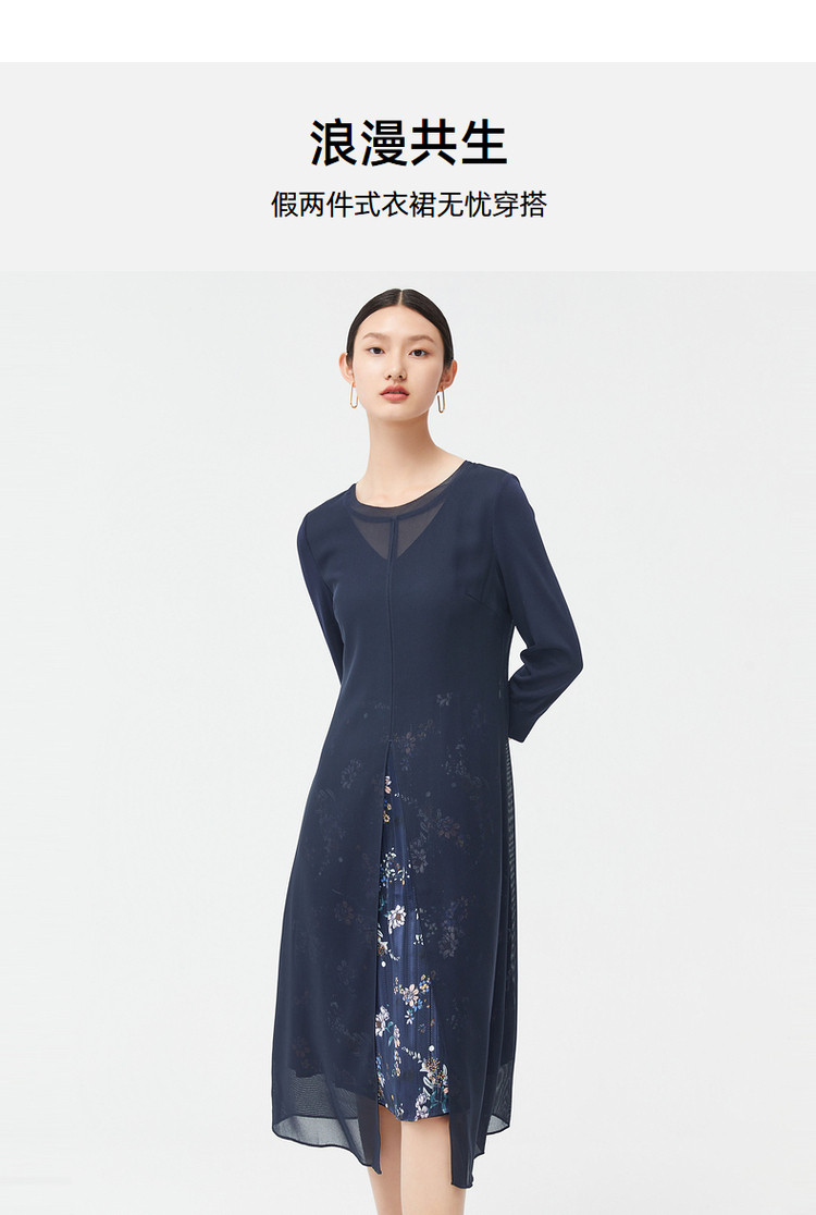 商品名称:JZ玖姿秋季优雅鸢尾花气质开叉拼接连衣裙 542220
