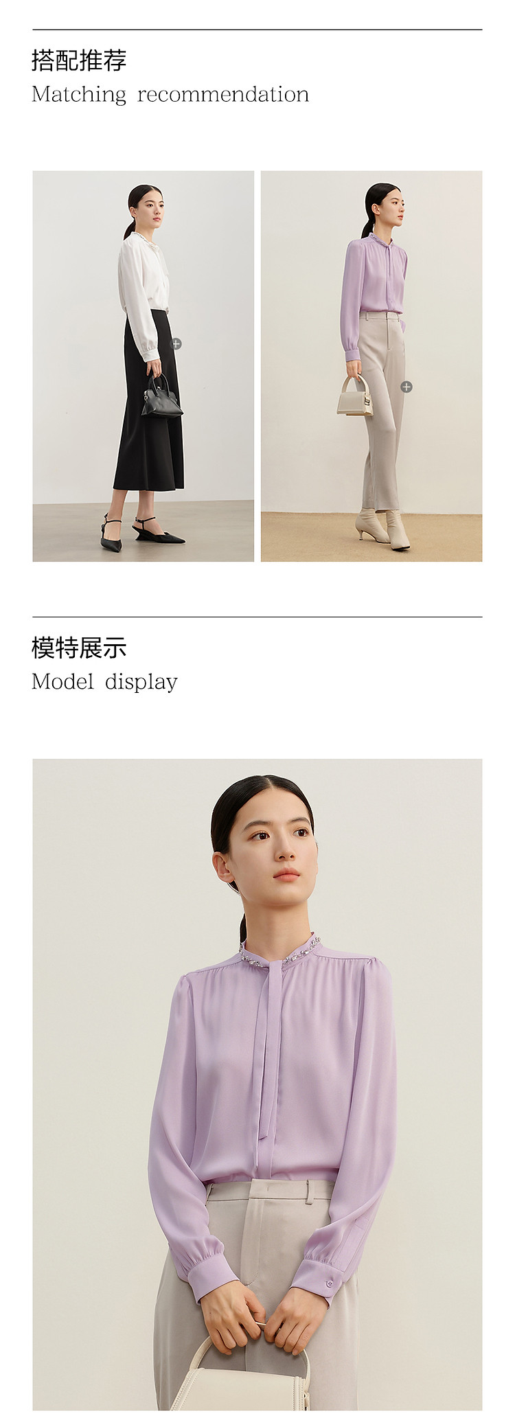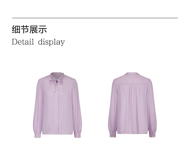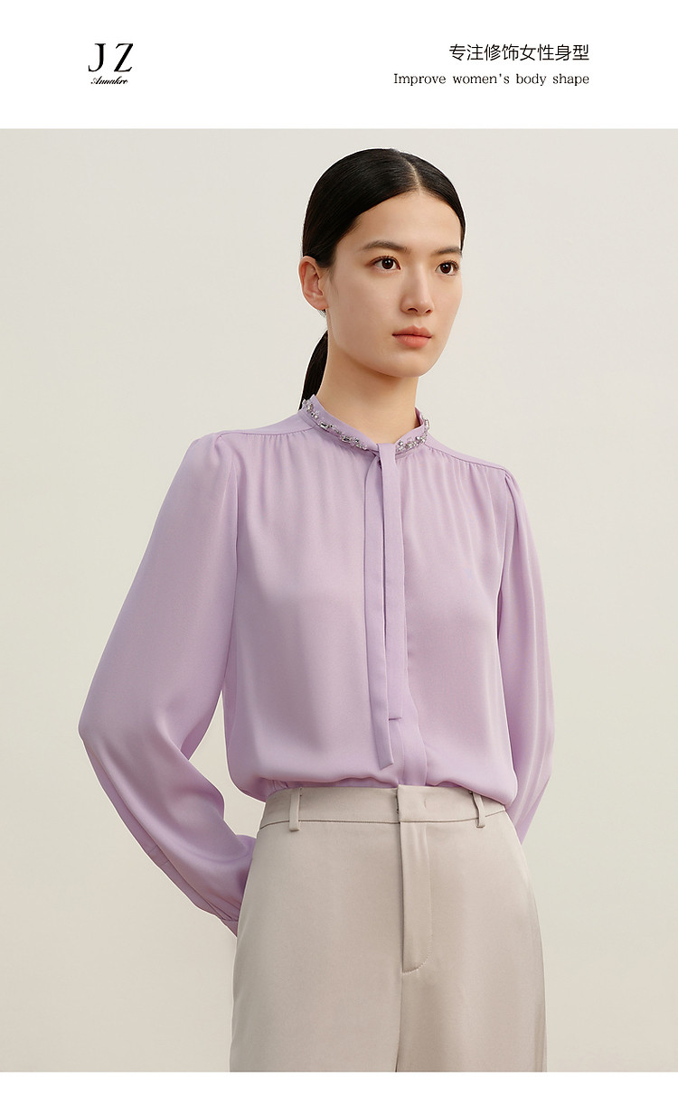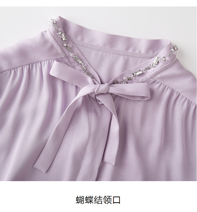 商品名称:玖姿旗下安娜蔻系列法式复古飘带领手工钉珠H型雪纺长袖衬衫秋季 156748