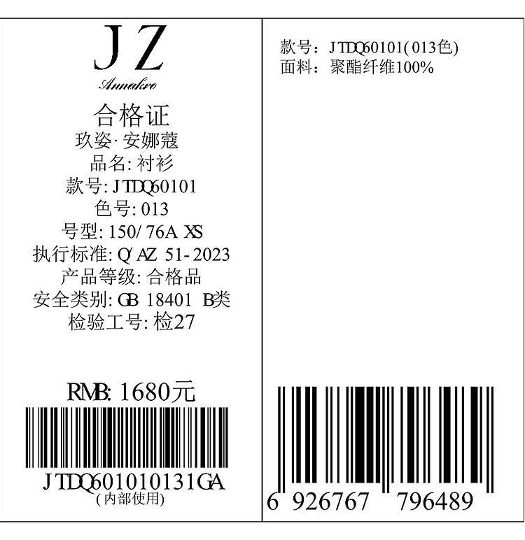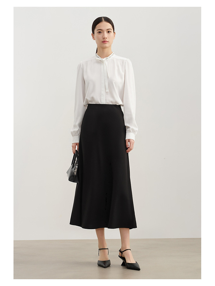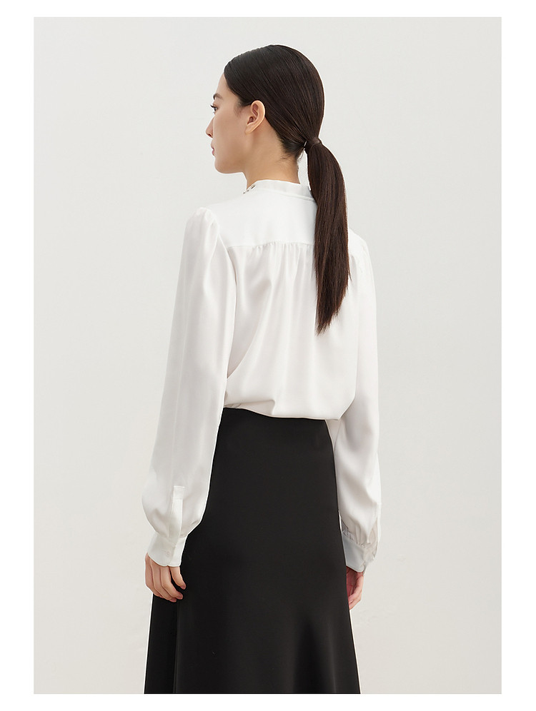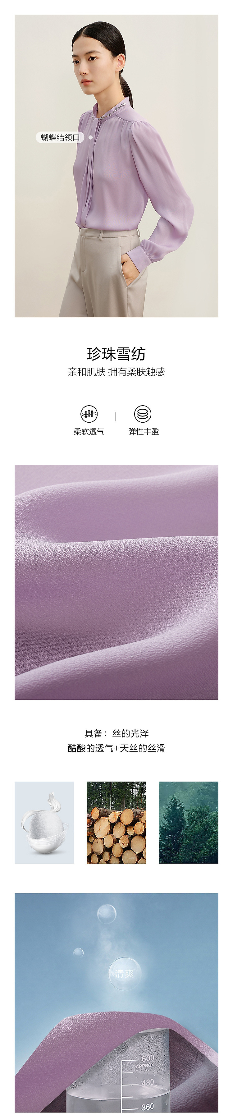 商品名称:玖姿旗下安娜蔻系列法式复古飘带领手工钉珠H型雪纺长袖衬衫秋季 156748