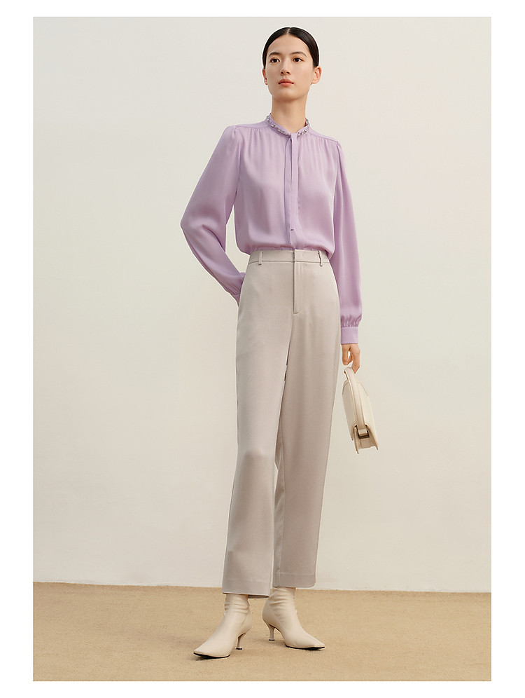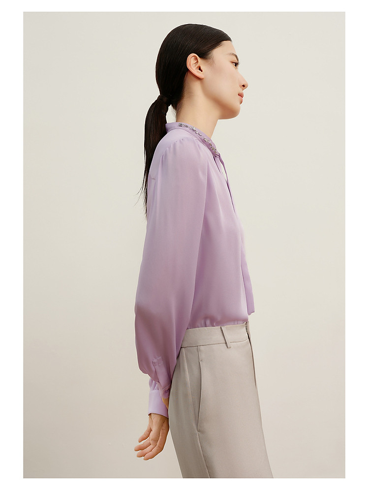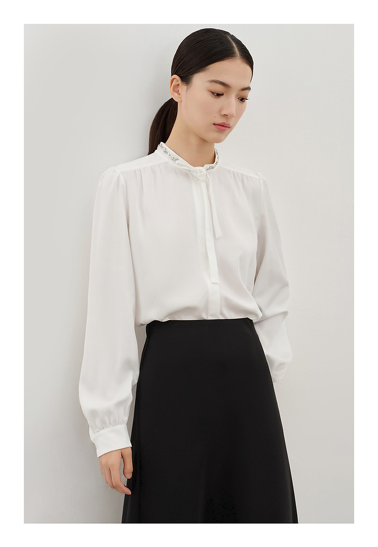 玖姿旗下安娜蔻系列法式复古飘带领手工钉珠H型雪纺长袖衬衫秋季 156748