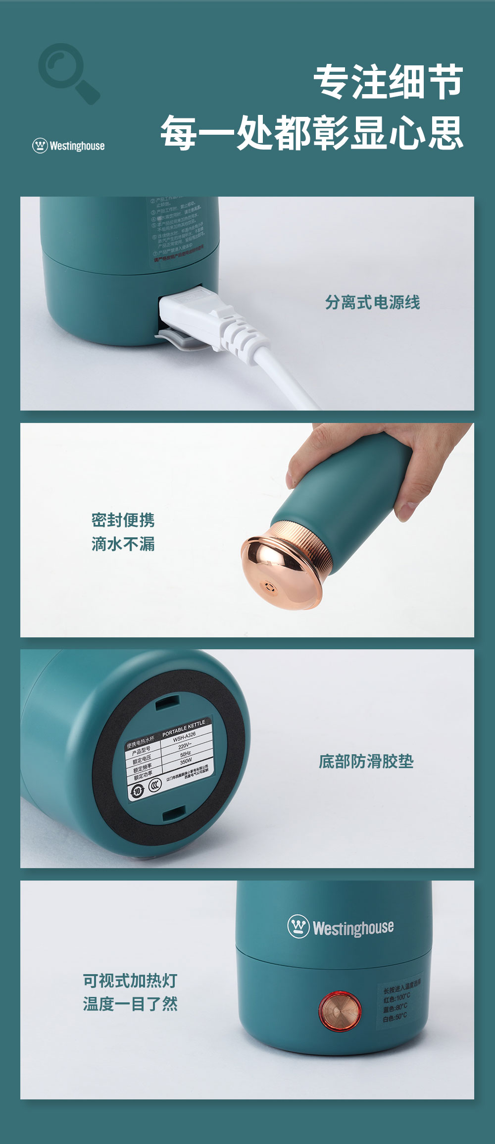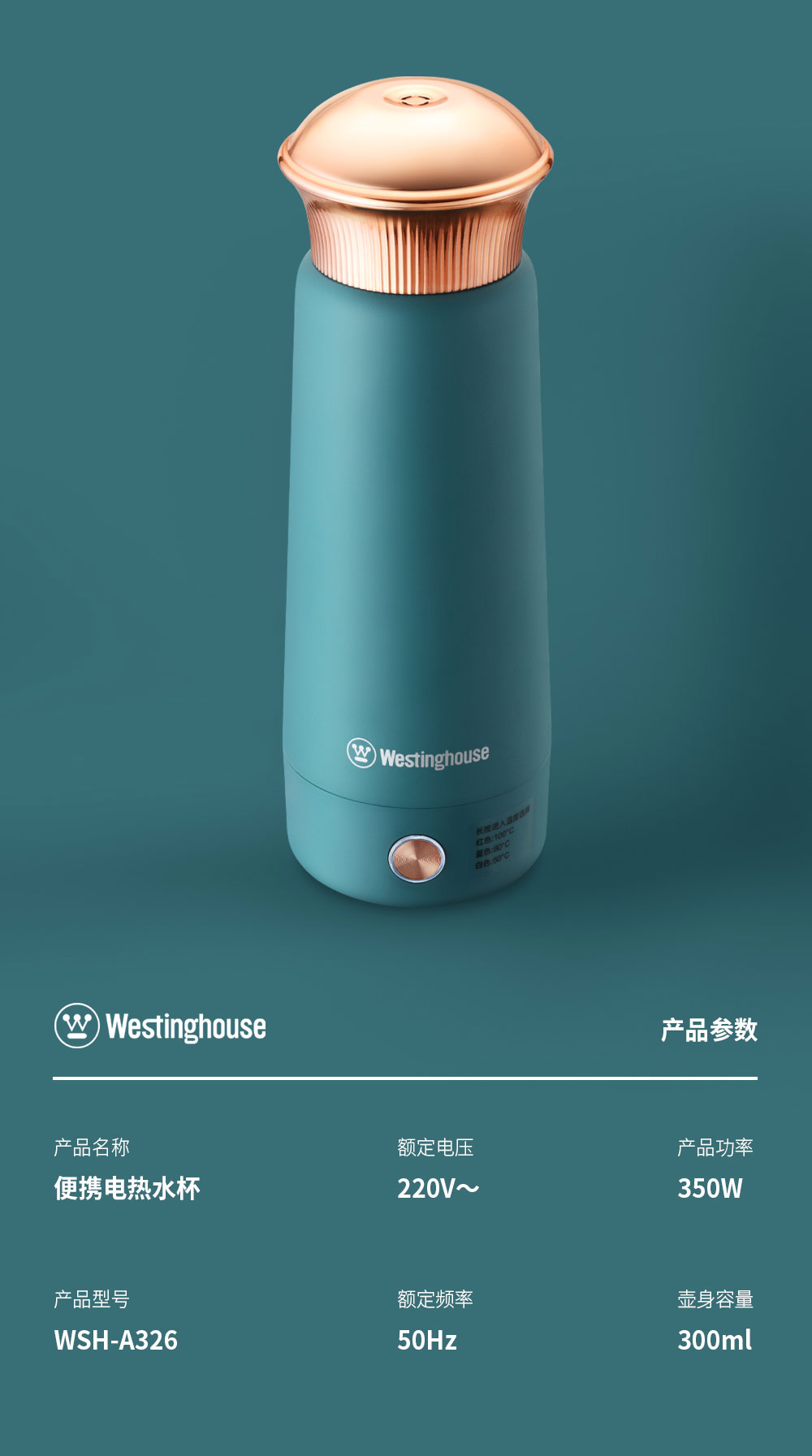 商品名称:西屋Westinghouse便捷电热水杯WSH-A326