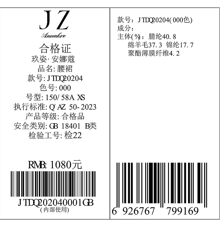 商品名称:玖姿旗下安娜蔻系列洋气小香风蝴蝶纱短款半身裙女秋季 589900