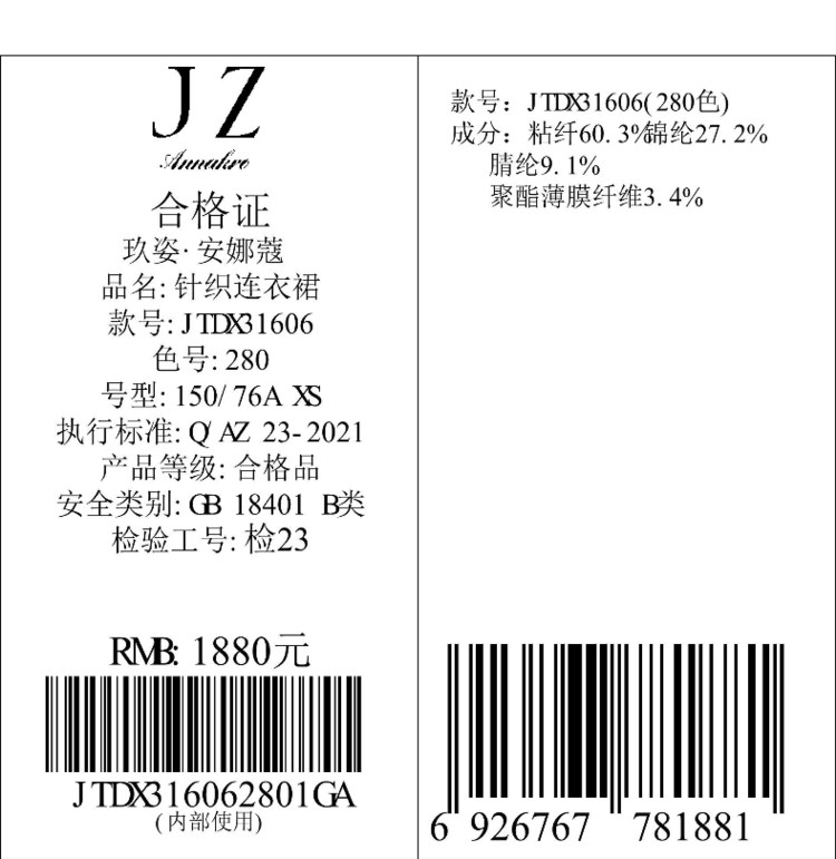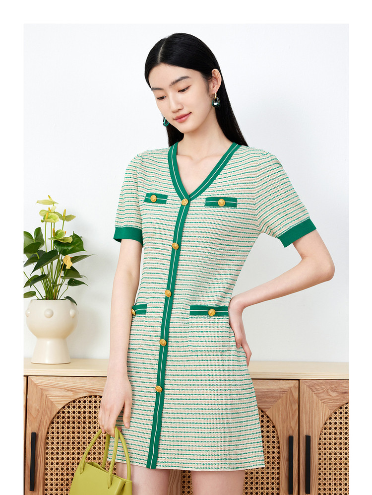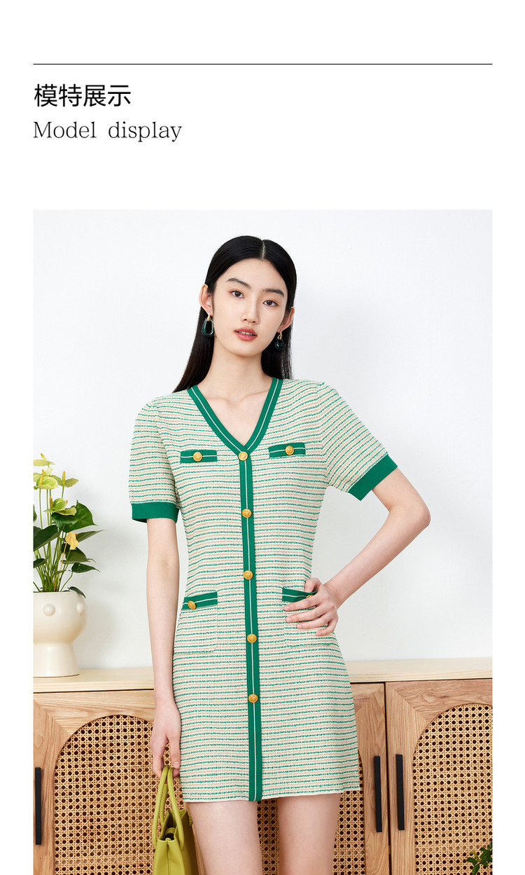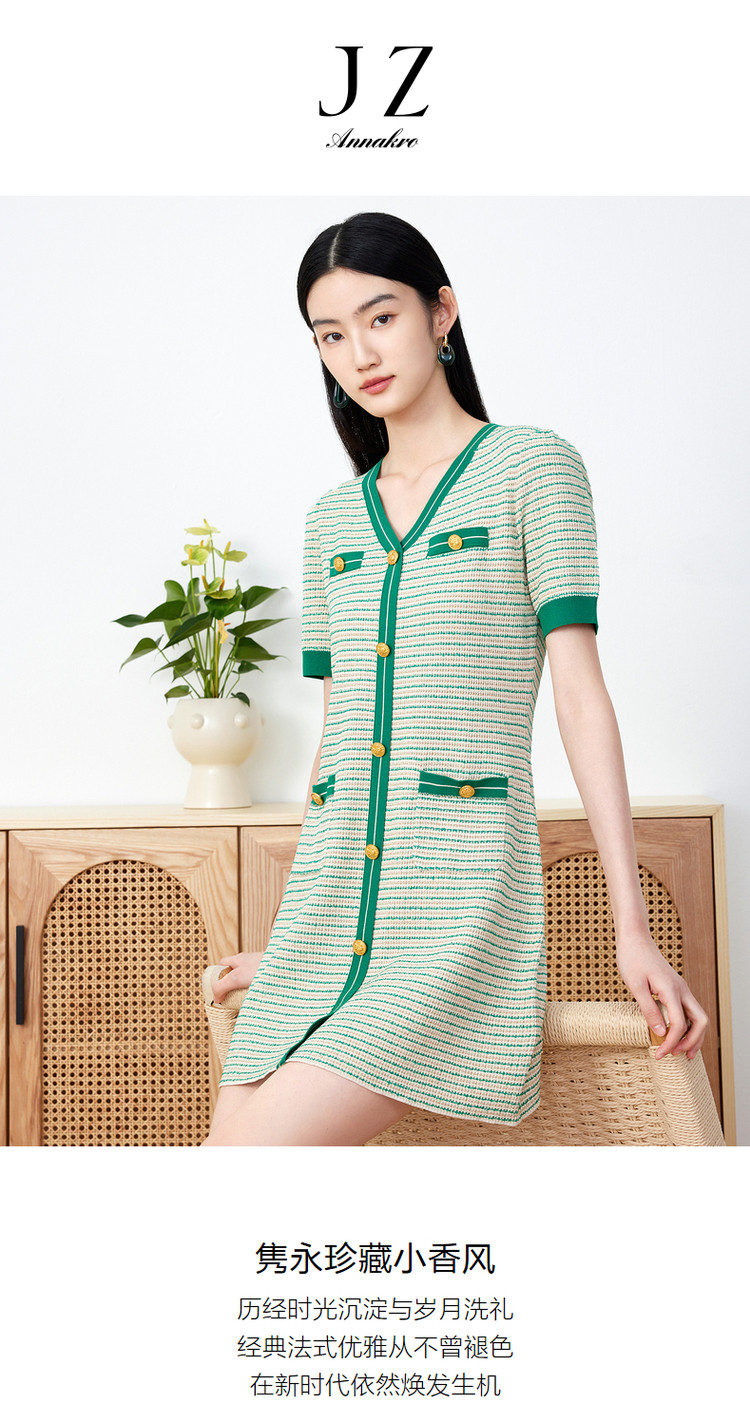 商品名称:玖姿旗下安娜蔻系列小香风针织连衣裙女装夏季法式轻熟风连衣裙 987788