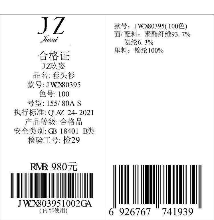 | 尺码 | 衣长(cm) | 肩宽(cm) | 腰围(cm) | 袖长(cm) | 胸围(cm) | 号型 |