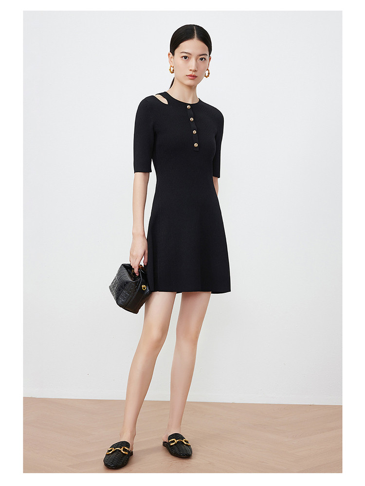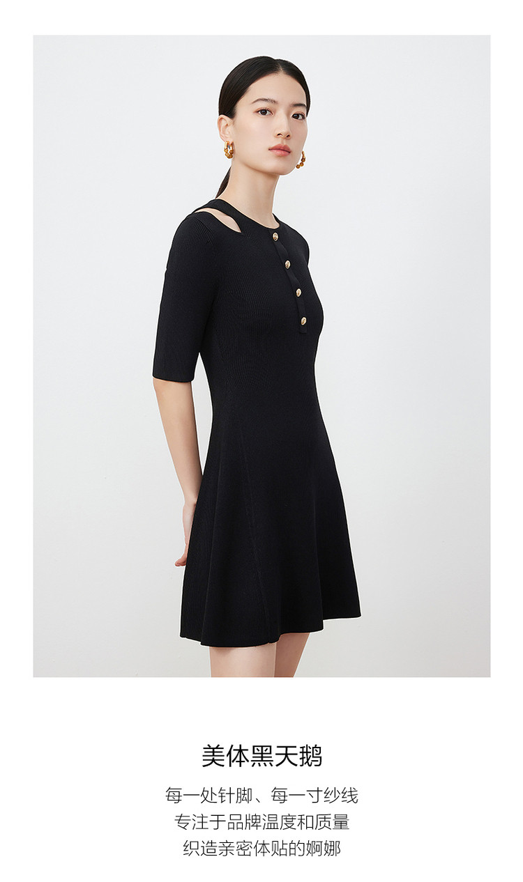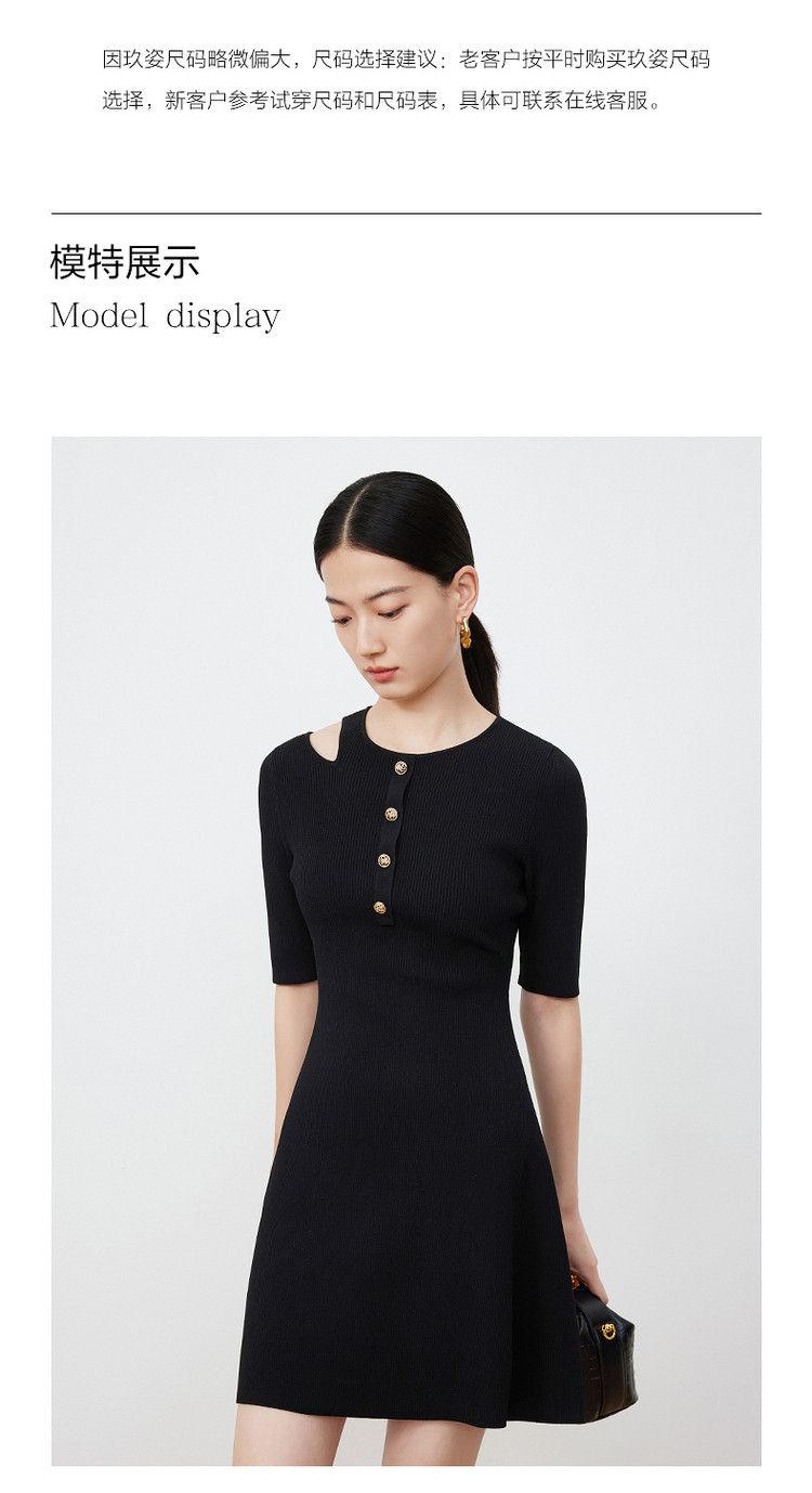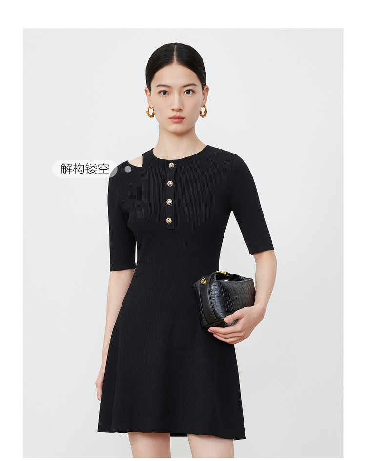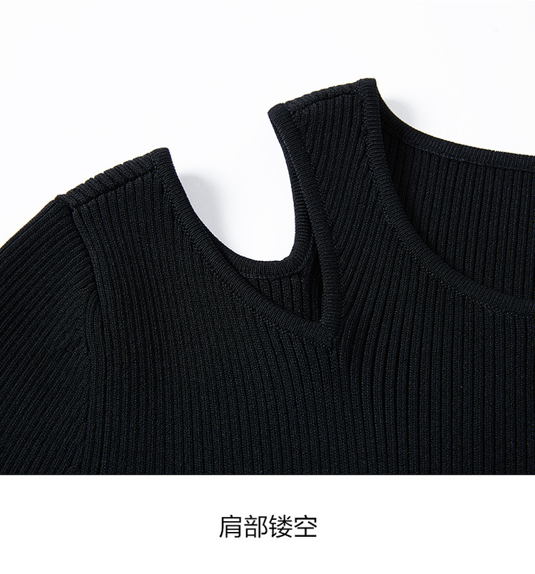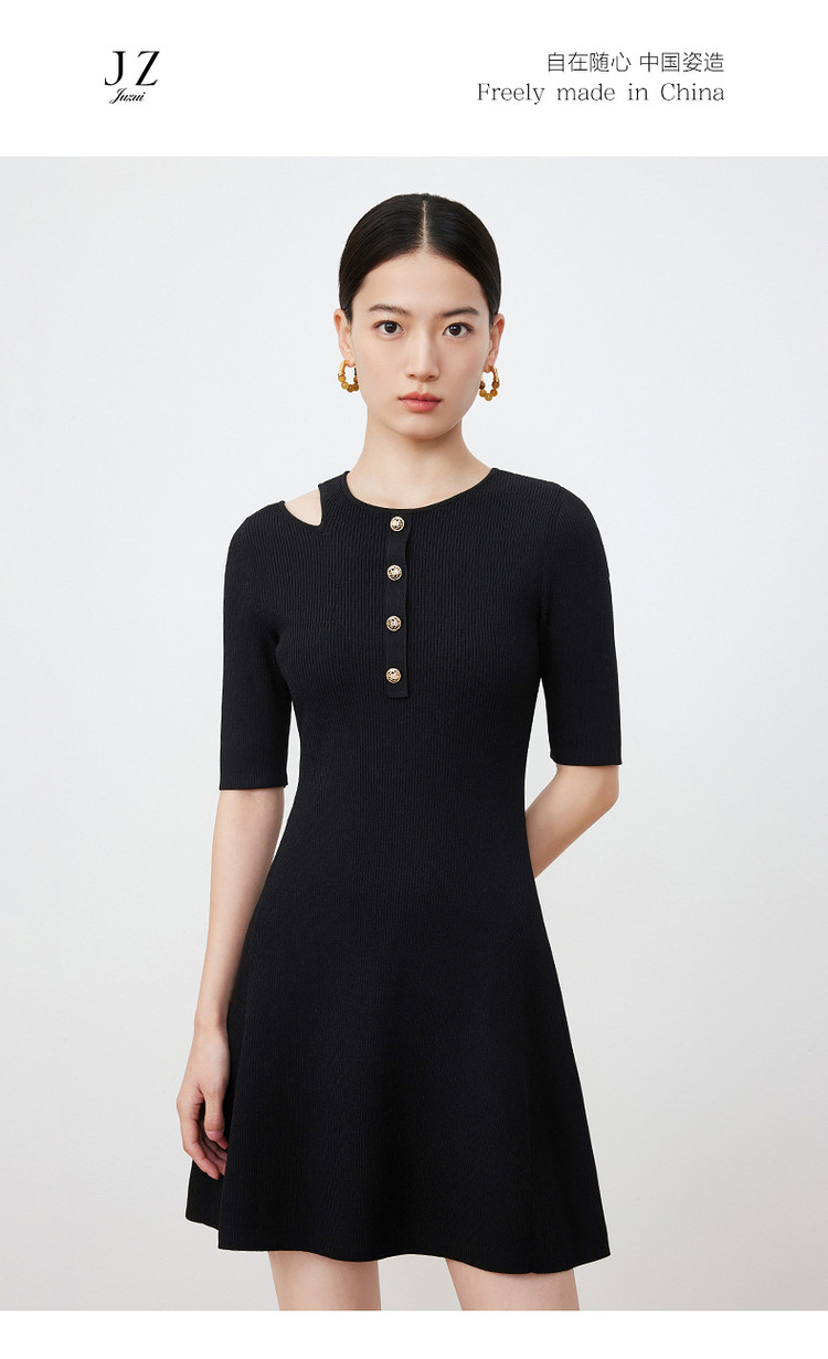 商品名称:JZ玖姿露肩针织小黑裙女装春季毛衫连衣裙 849292