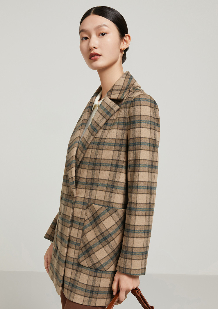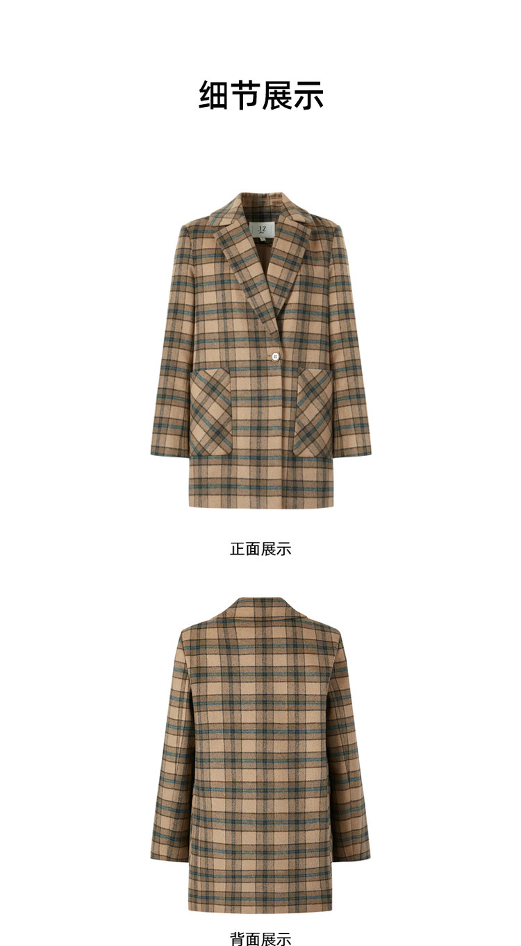 JZ玖姿商场同款格纹羊毛大衣冬季毛呢外套JWBD72215 239500