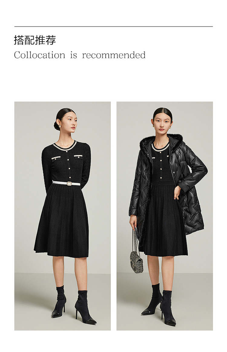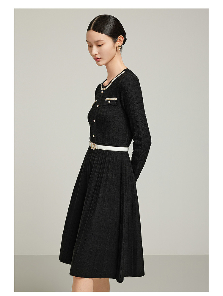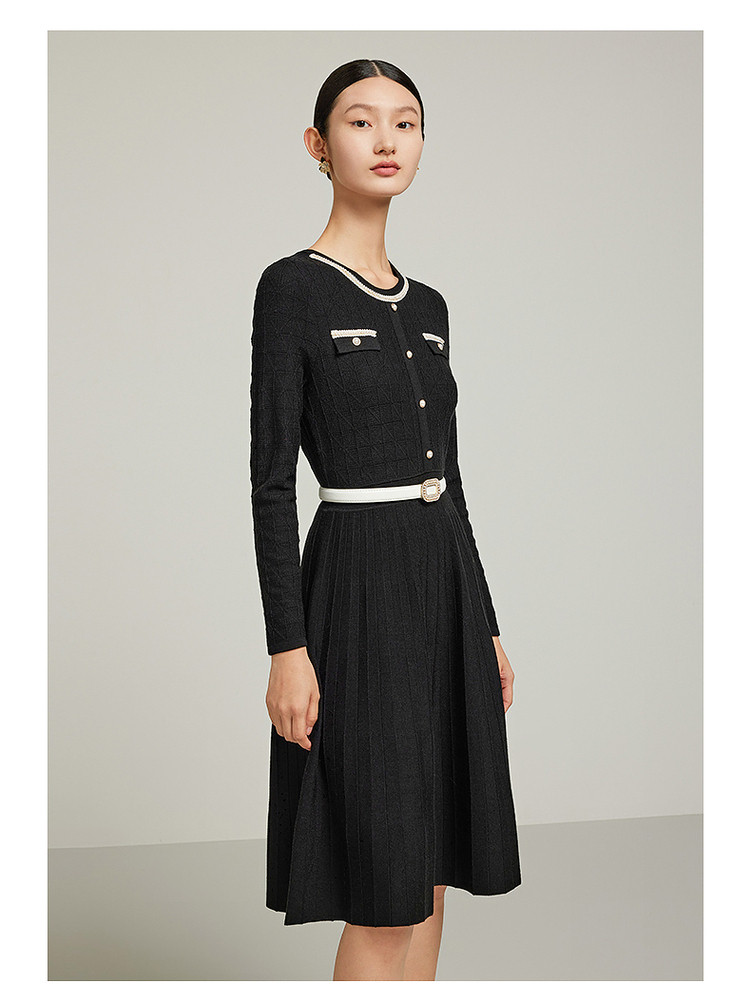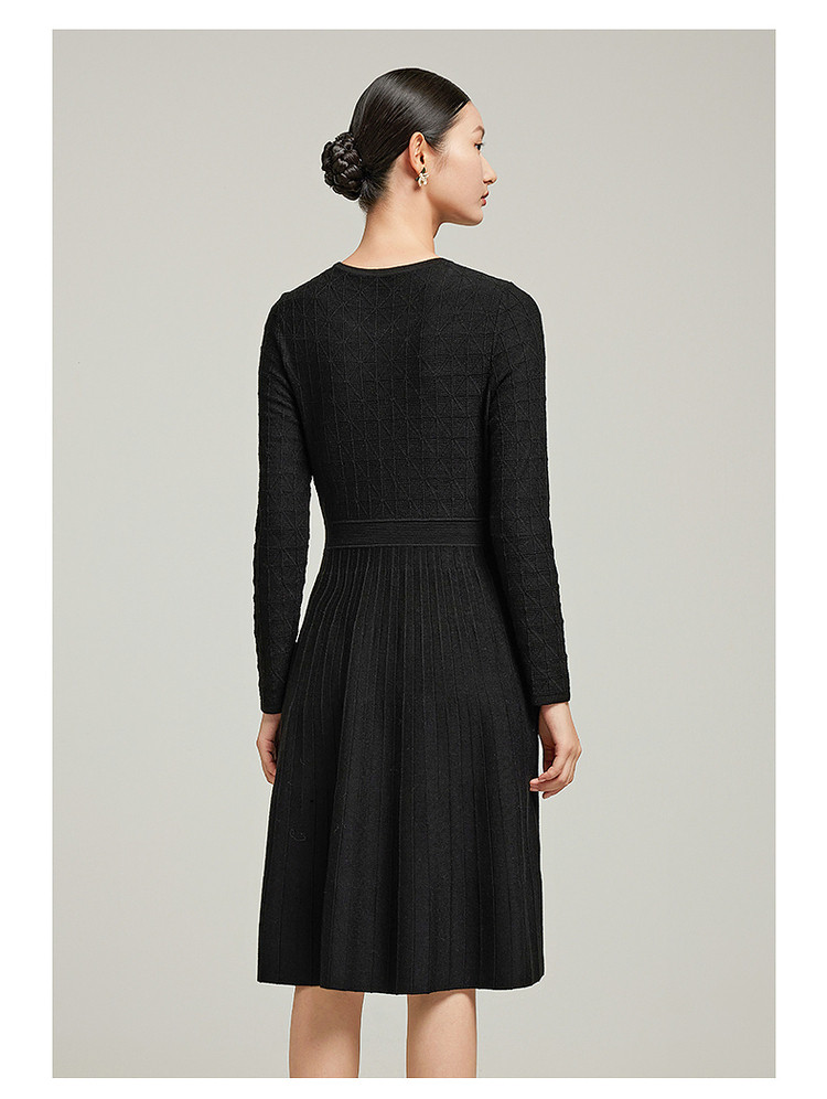 商品名称:小香风复古小黑裙女装冬季条纹肌理羊毛连衣裙 477324