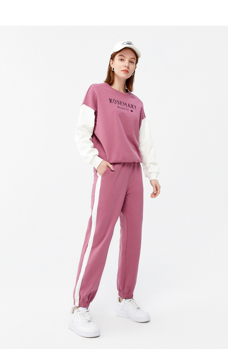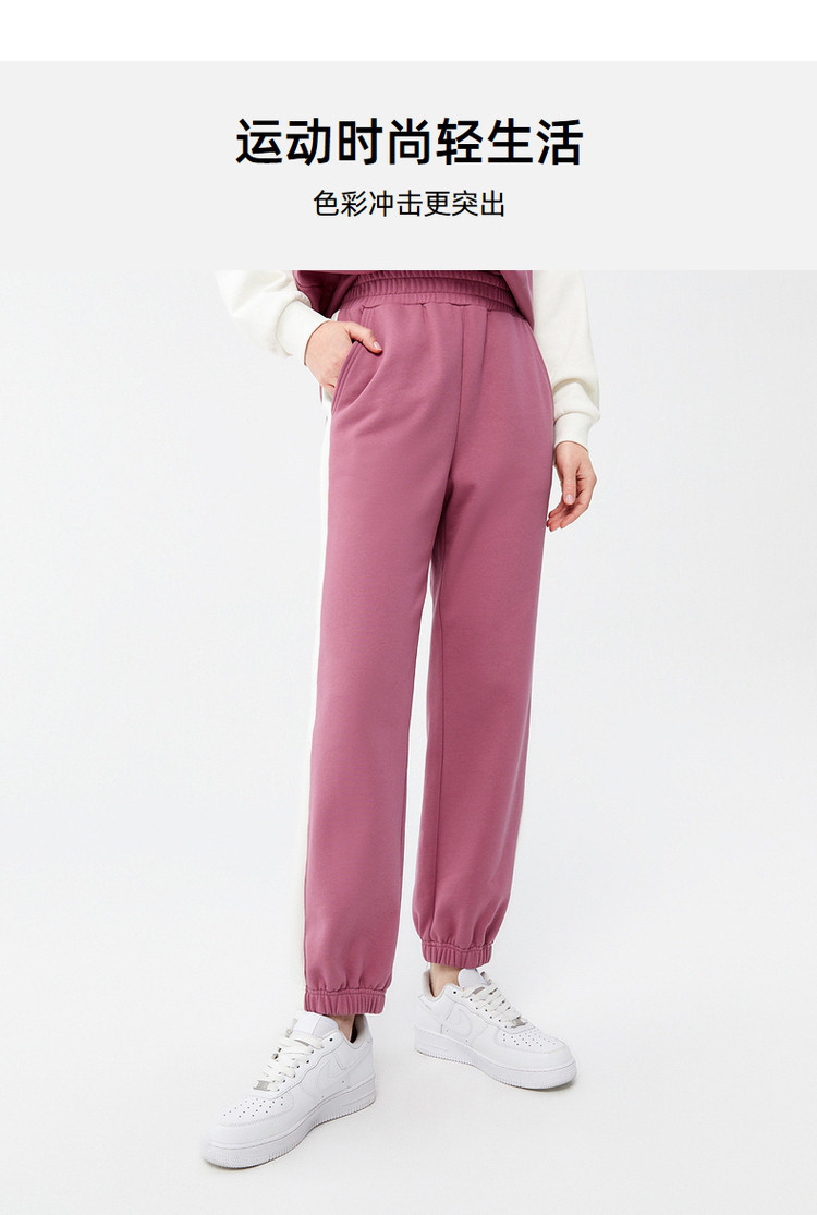 商品名称:玖姿春季宽松运动束脚撞色拼接女式休闲裤 572492