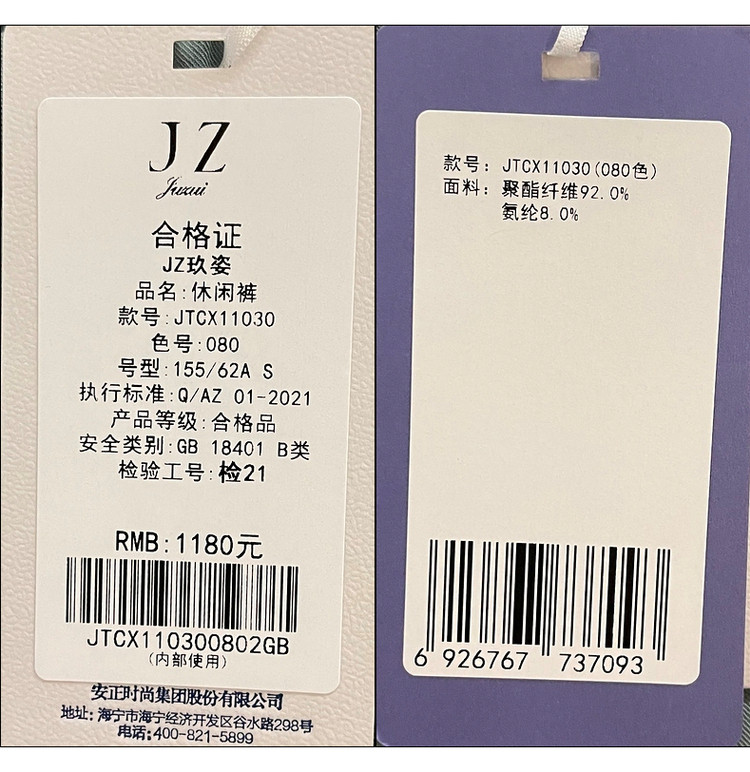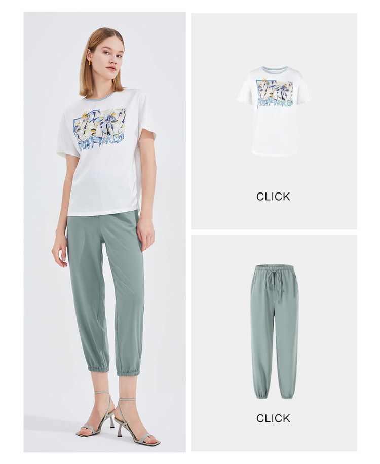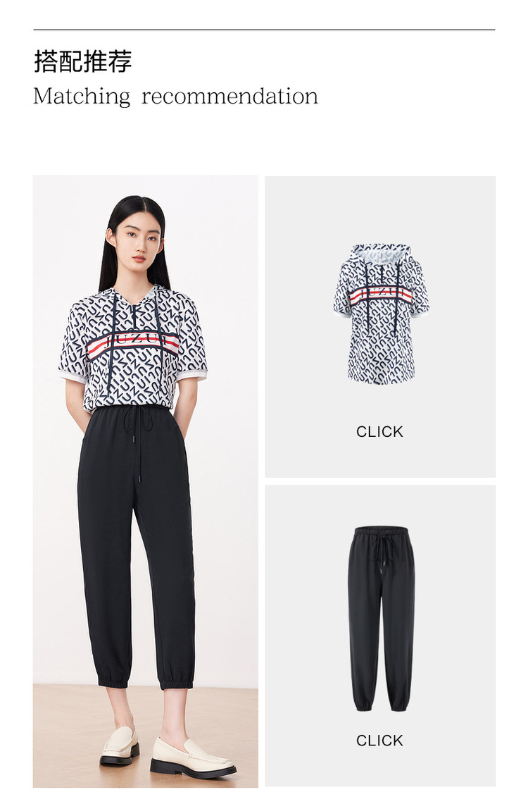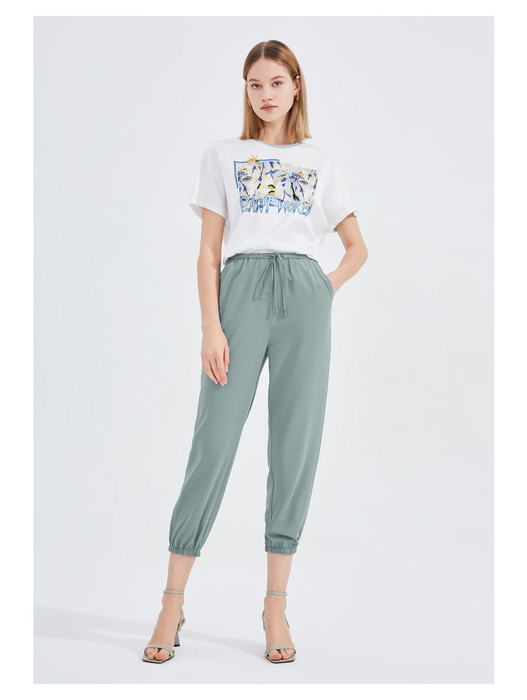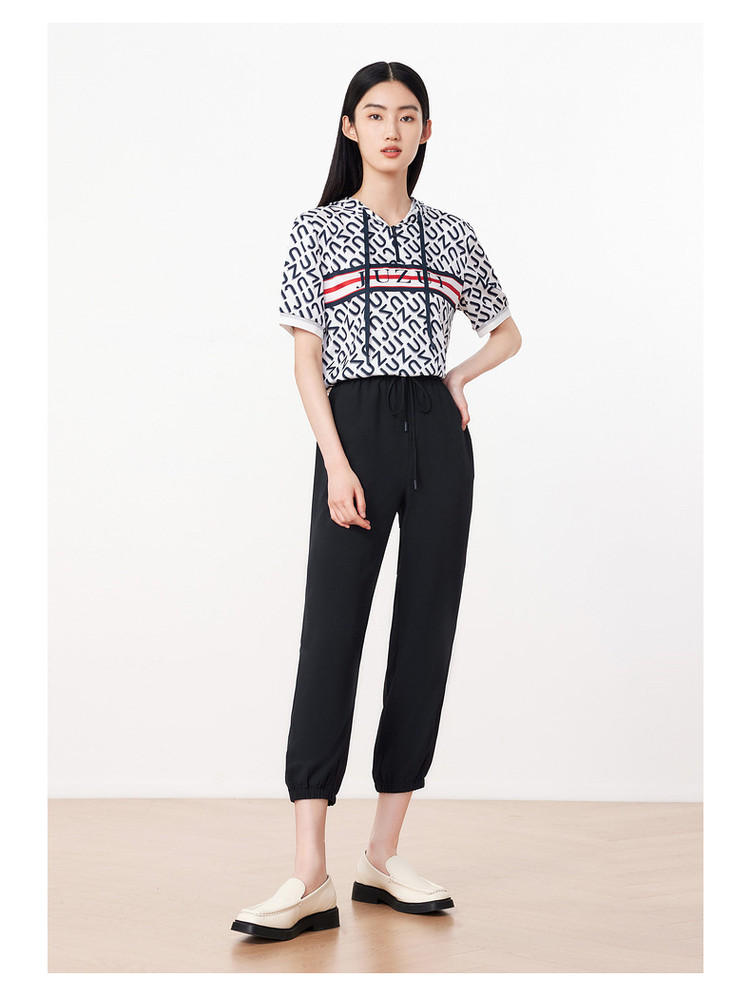 JZ玖姿夏季休闲运动分系带束脚九分女式休闲裤 428556