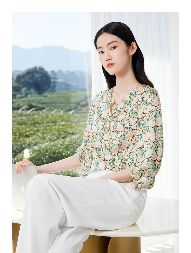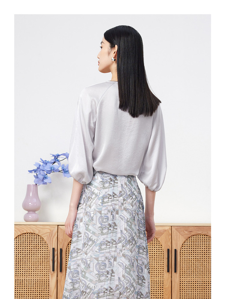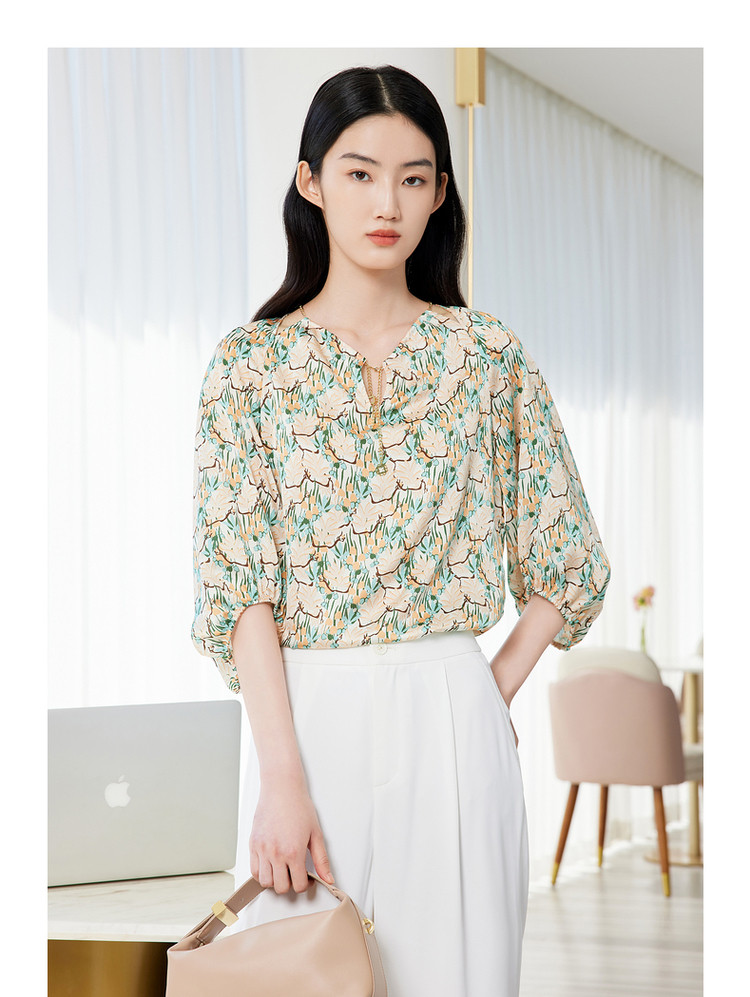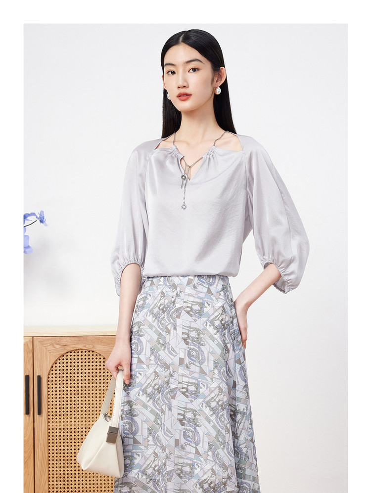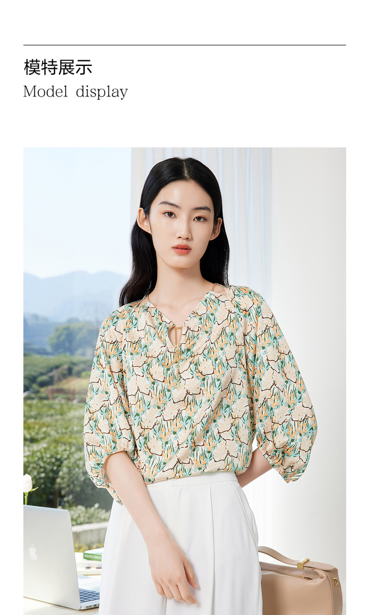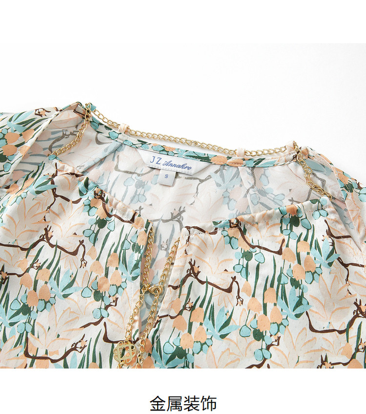 商品名称:玖姿旗下安娜蔻系列宽松T恤女装夏季轻松感大码上衣雪纺衫 037836