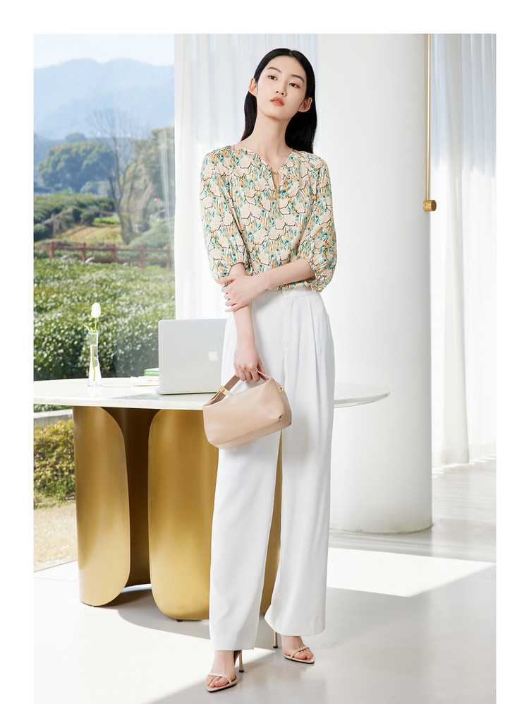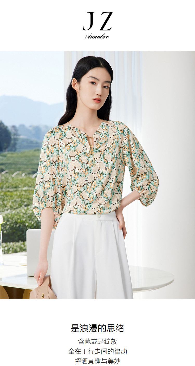 玖姿旗下安娜蔻系列宽松T恤女装夏季轻松感大码上衣雪纺衫 037836
