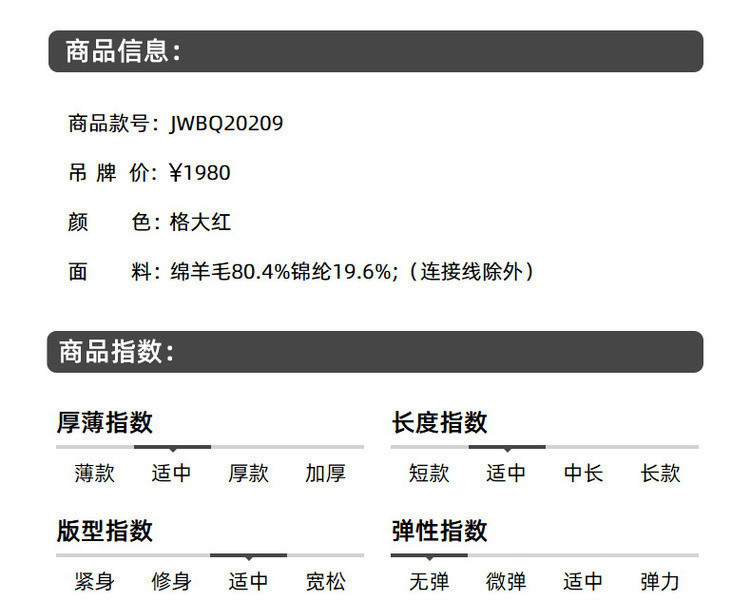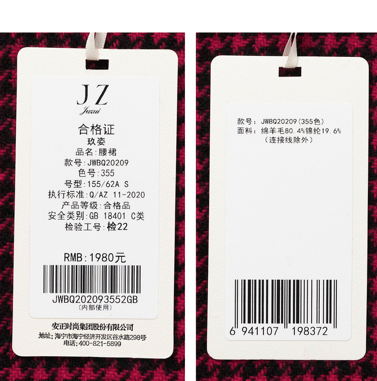 商品名称:JZ玖姿商场同款千鸟格A字裙女装秋季格纹半身裙 194252