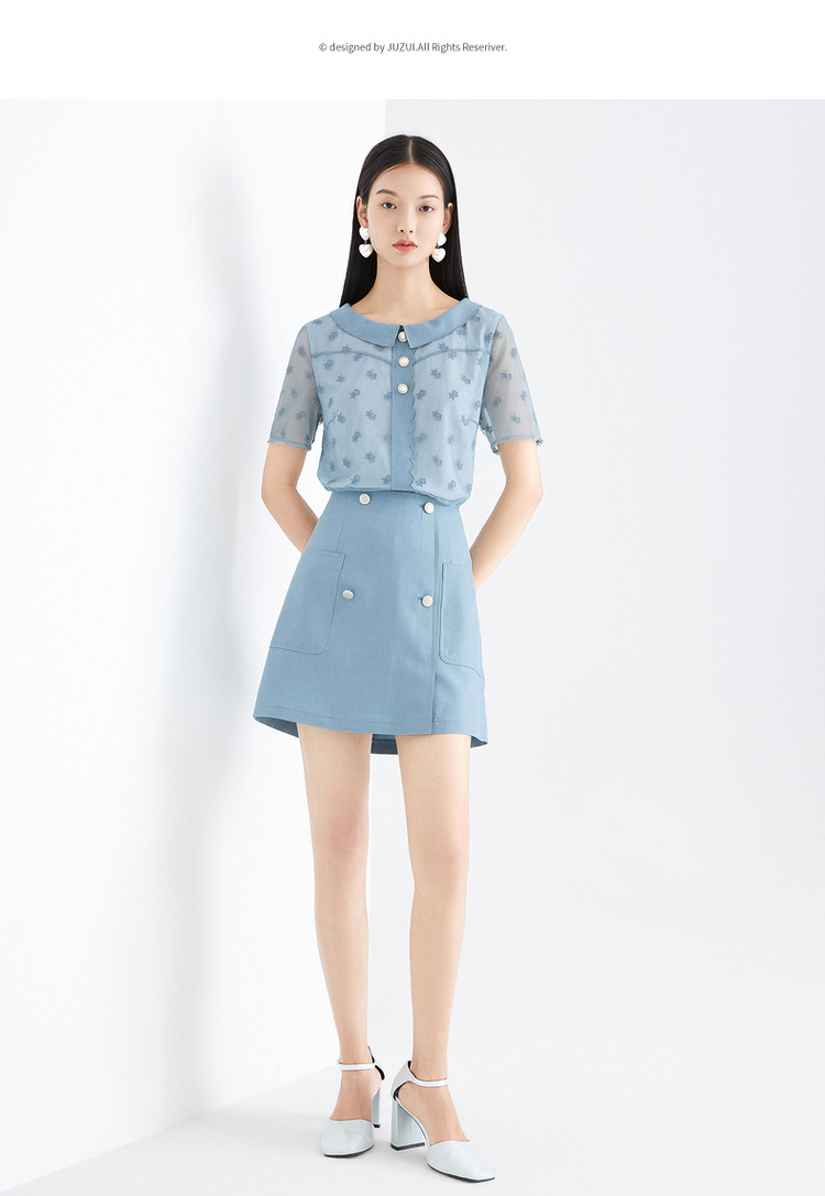 玖姿旗下安娜蔻系列清A字裙女短裙 717004