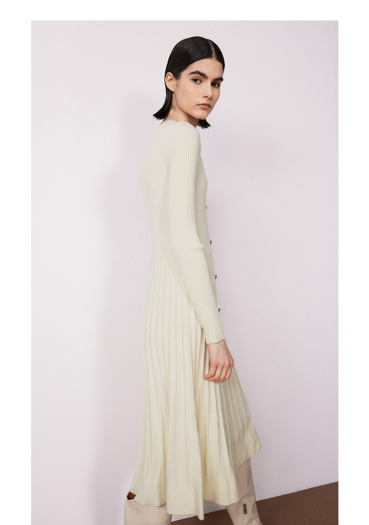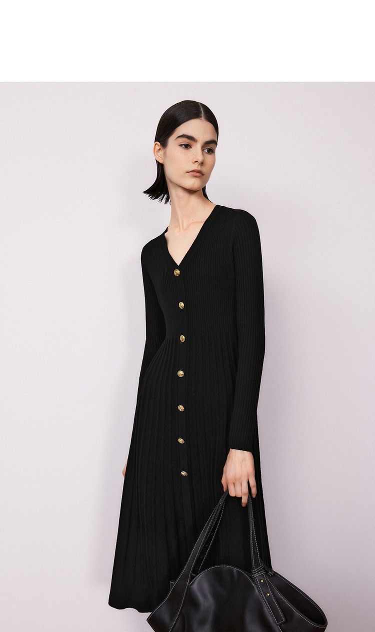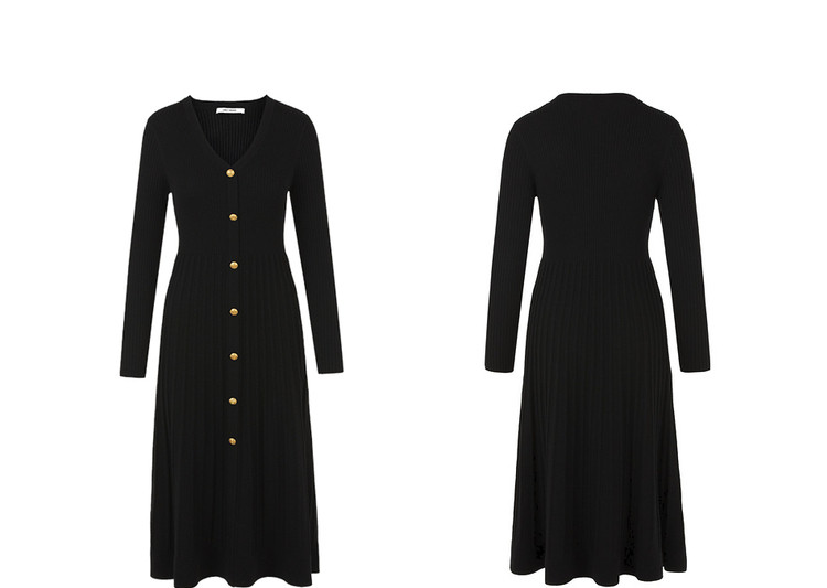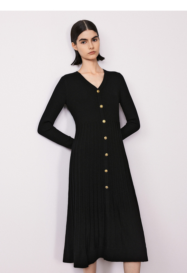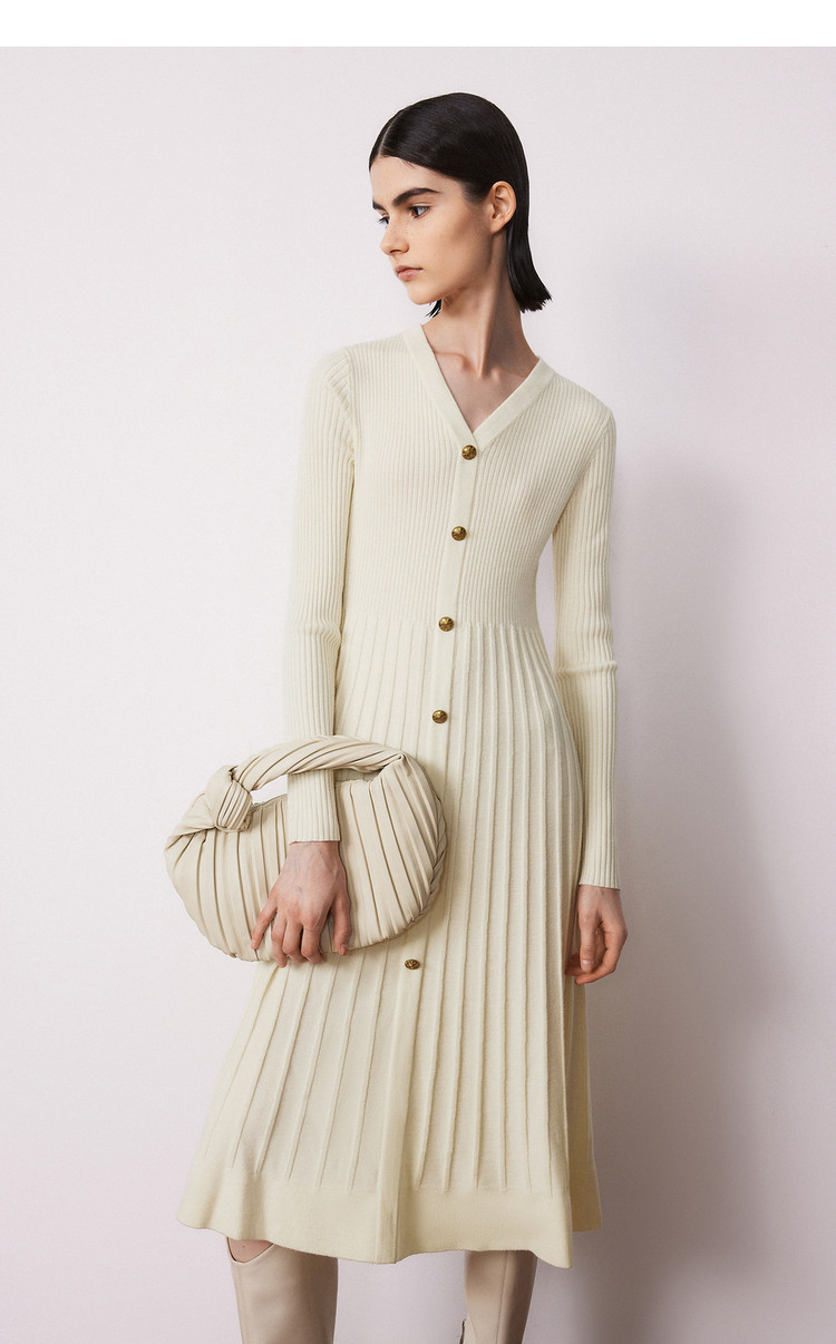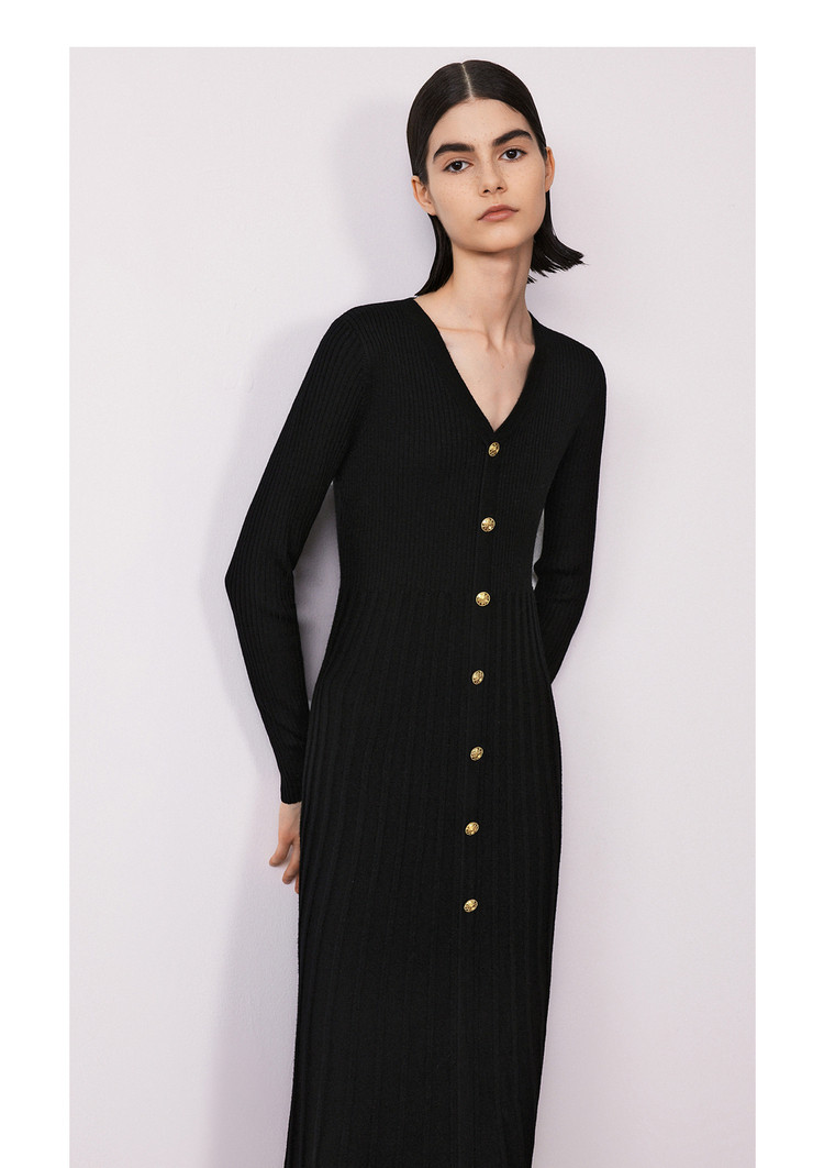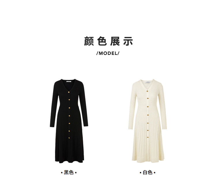 商品名称:纯羊毛v领收腰显瘦长袖针织裙气质长裙冬季连衣裙 231193