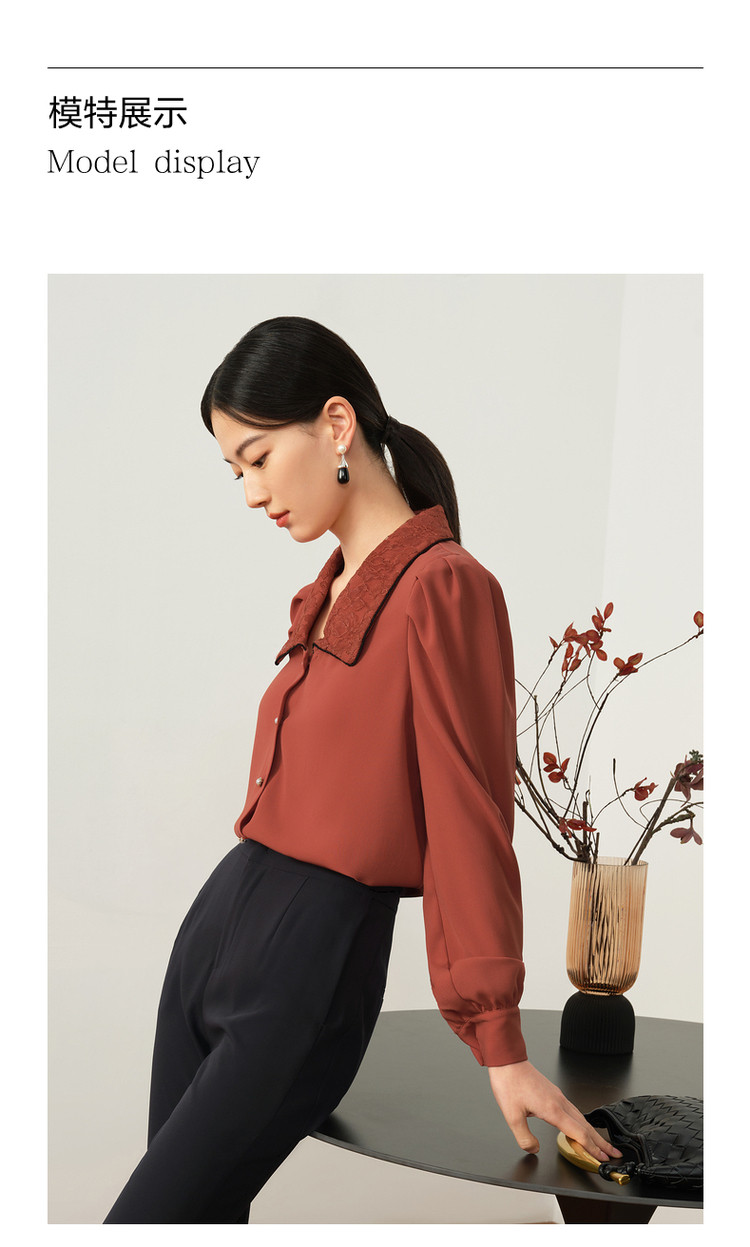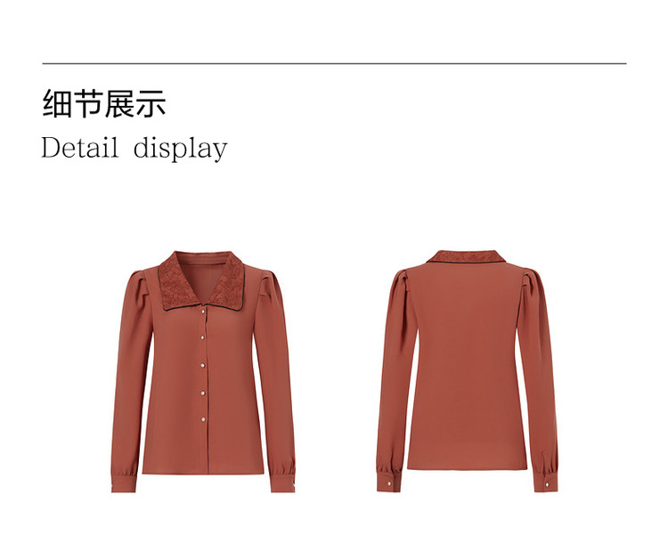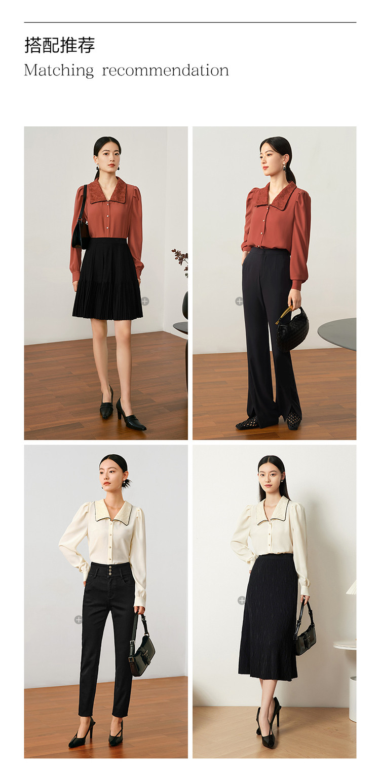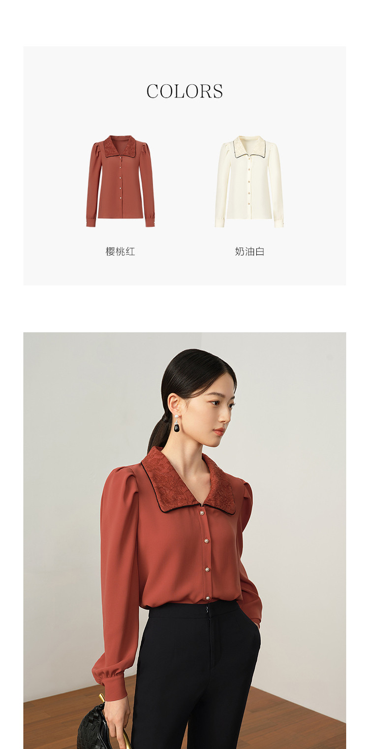 商品名称:玖姿旗下安娜蔻系列翻领优雅法式复古直筒长袖衬衫女秋 979980