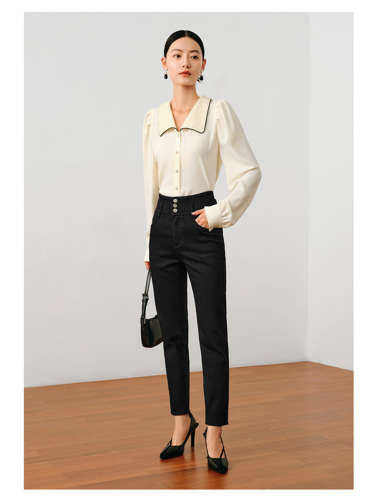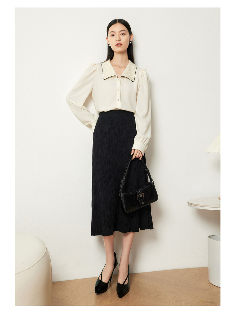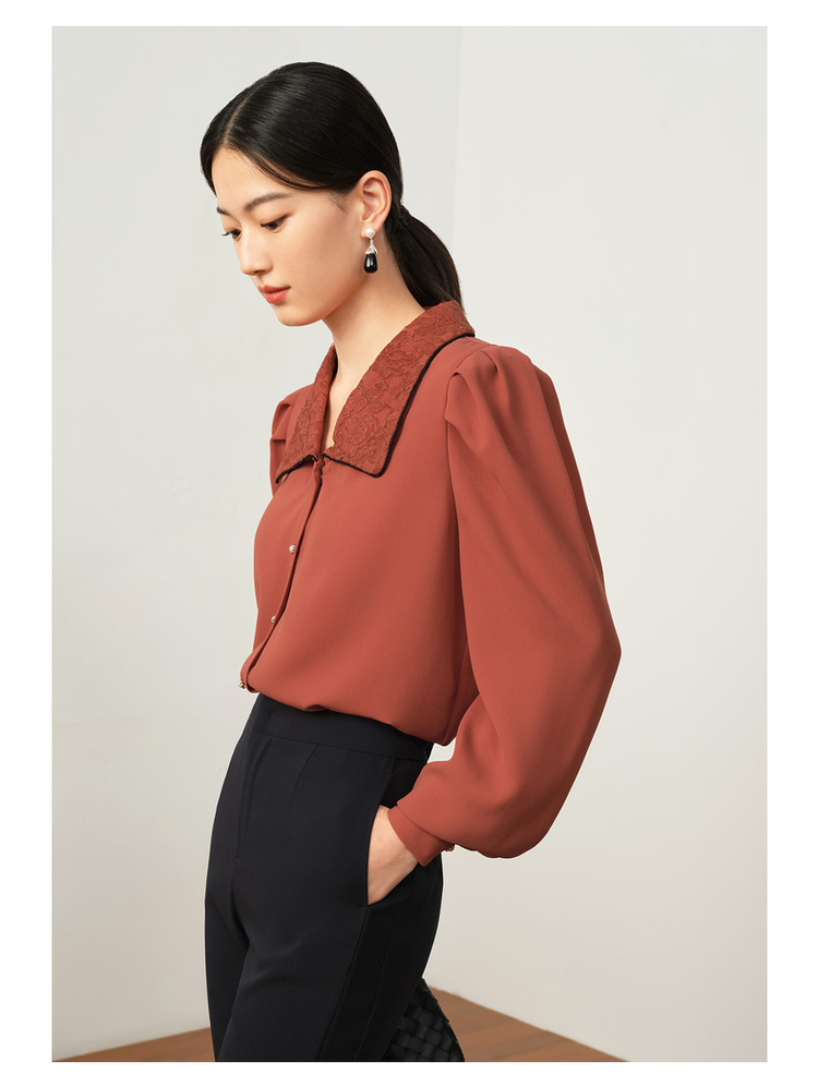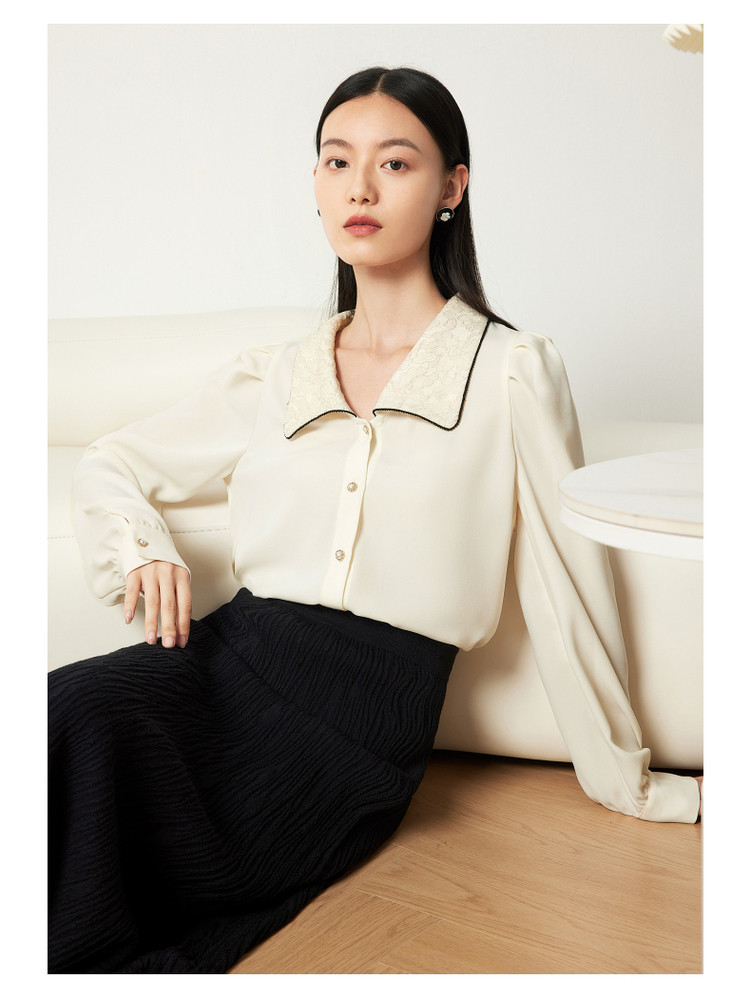 商品名称:玖姿旗下安娜蔻系列翻领优雅法式复古直筒长袖衬衫女秋 979980