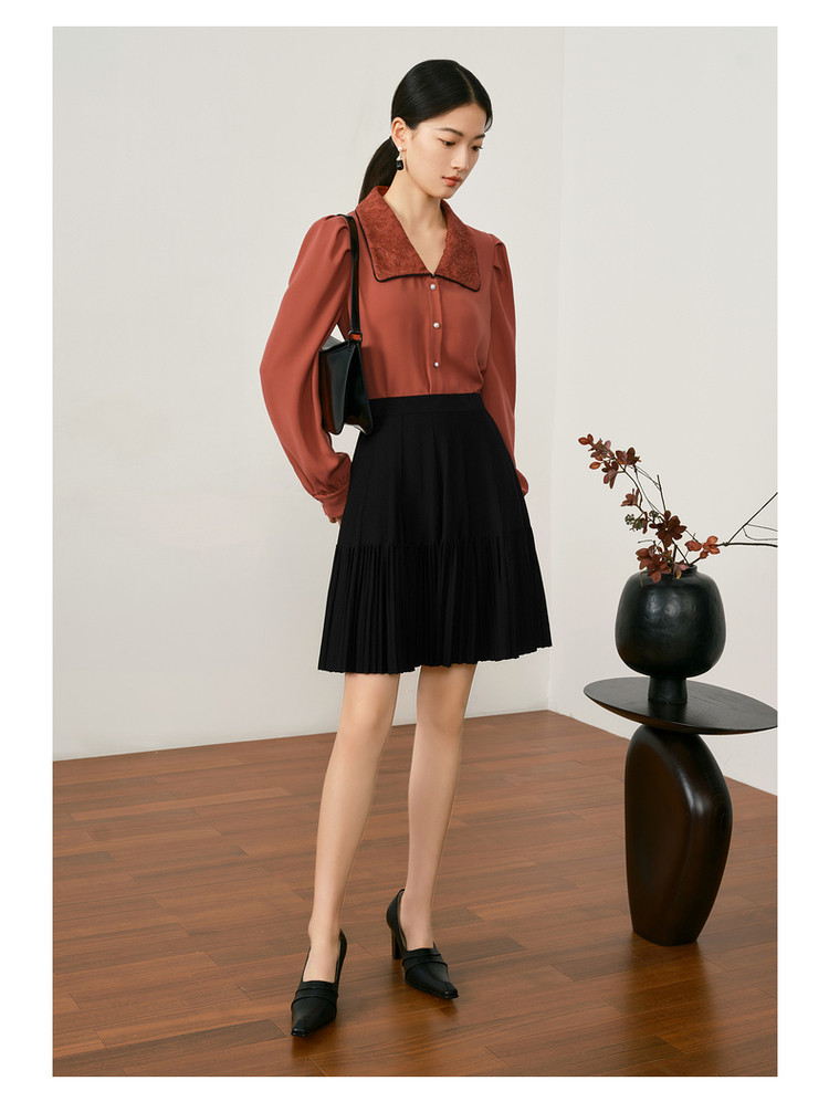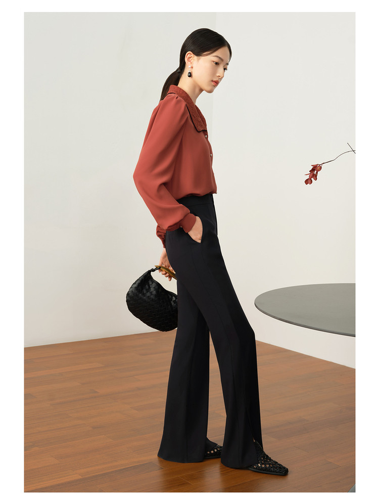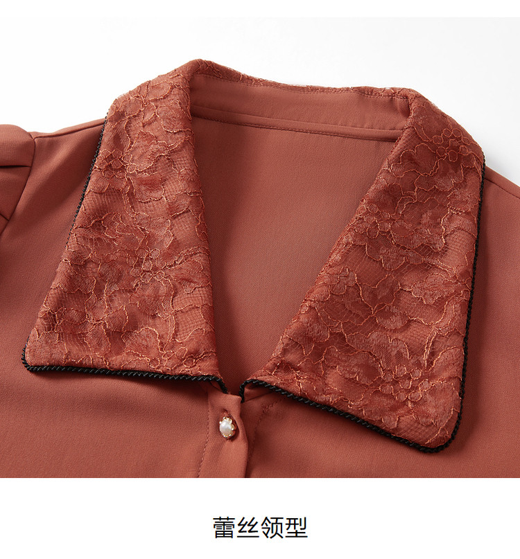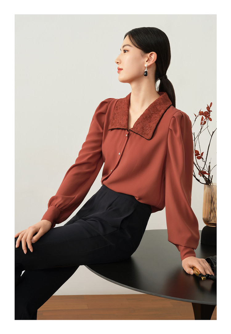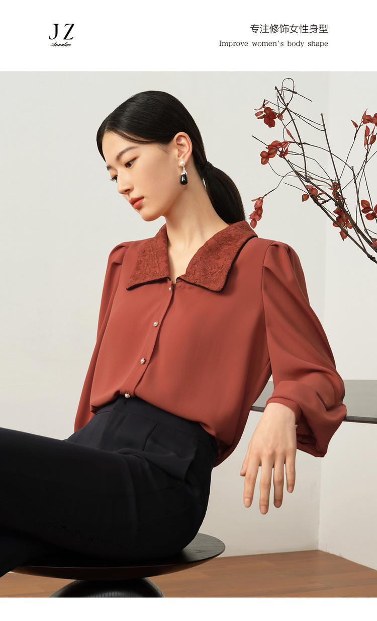 玖姿旗下安娜蔻系列翻领优雅法式复古直筒长袖衬衫女秋 979980