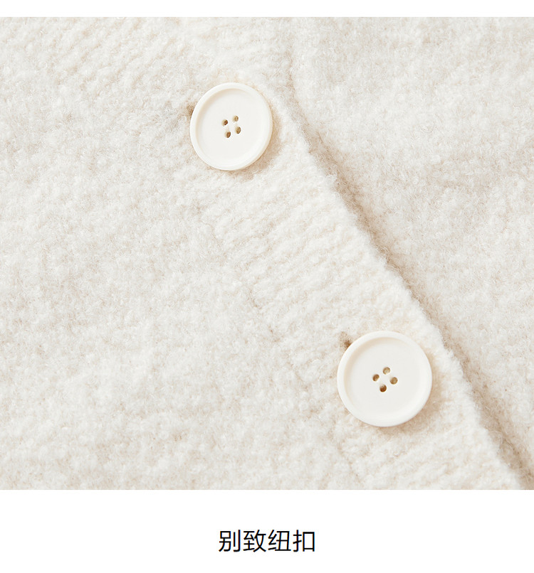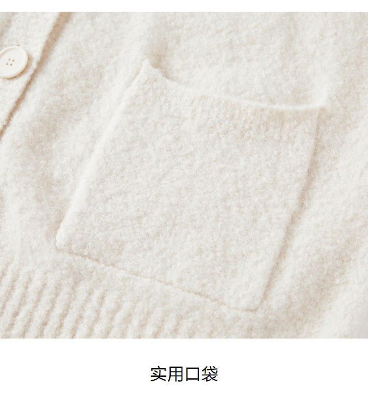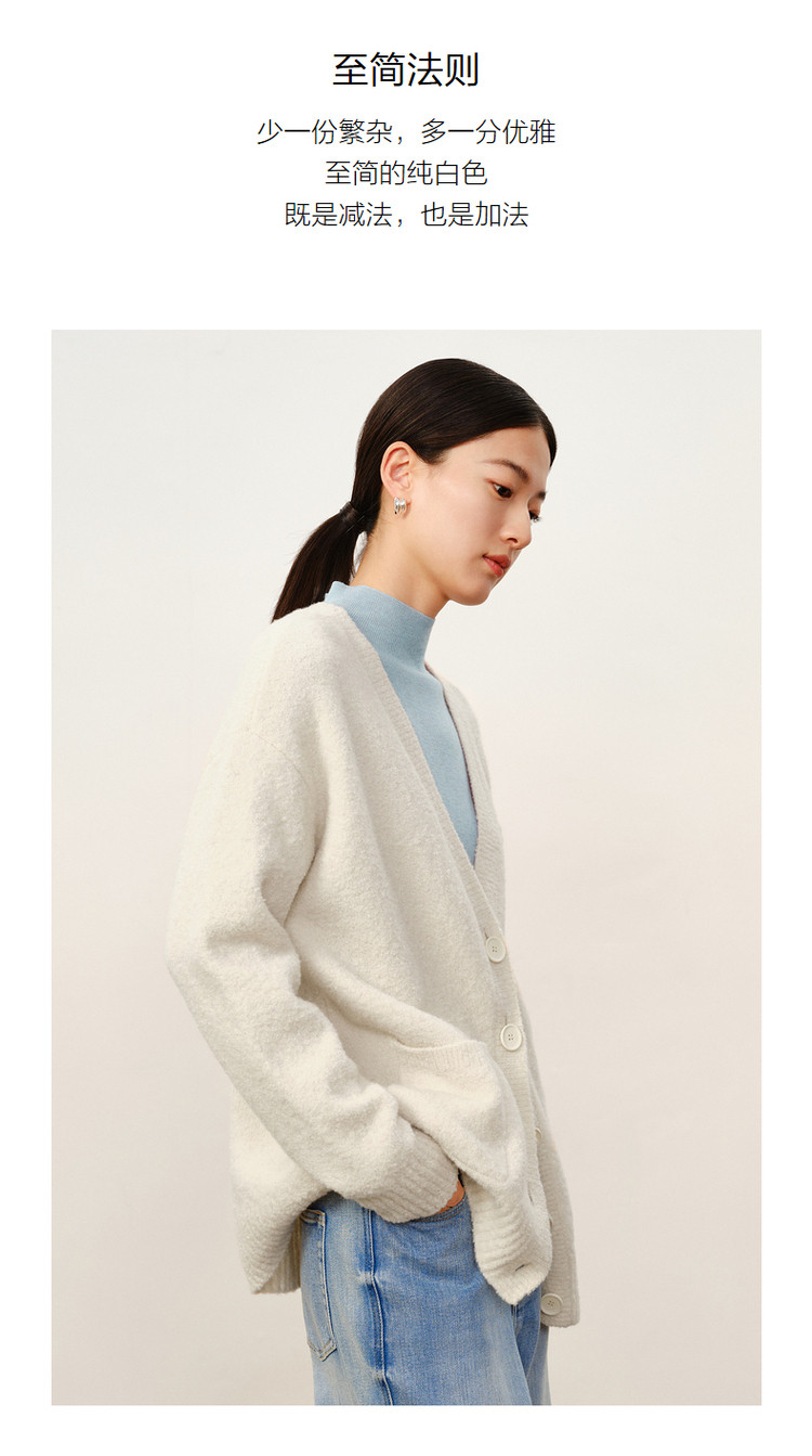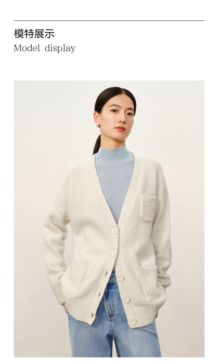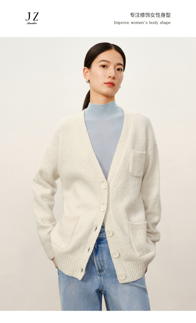 商品名称:玖姿旗下安娜蔻系列慵懒风松弛V领绵羊毛开衫毛衣女冬季 446476