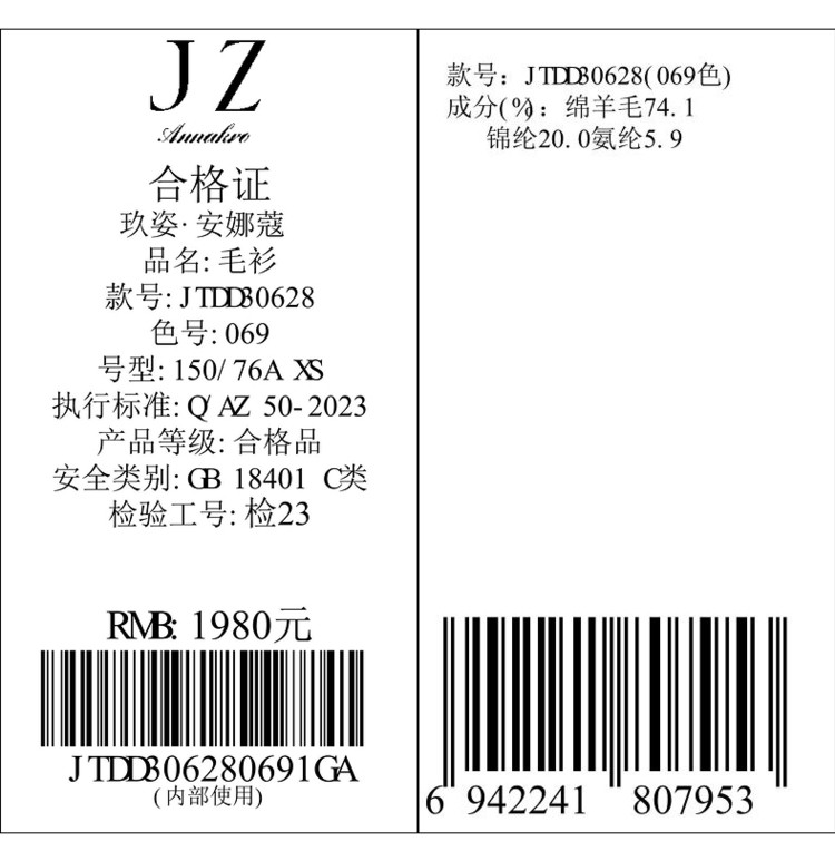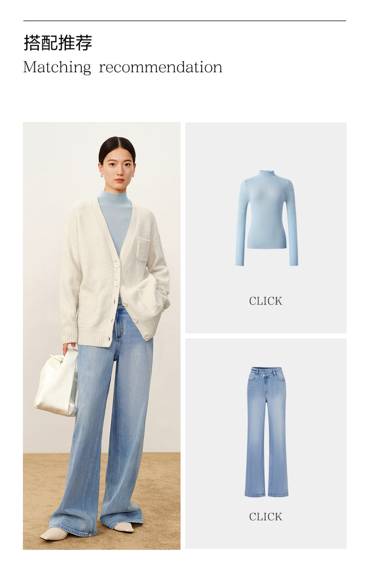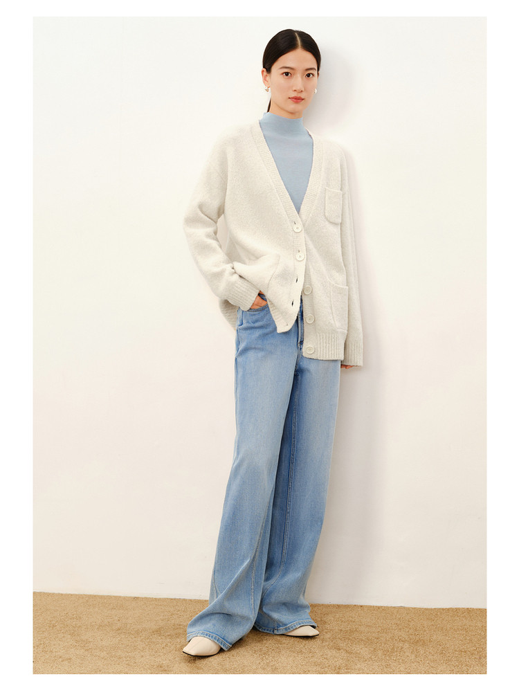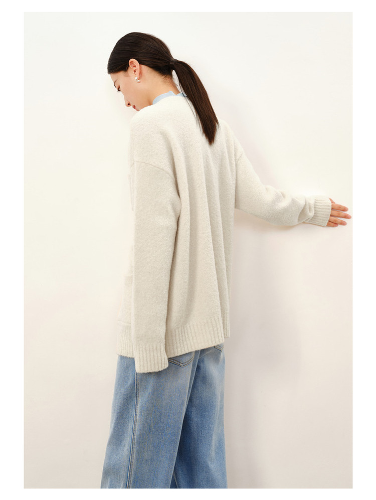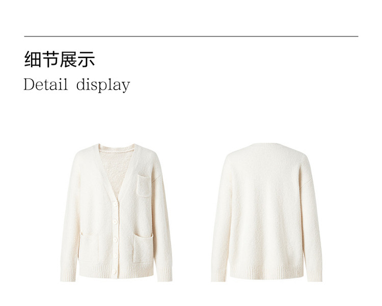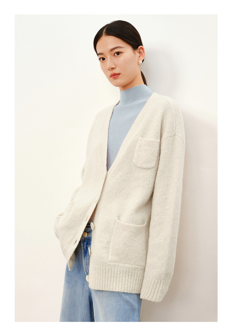 商品名称:玖姿旗下安娜蔻系列慵懒风松弛V领绵羊毛开衫毛衣女冬季 446476