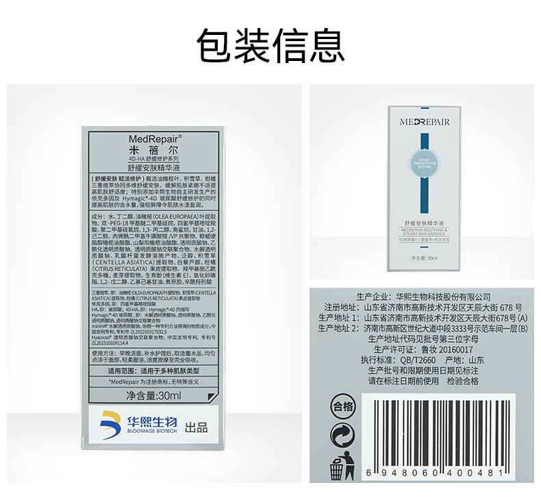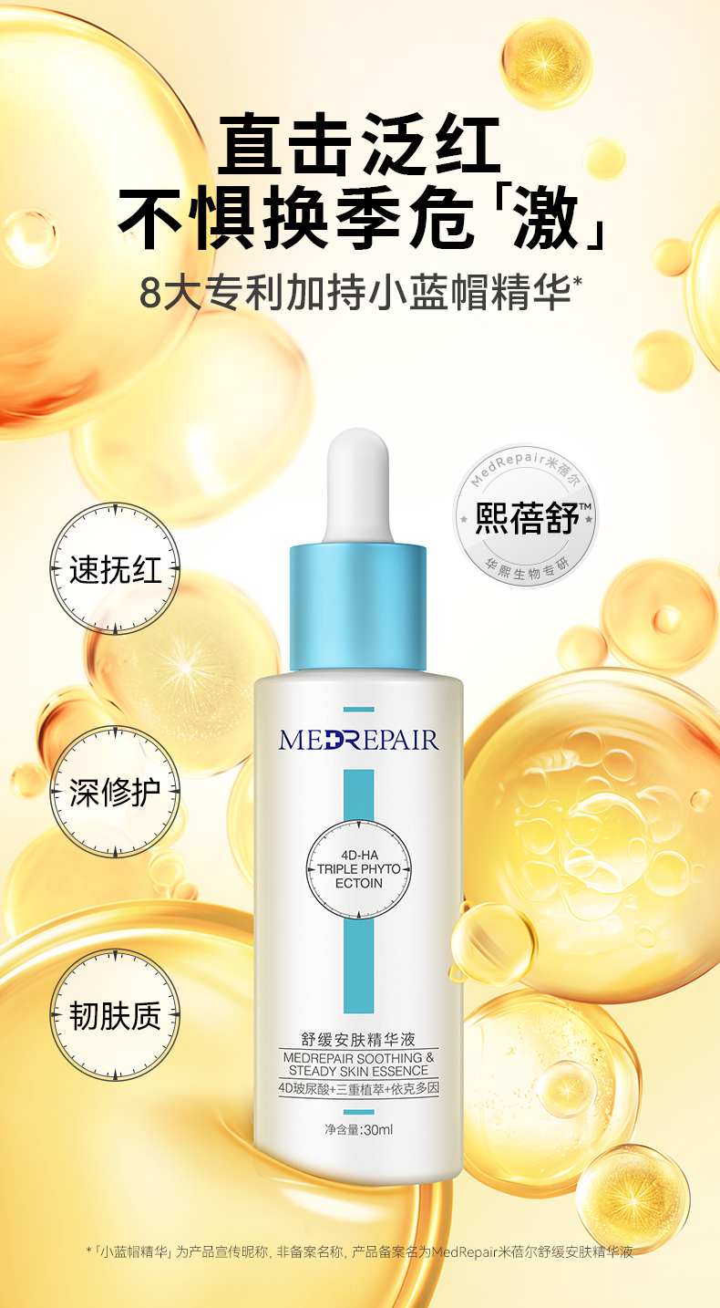 商品名称:米蓓尔 油橄榄小蓝帽精华液 30ml 舒缓修护改善泛红敏感肌玻尿酸面部精华