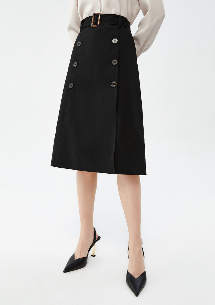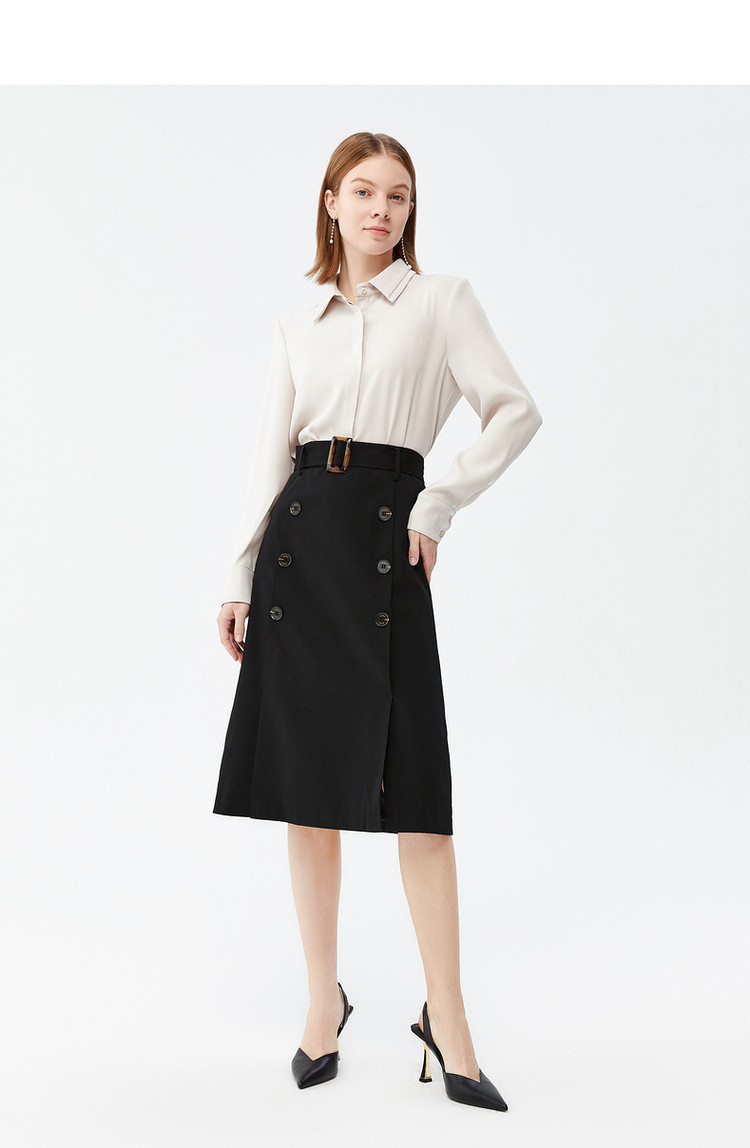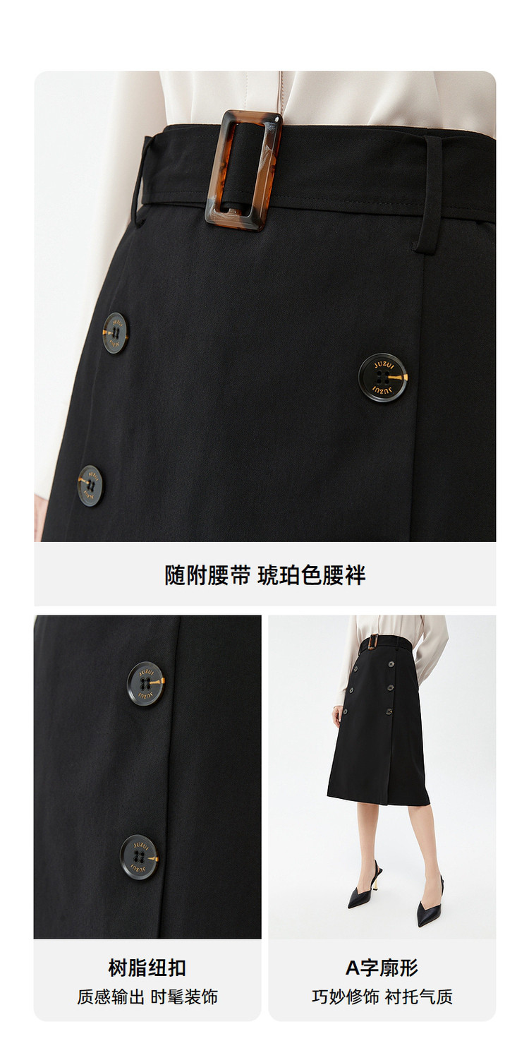 商品名称:玖姿春季双排扣气质简约商务通勤A字半截裙 543948