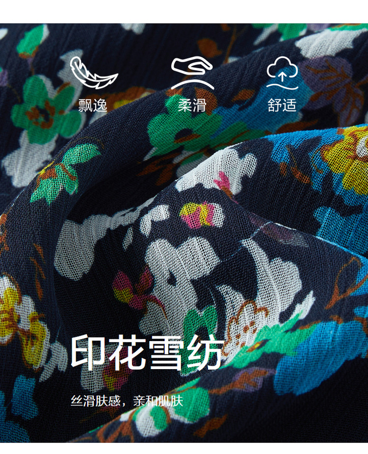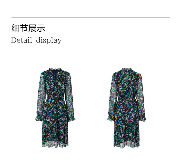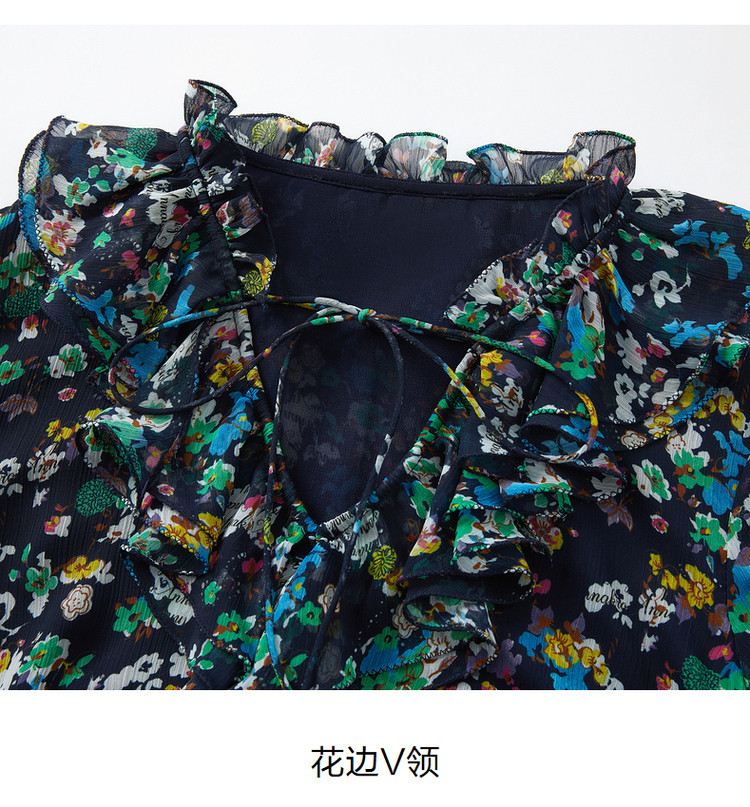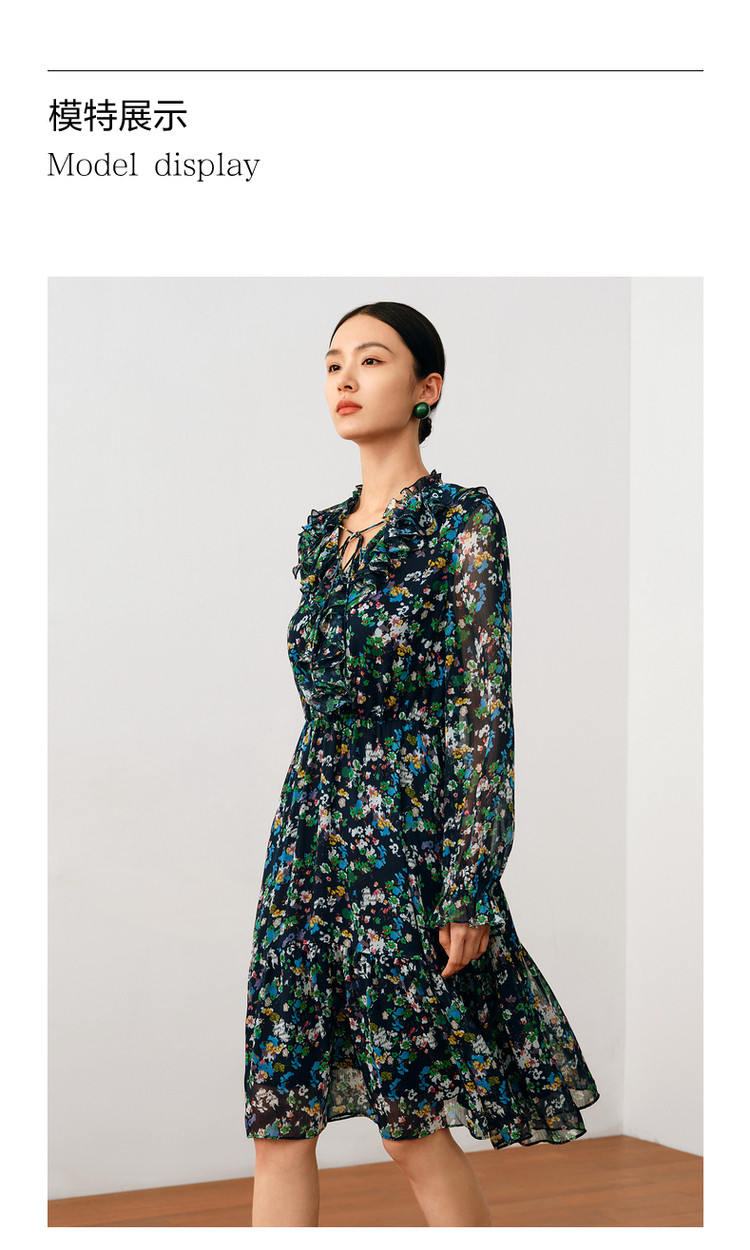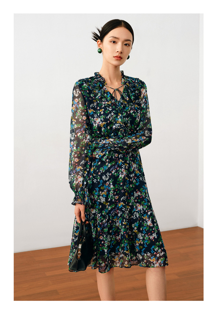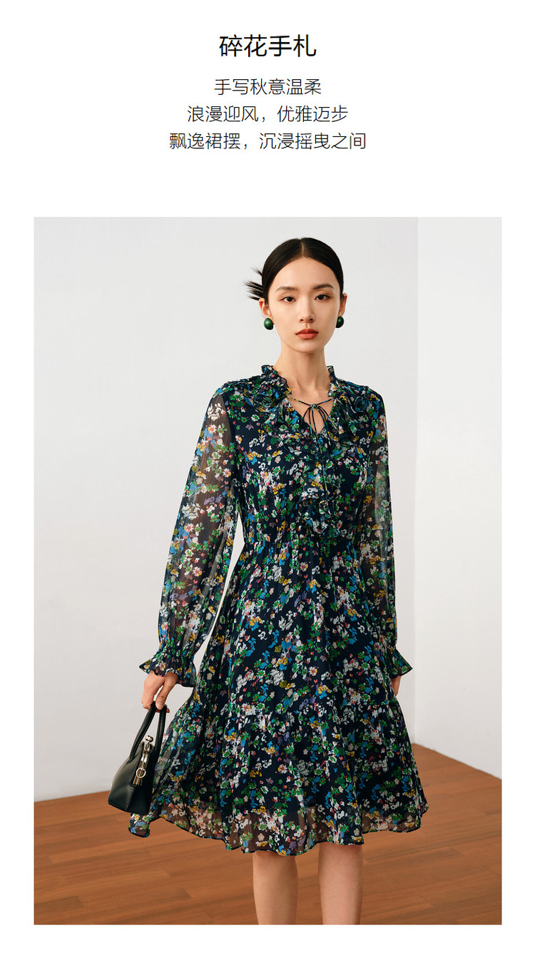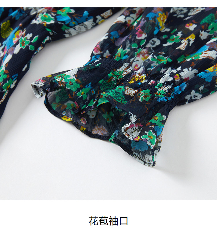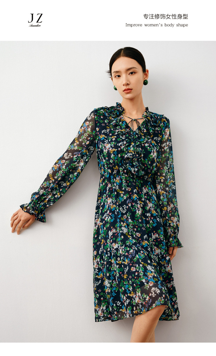 商品名称:玖姿旗下安娜蔻系列波普风碎花X型雪纺印花浪漫优雅连衣裙女秋季 611980