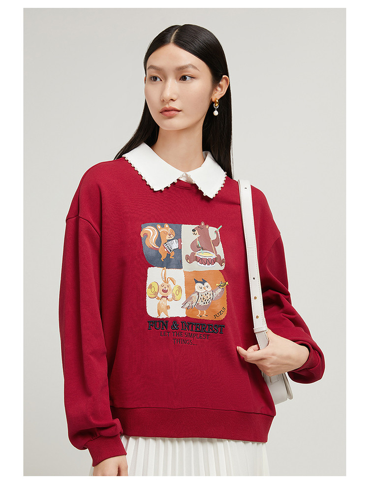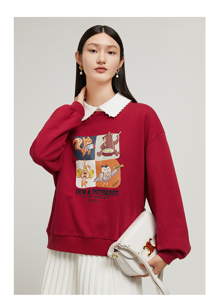 JZ玖姿丛林舞会卫衣女装秋季动物音乐印花时尚休闲上衣 924812