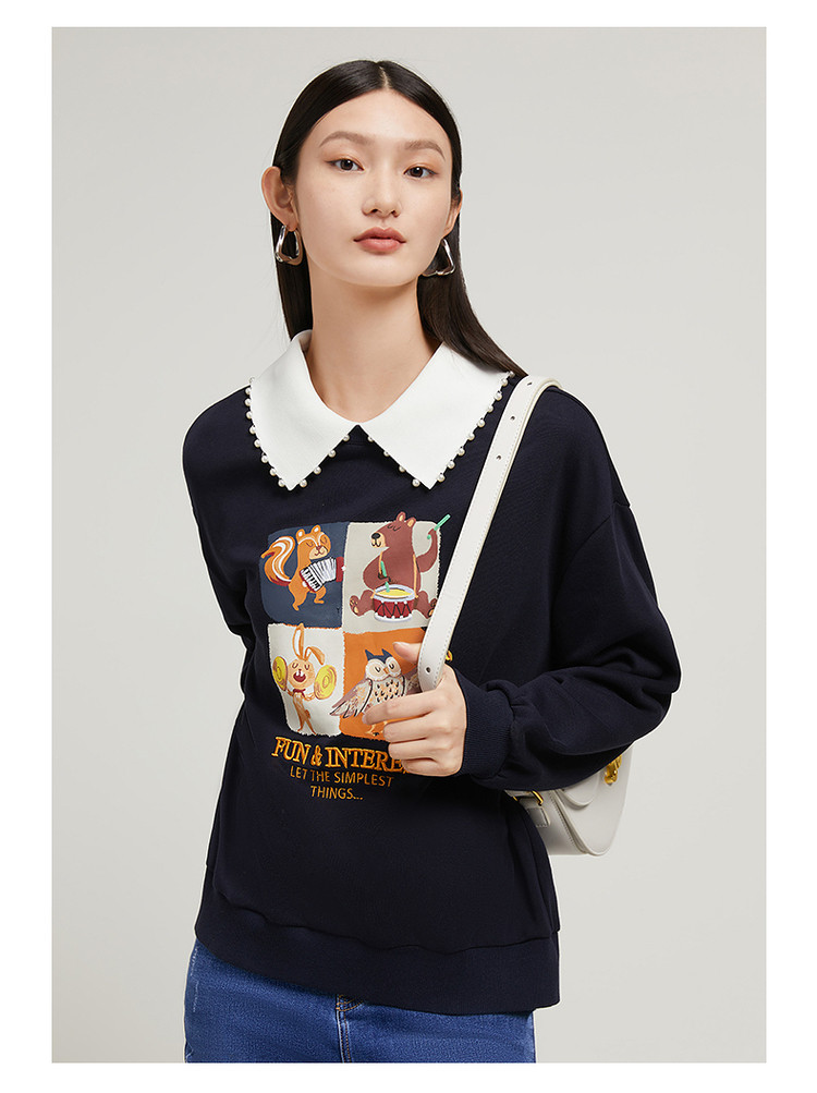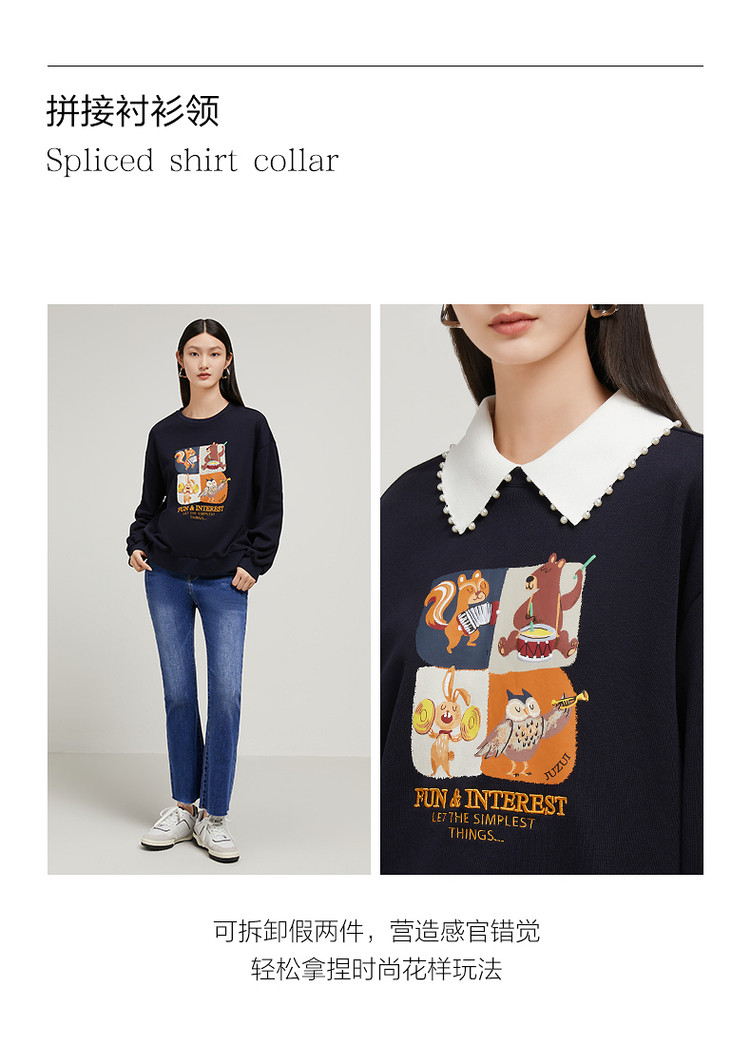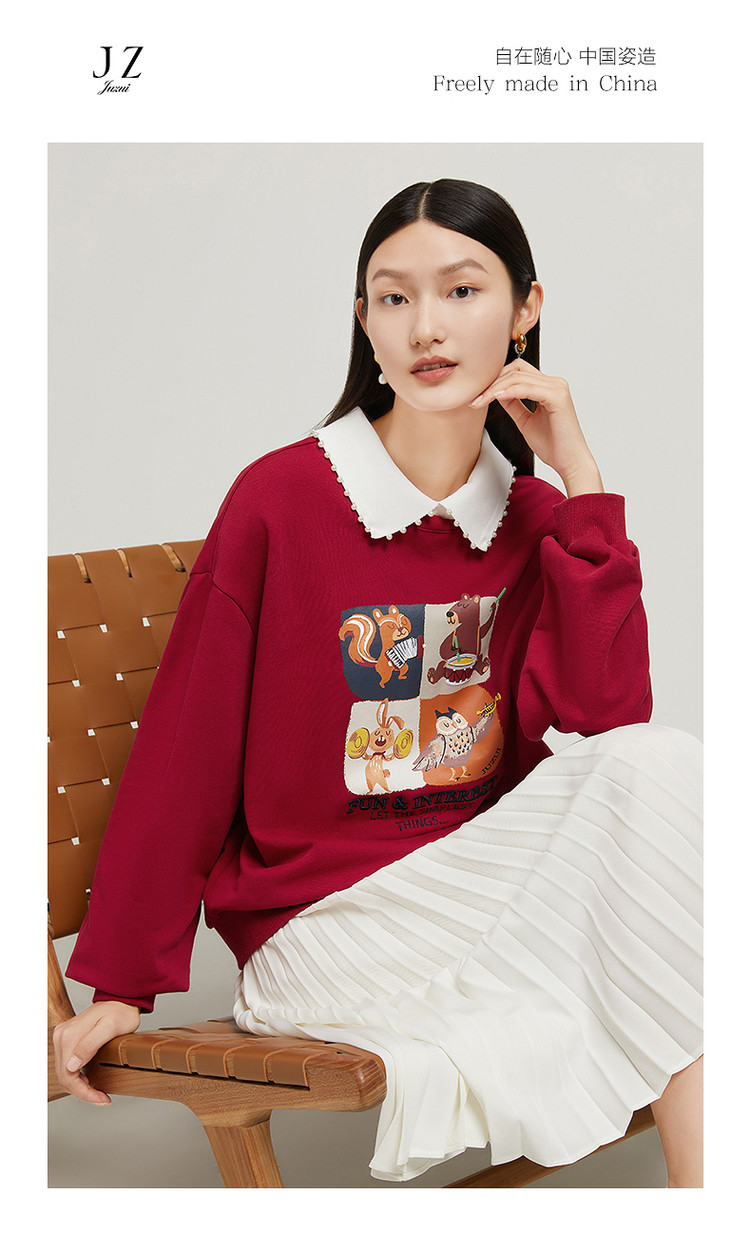 商品名称:JZ玖姿丛林舞会卫衣女装秋季动物音乐印花时尚休闲上衣 924812