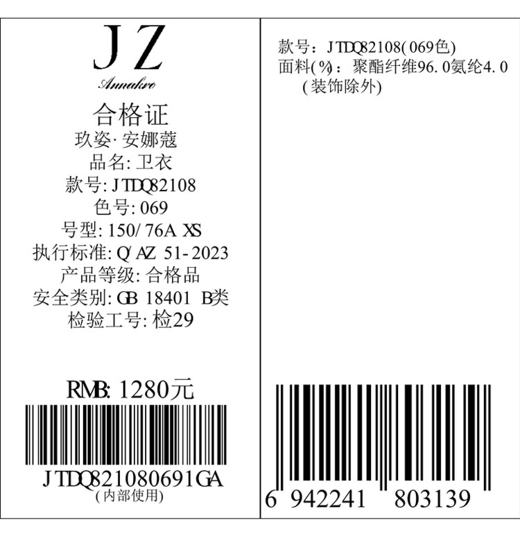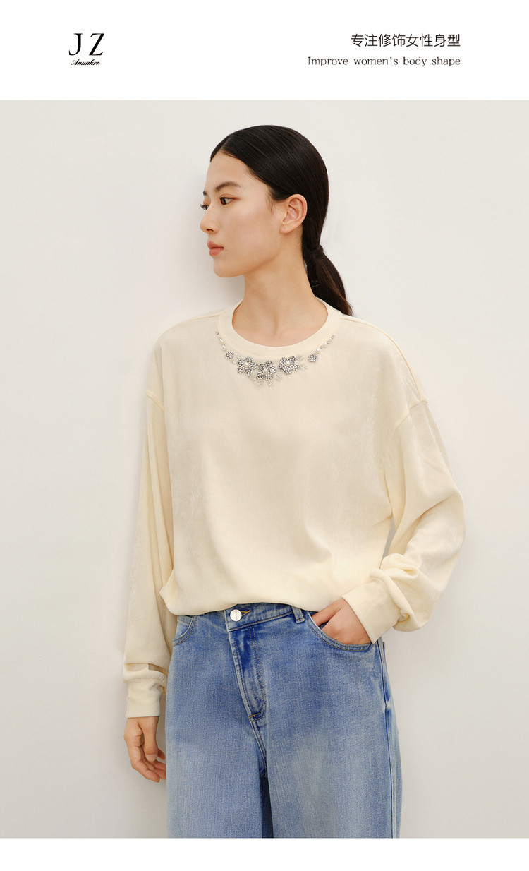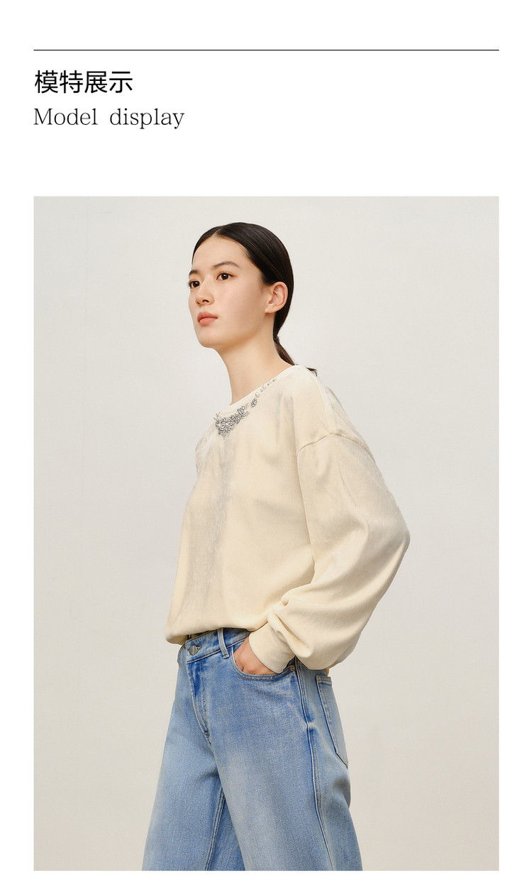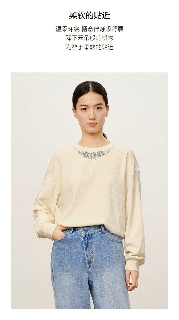 商品名称:玖姿旗下安娜蔻系列休闲宽松重工串珠长袖卫衣女秋季 624396