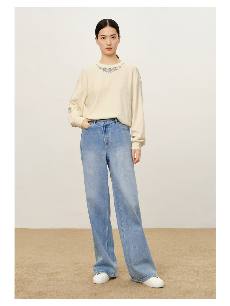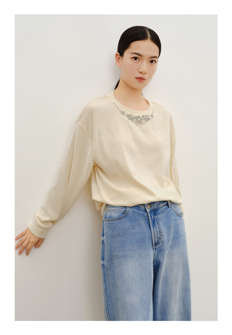 玖姿旗下安娜蔻系列休闲宽松重工串珠长袖卫衣女秋季 624396