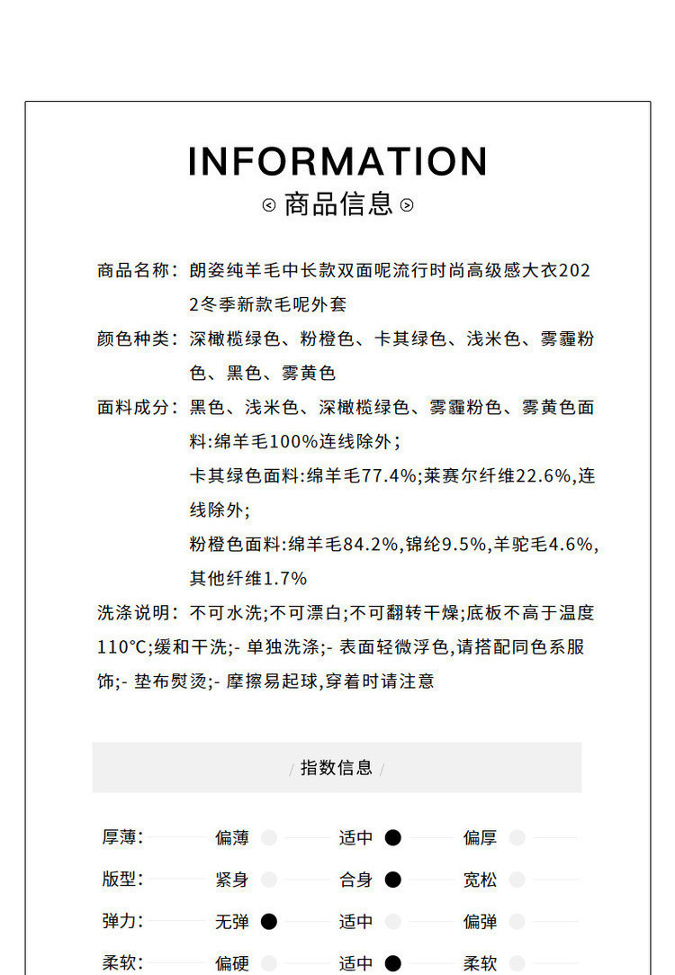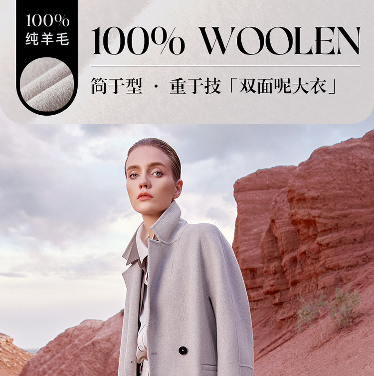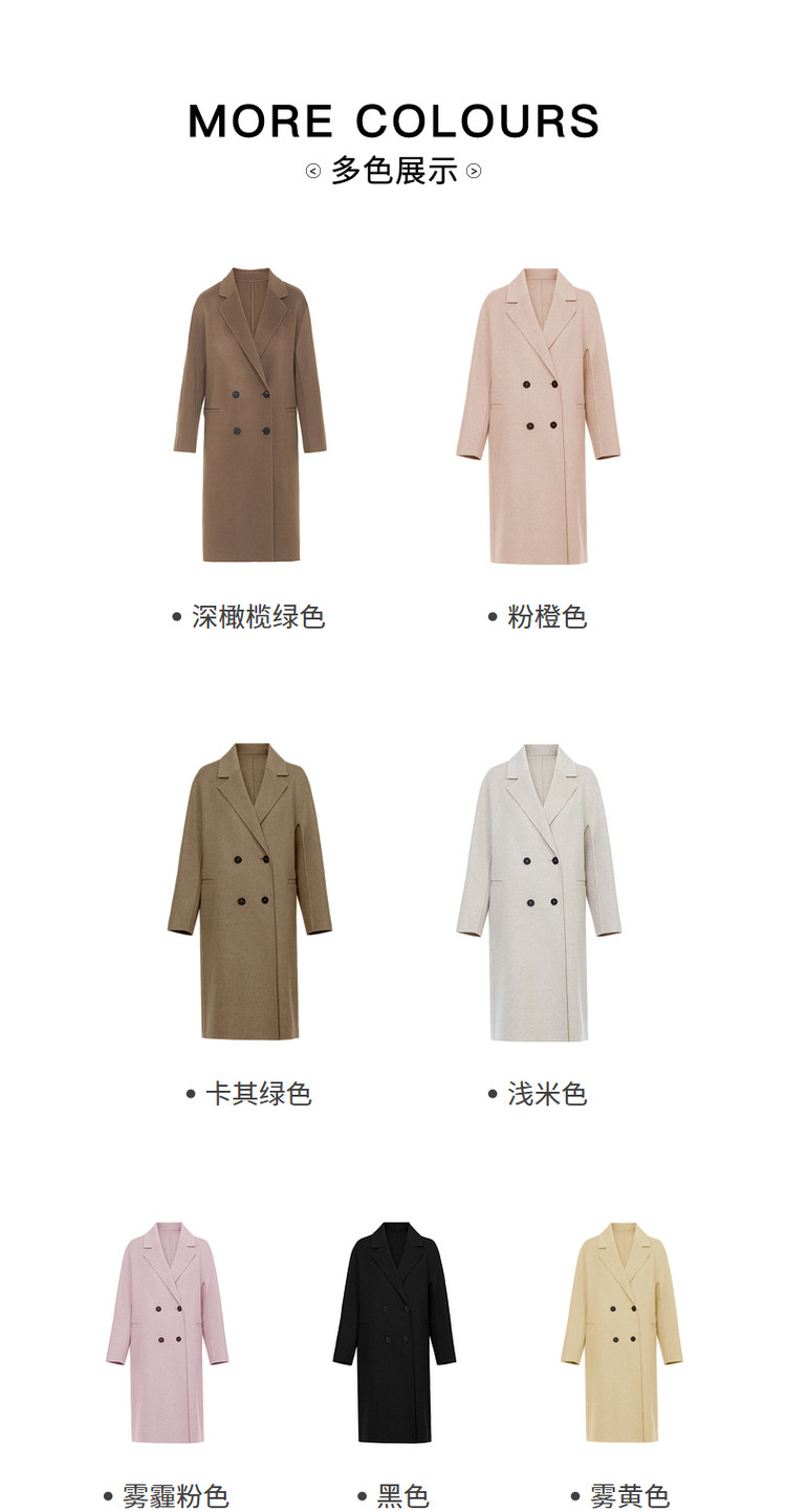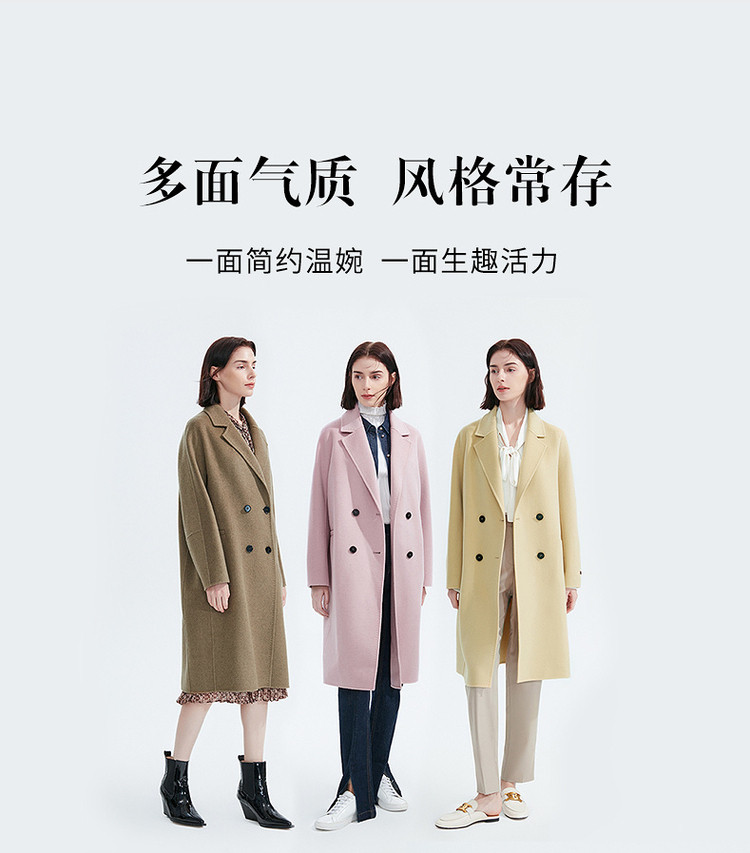 商品名称:羊毛中长款双面呢流行时尚高级感大衣冬季毛呢外套 528345
