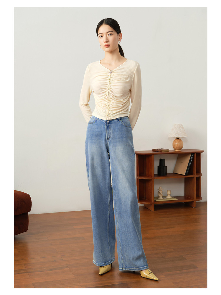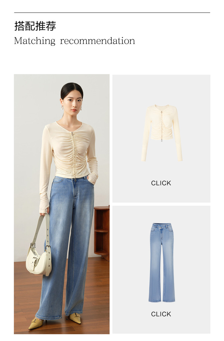 商品名称:玖姿旗下安娜蔻系列休闲褶皱修身醋酸针织长袖衬衫女秋季 514252