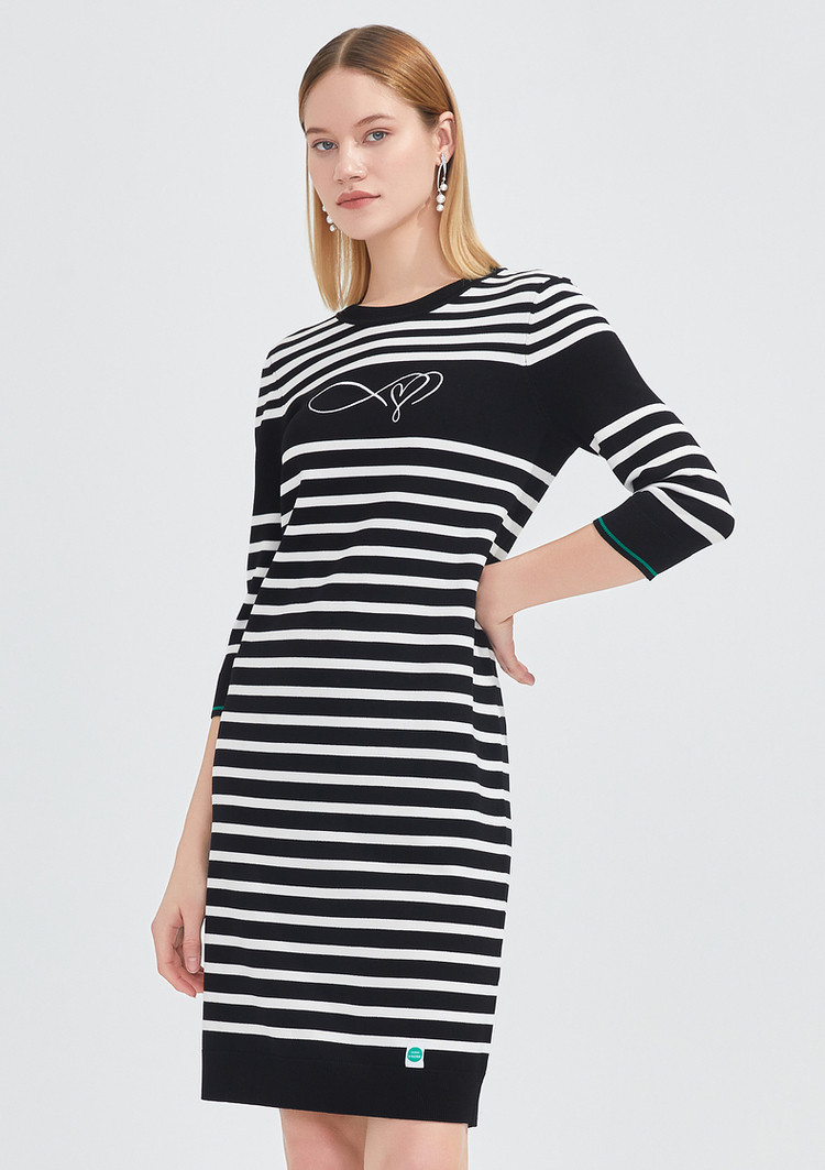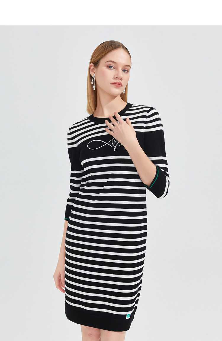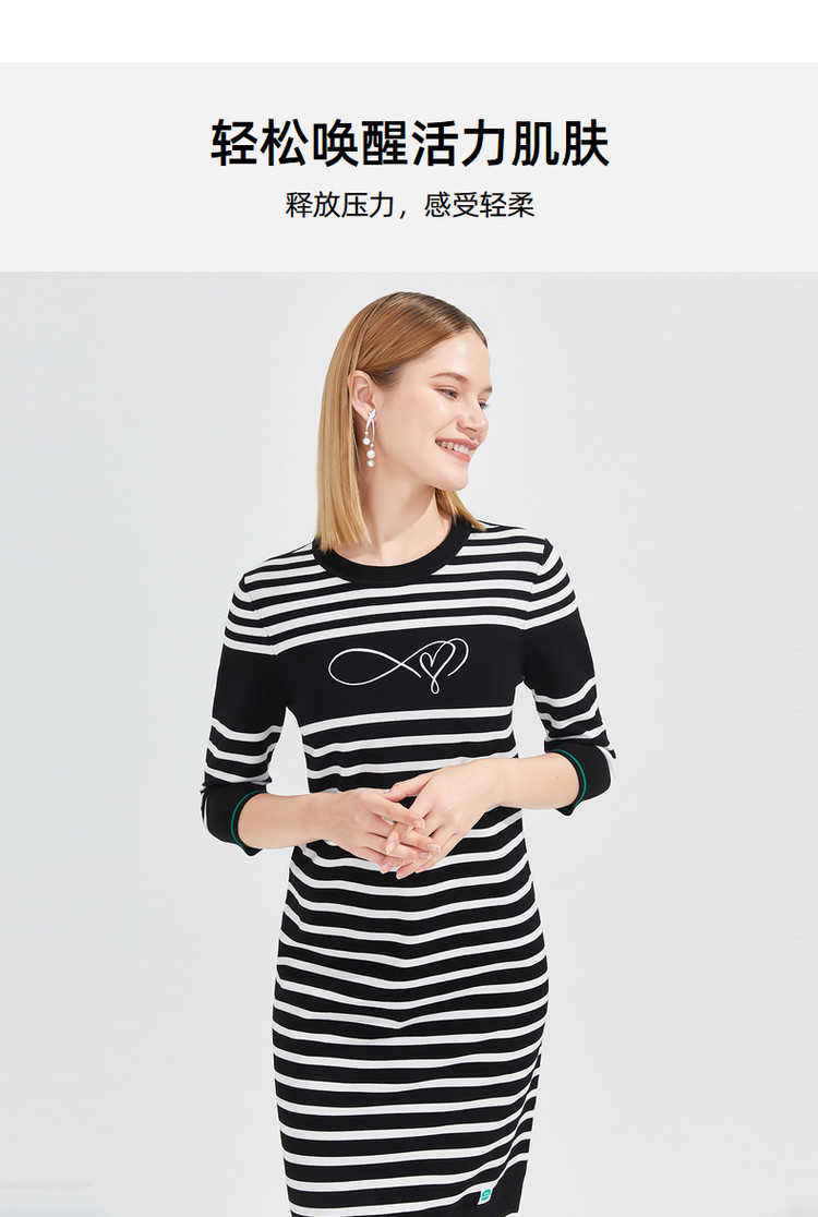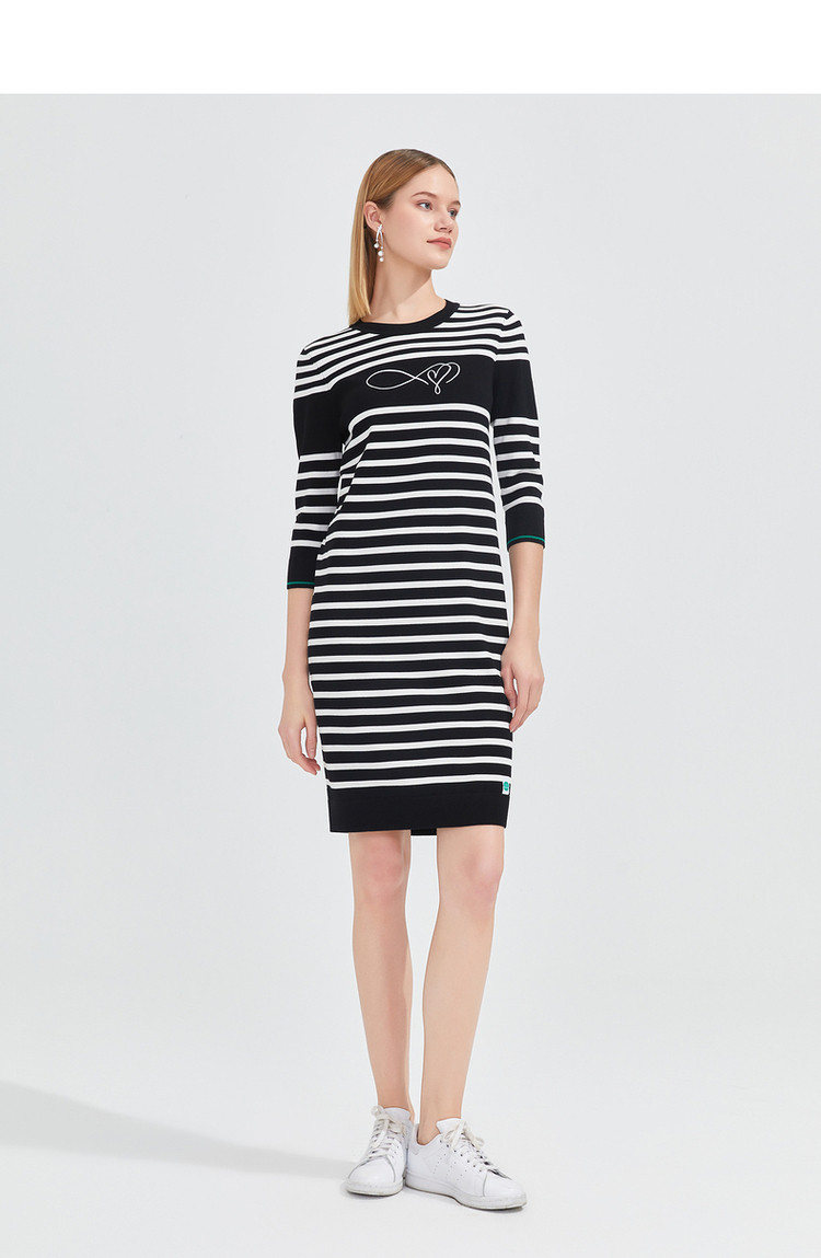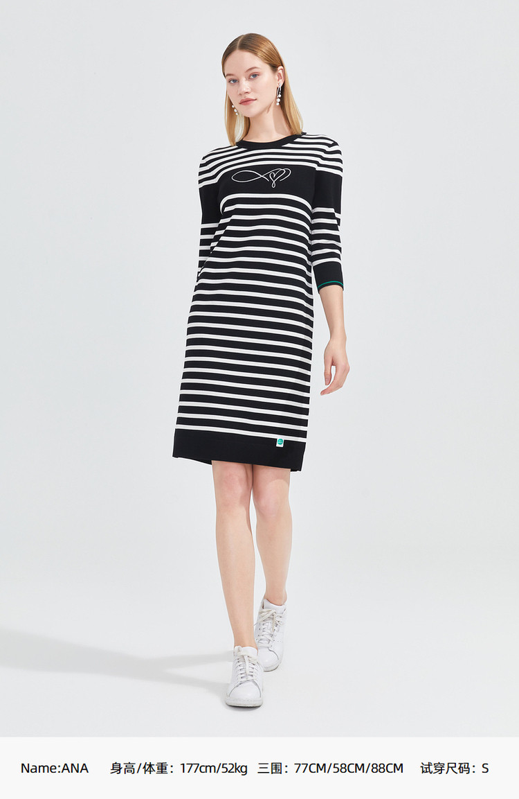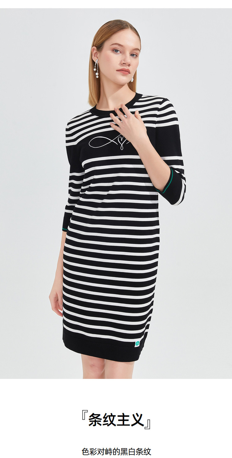 商品名称:商场同款条纹针织裙女春季刺绣连衣裙JWCC31504 671052