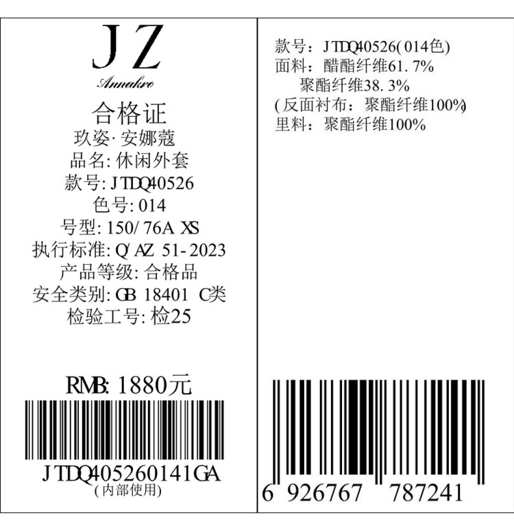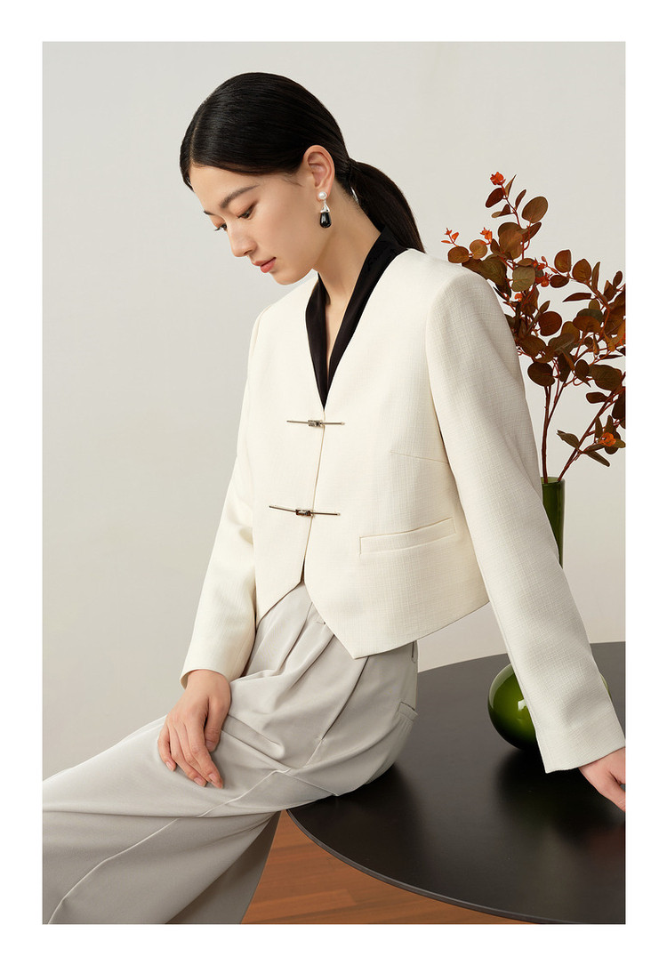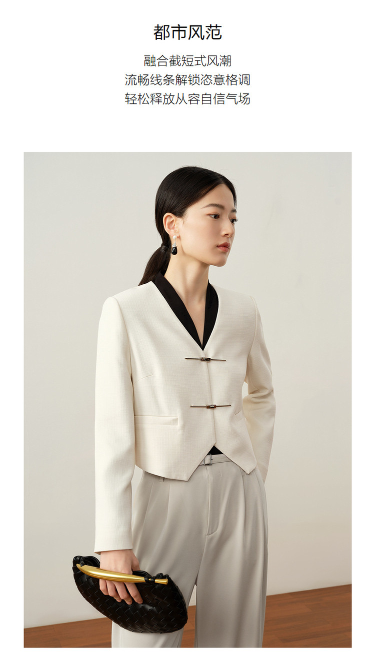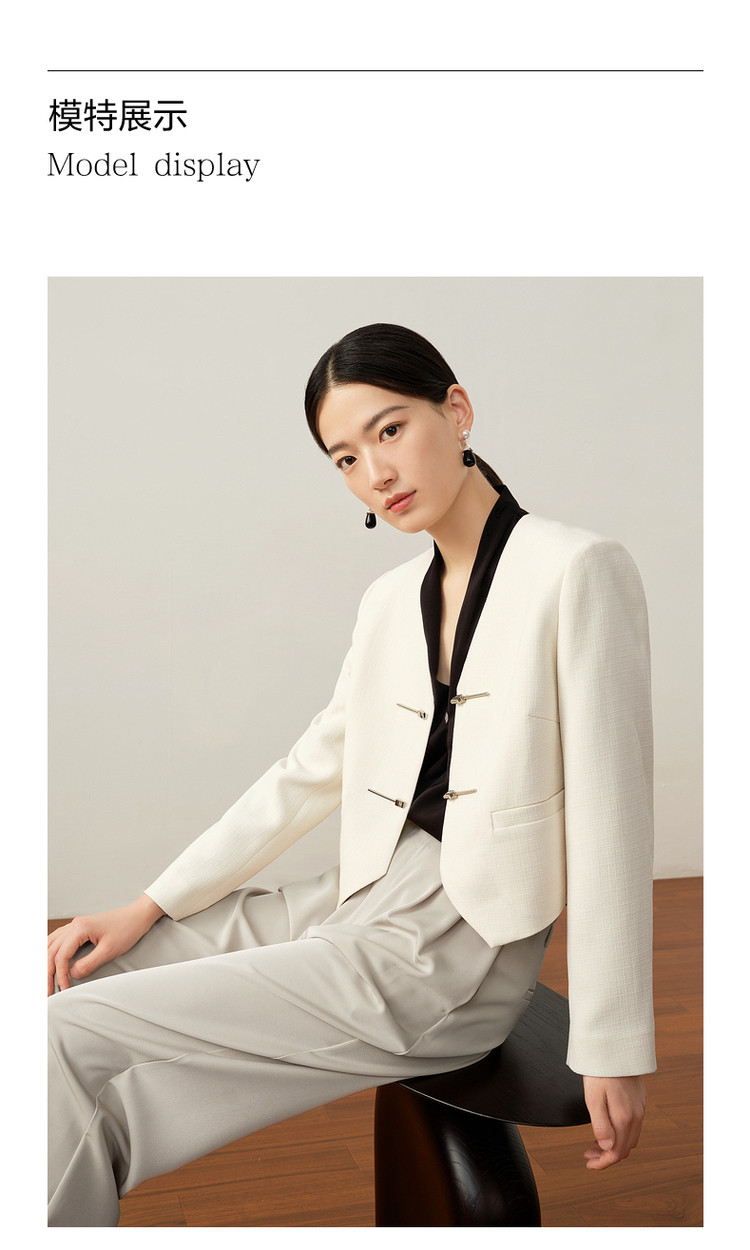 商品名称:玖姿旗下安娜蔻系列新中式国风直筒醋酸西装外套女秋季 848652