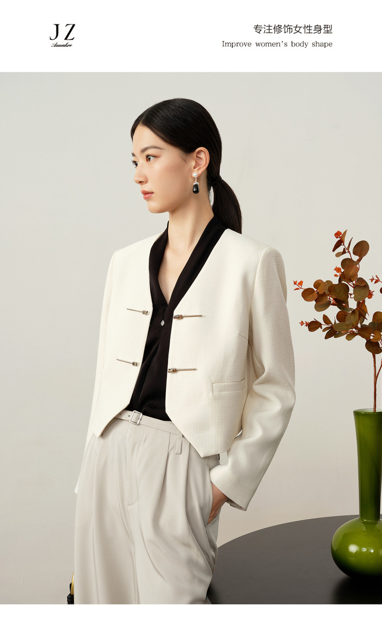 玖姿旗下安娜蔻系列新中式国风直筒醋酸西装外套女秋季 848652