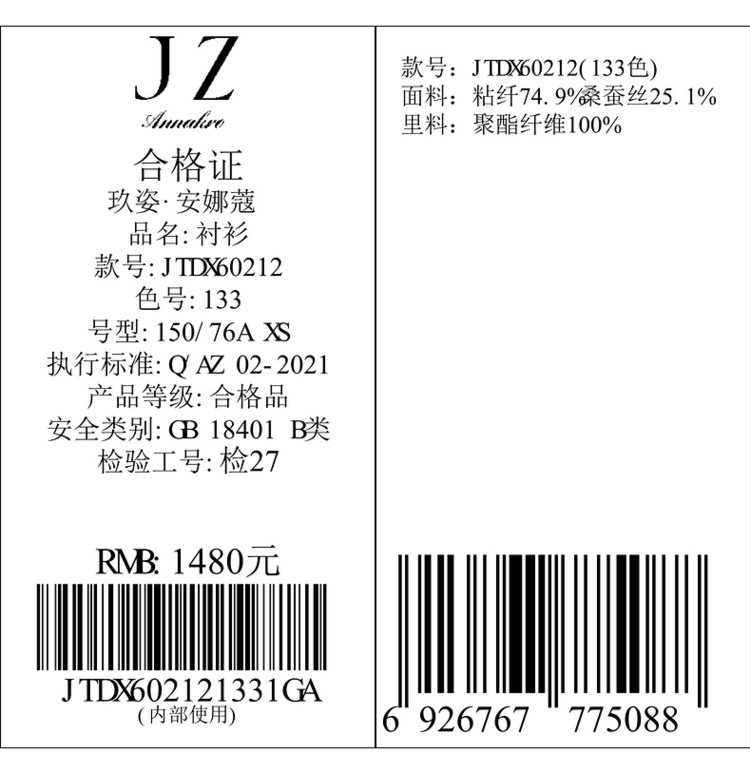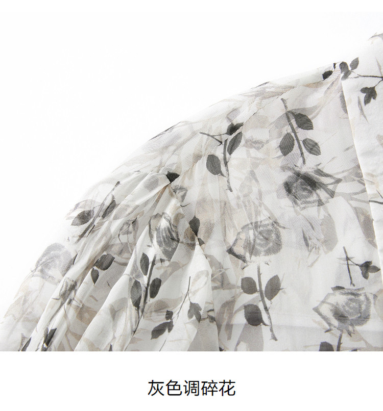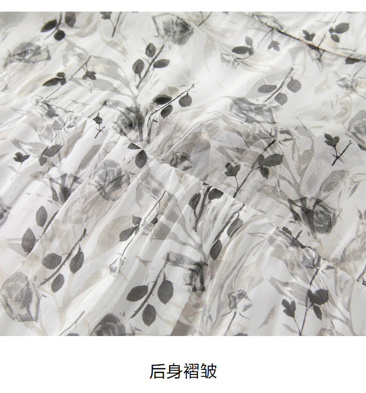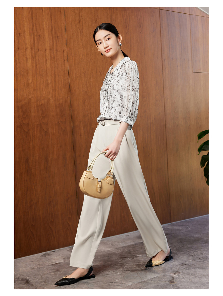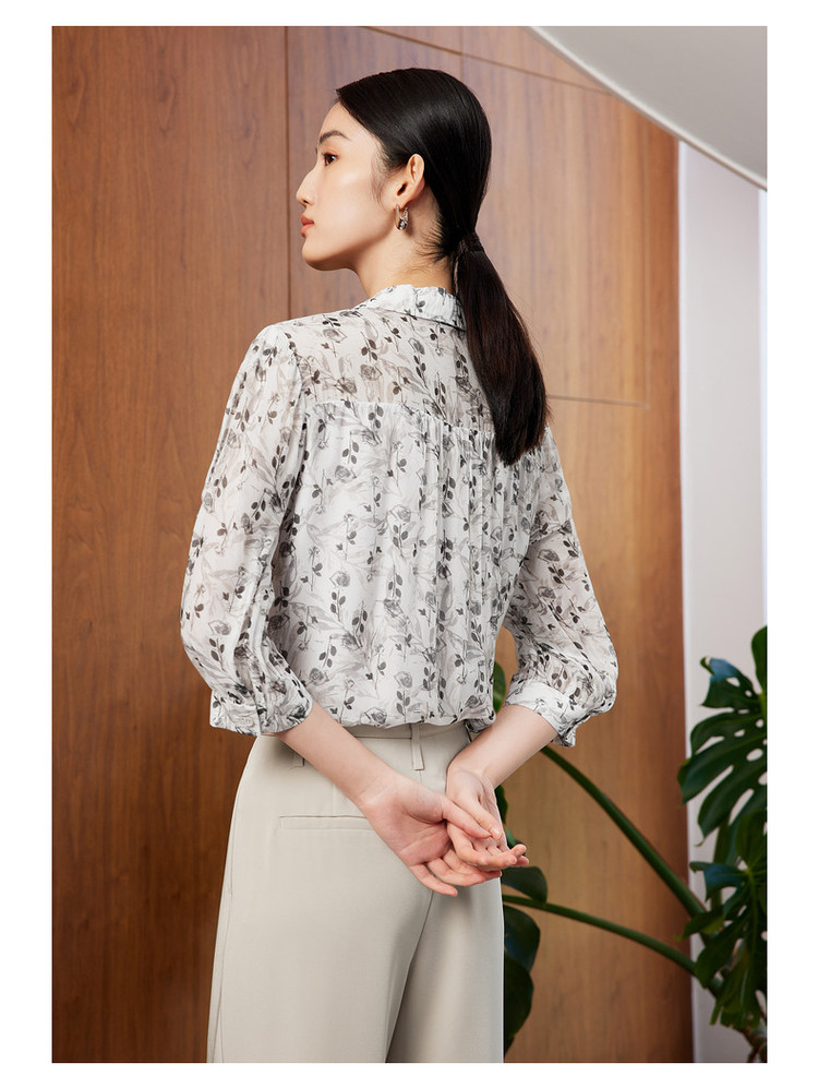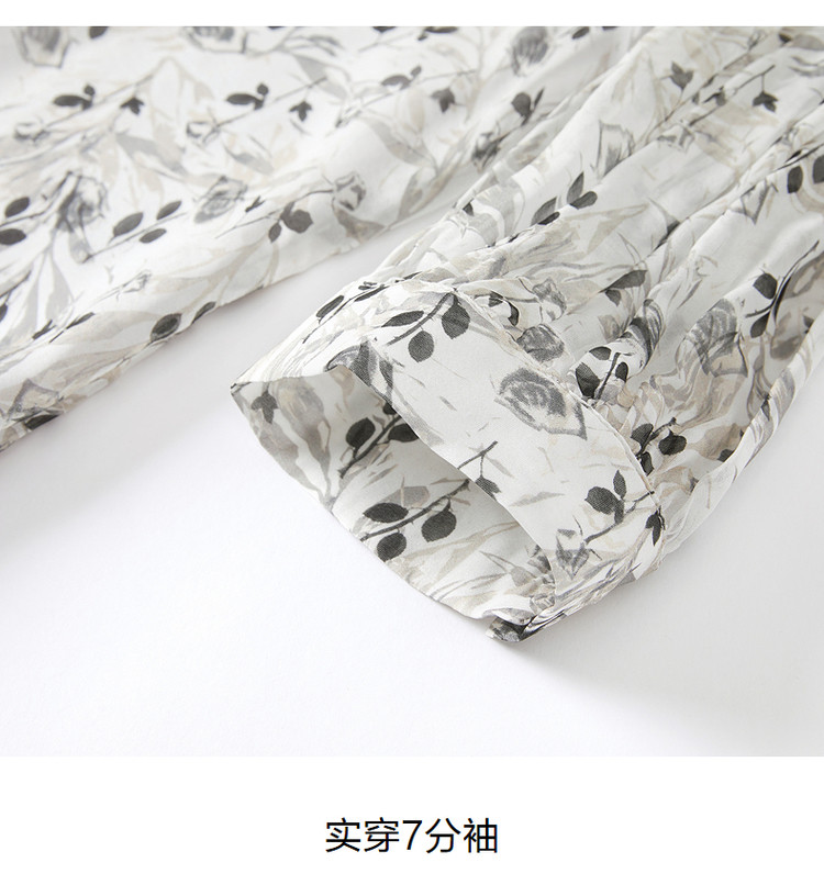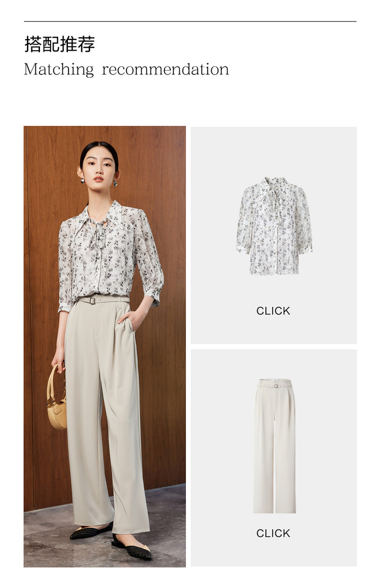 商品名称:玖姿旗下安娜蔻系列直筒女装夏季通勤印花飘带桑蚕丝上衣 222732