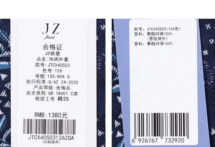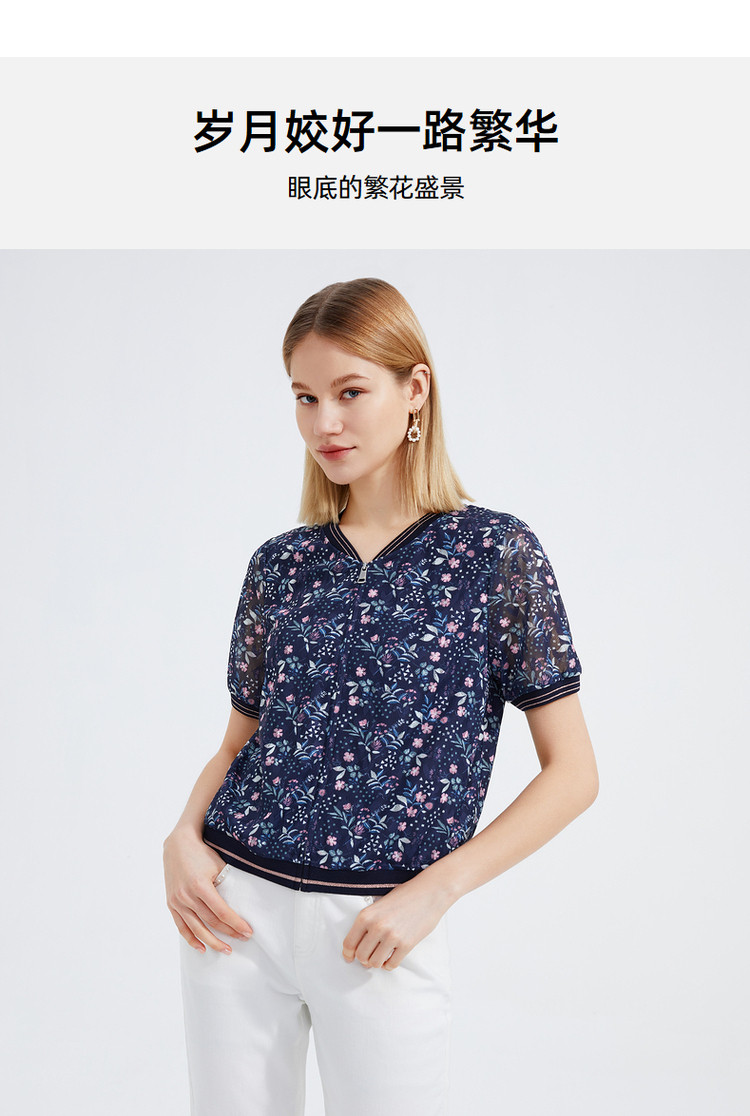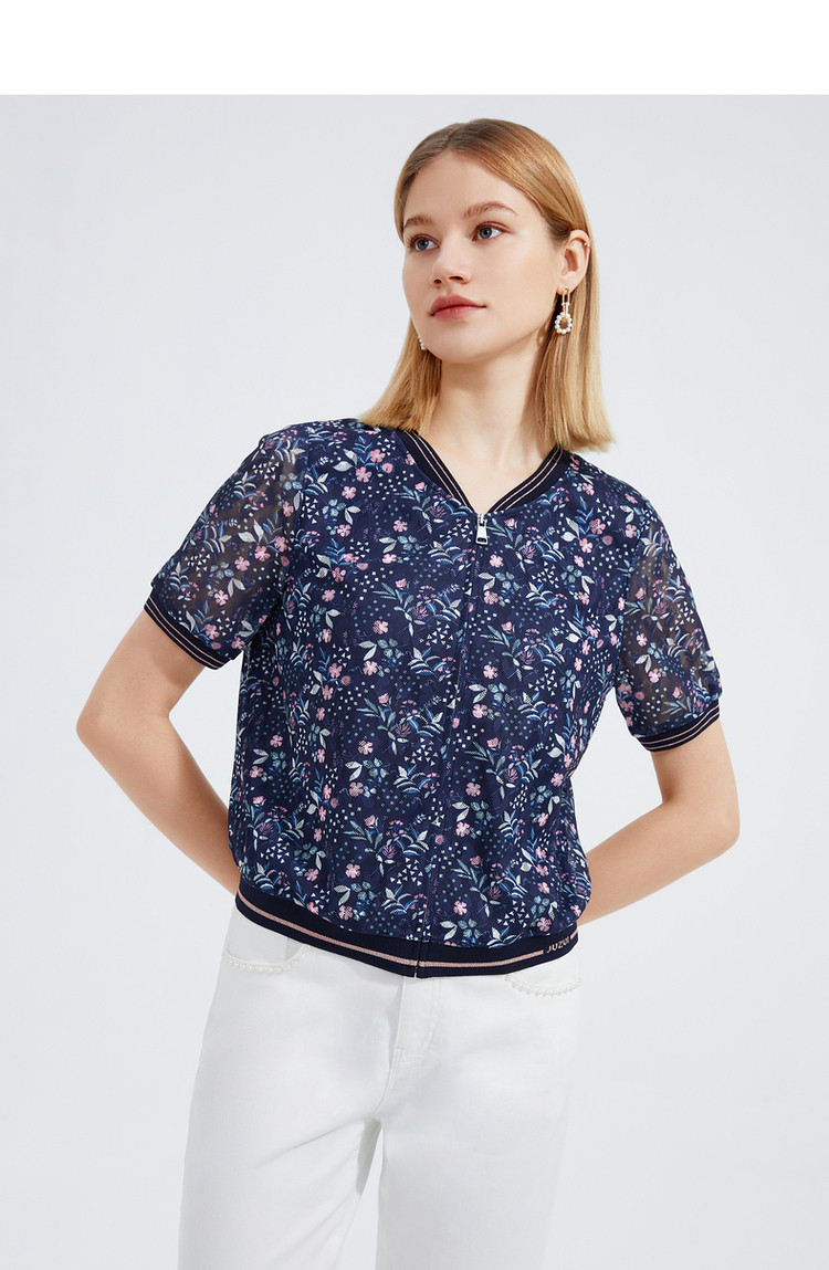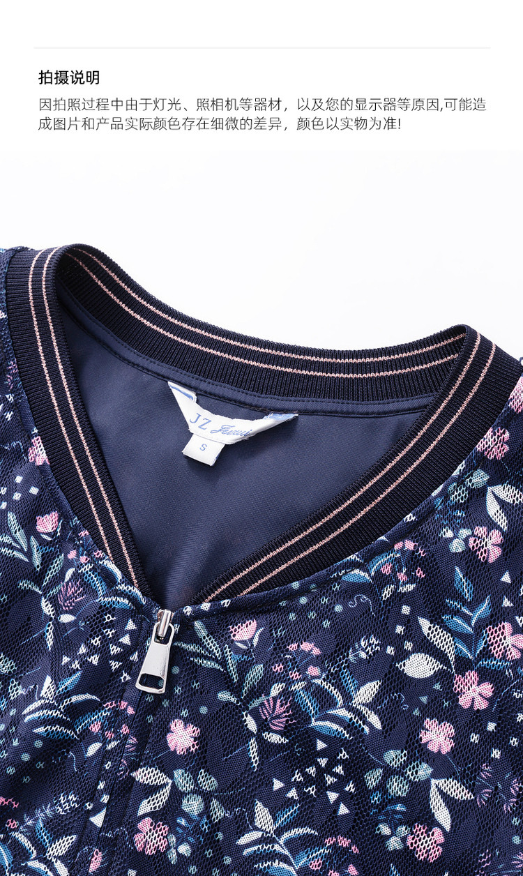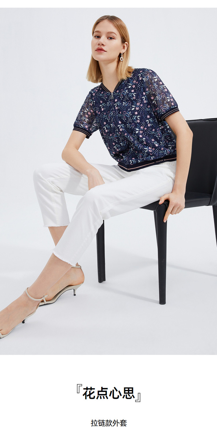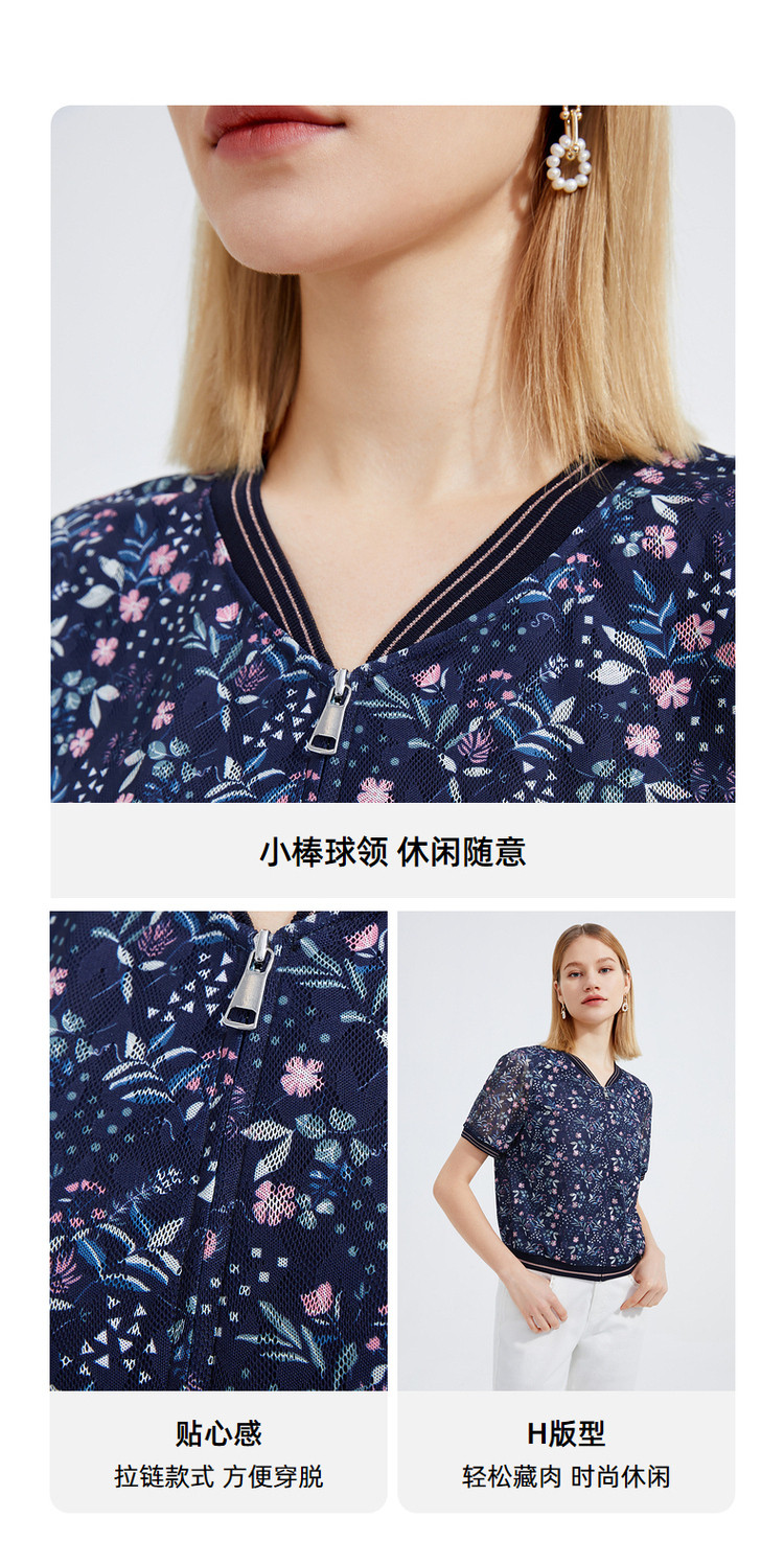 商品名称:玖姿夏季印花拉链款女式短袖外套 161548