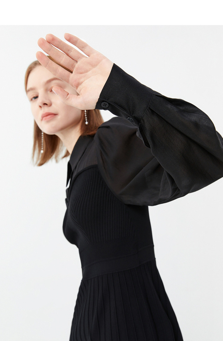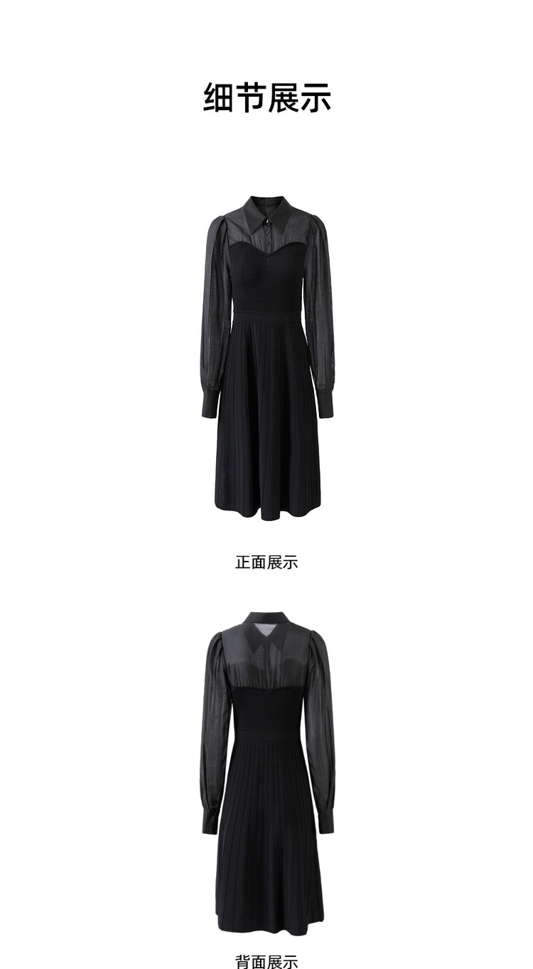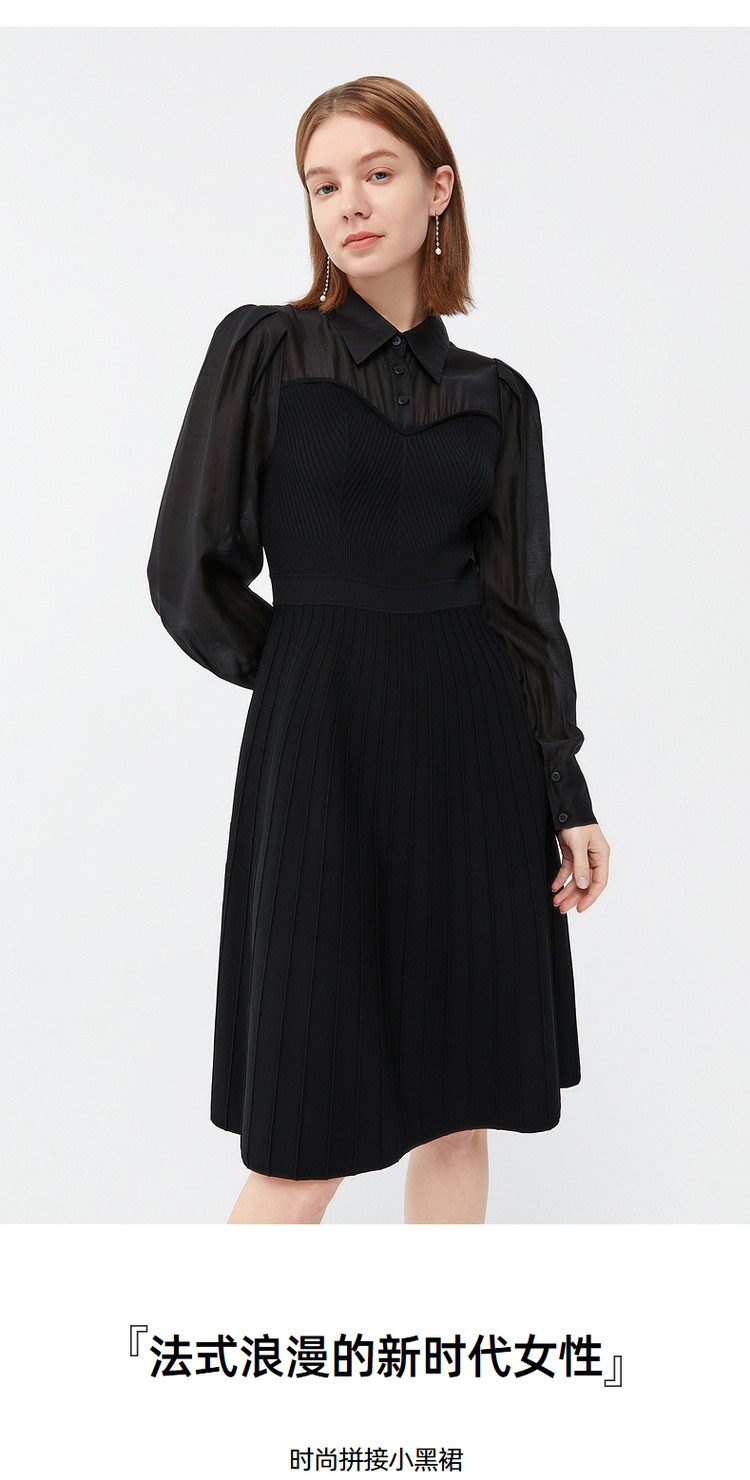 JZ玖姿毛衫针织连衣裙女装春季开衩小黑裙 588236