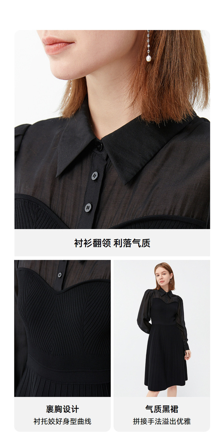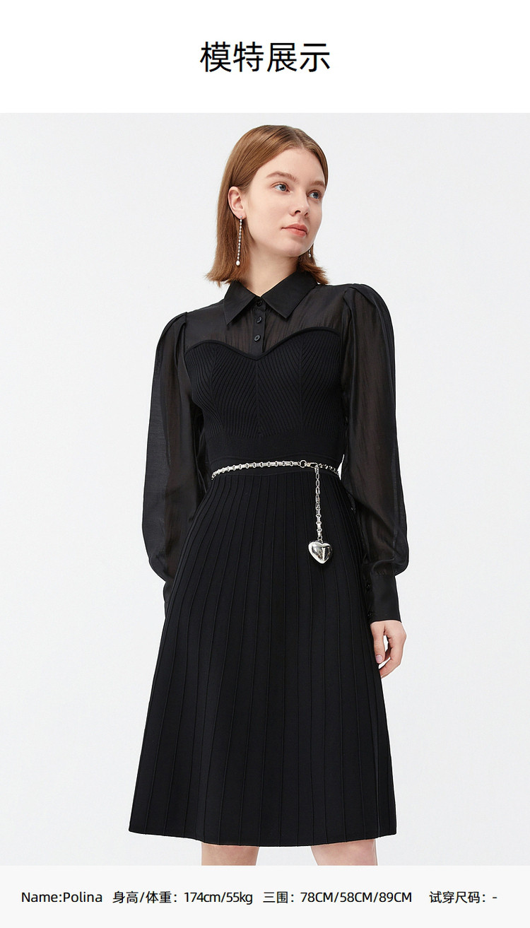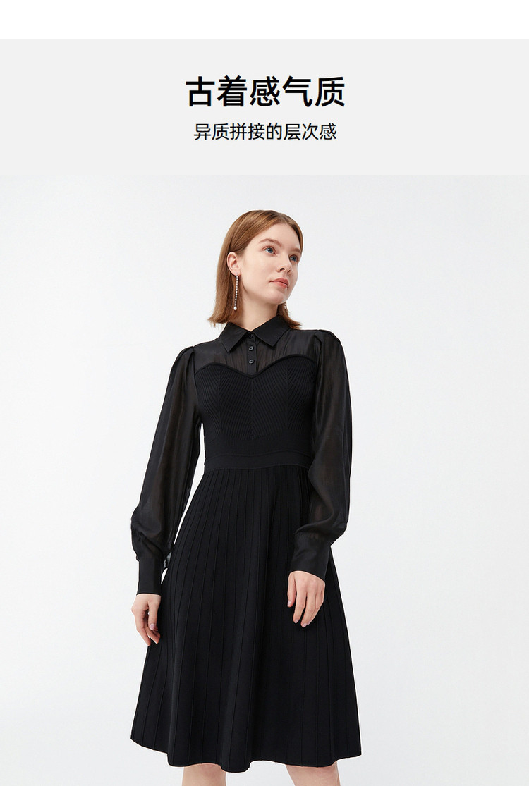 商品名称:玖姿春季浪漫法式拼接裹胸针织连衣裙 851148