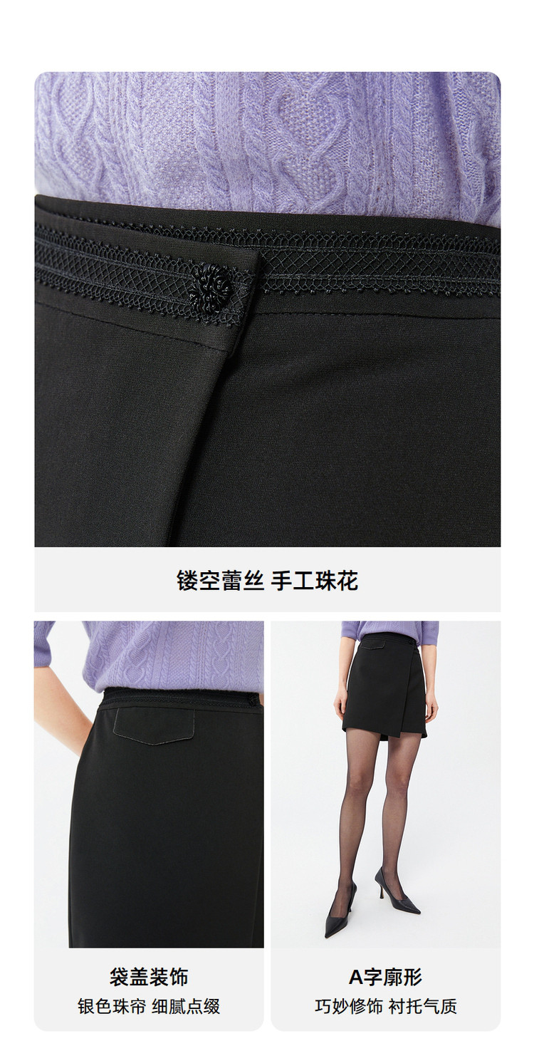 商品名称:玖姿春季不规则镂空蕾丝A字半截裙 724364