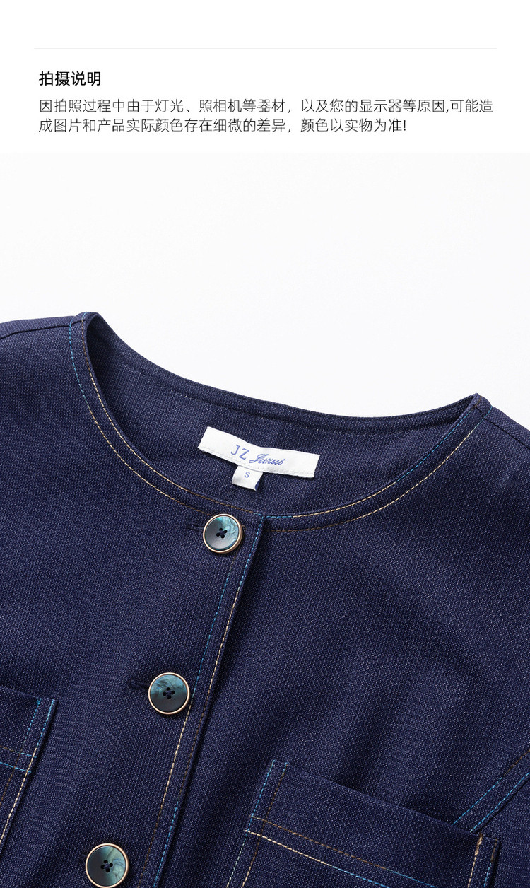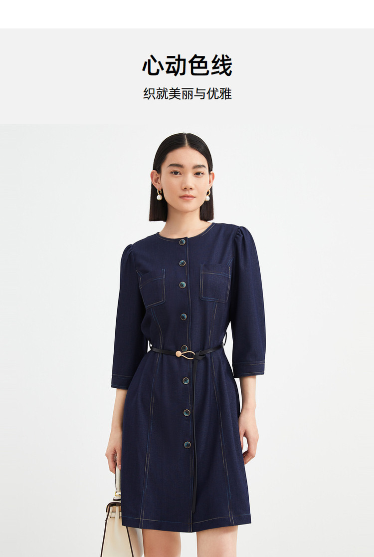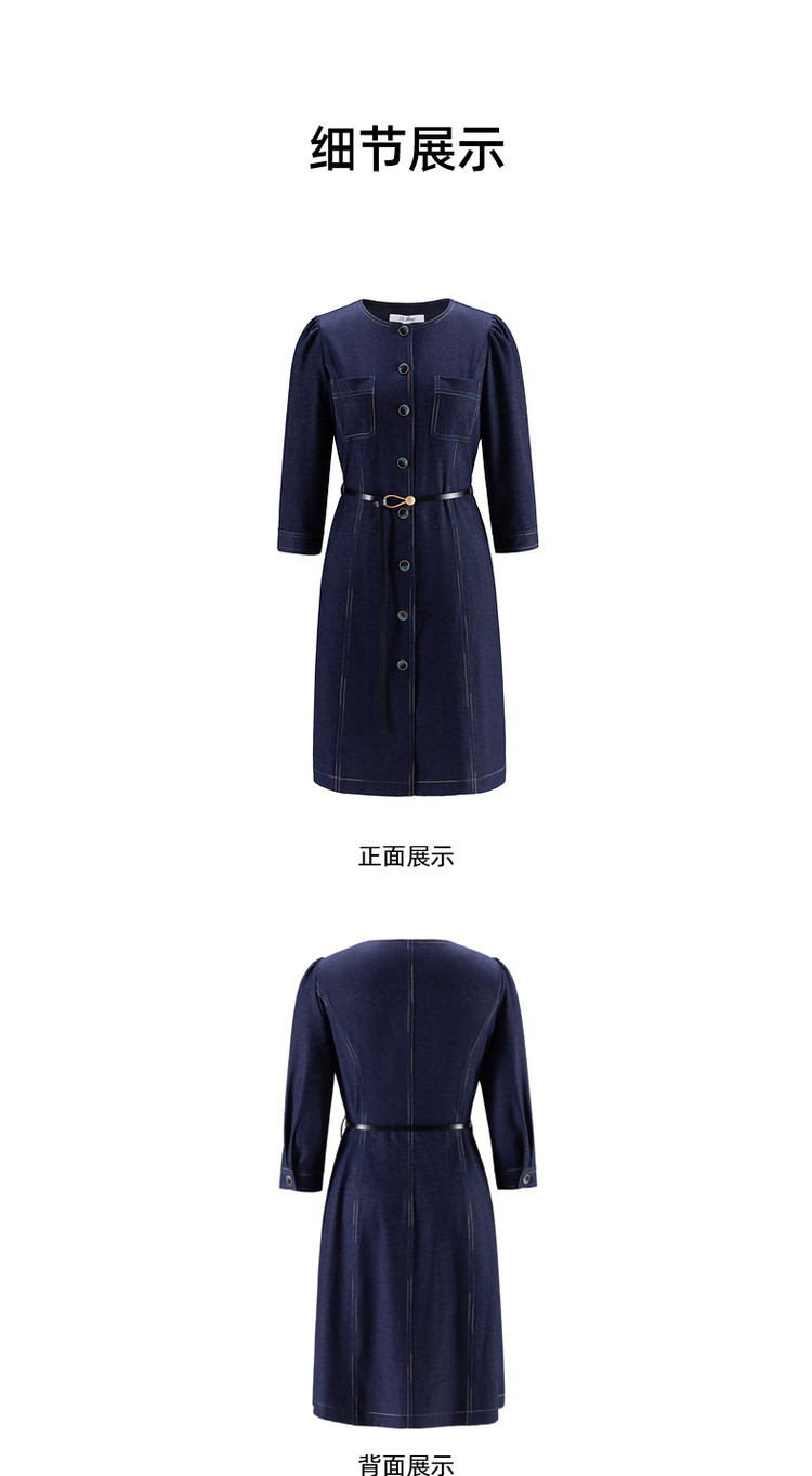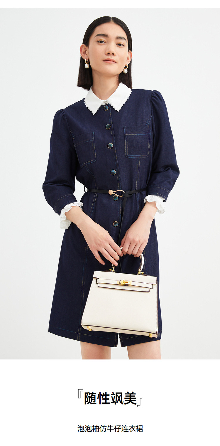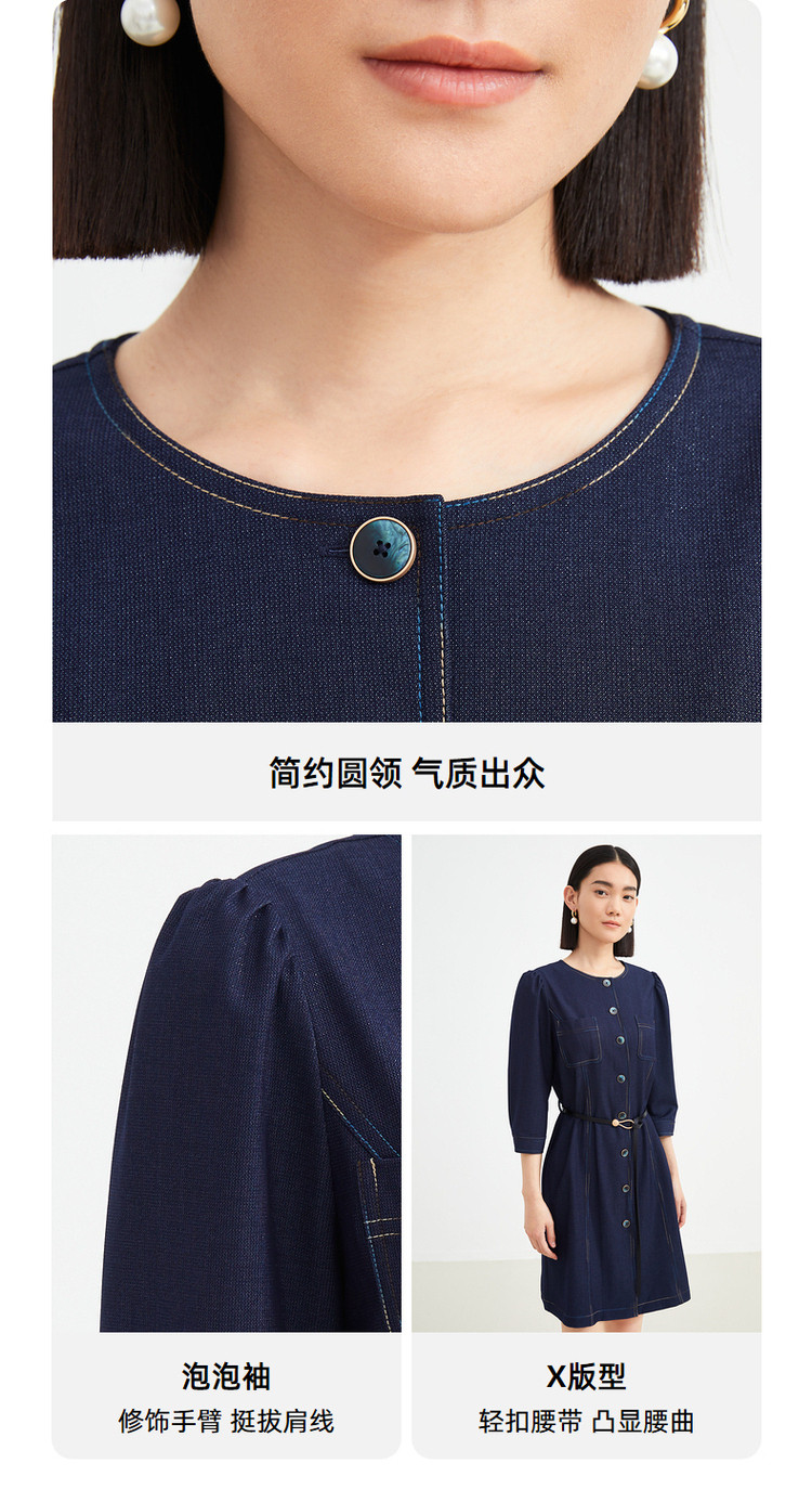 商品名称:JZ玖姿秋季通勤OL复古泡泡袖仿牛仔连衣裙女 319308