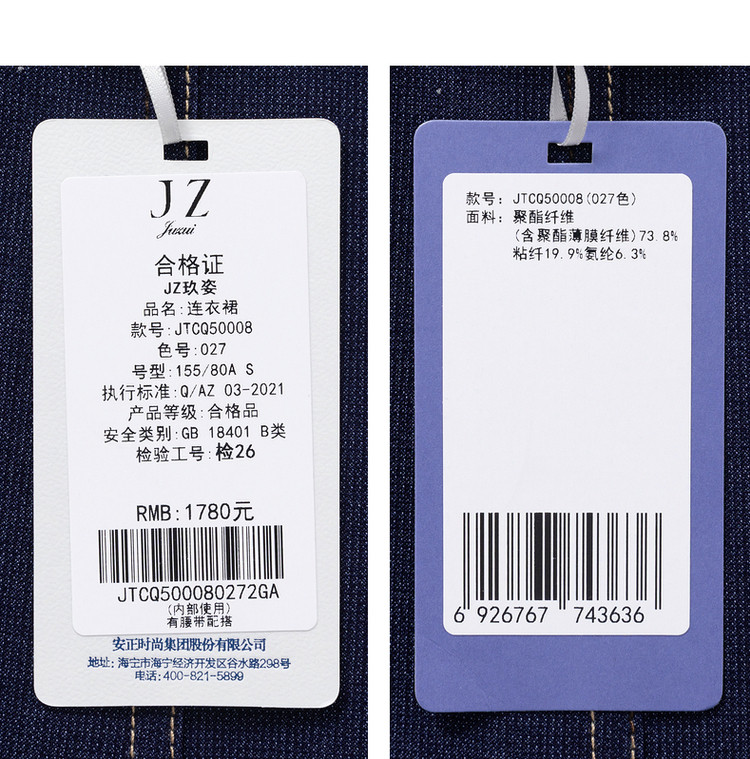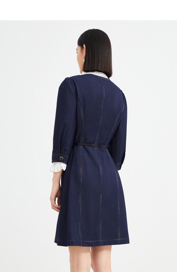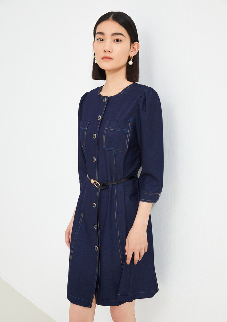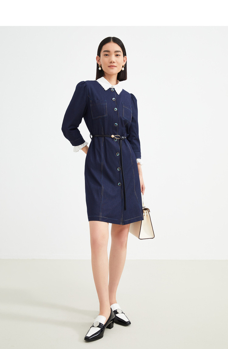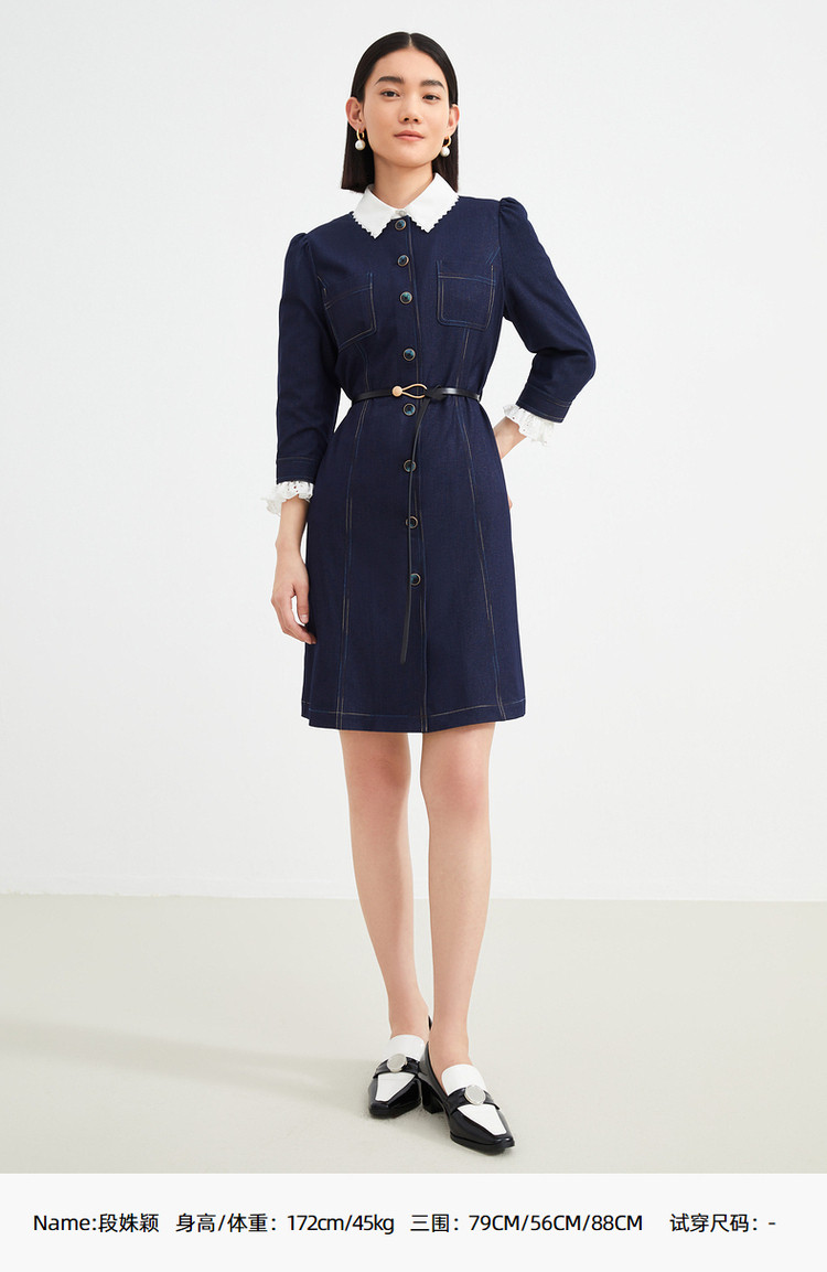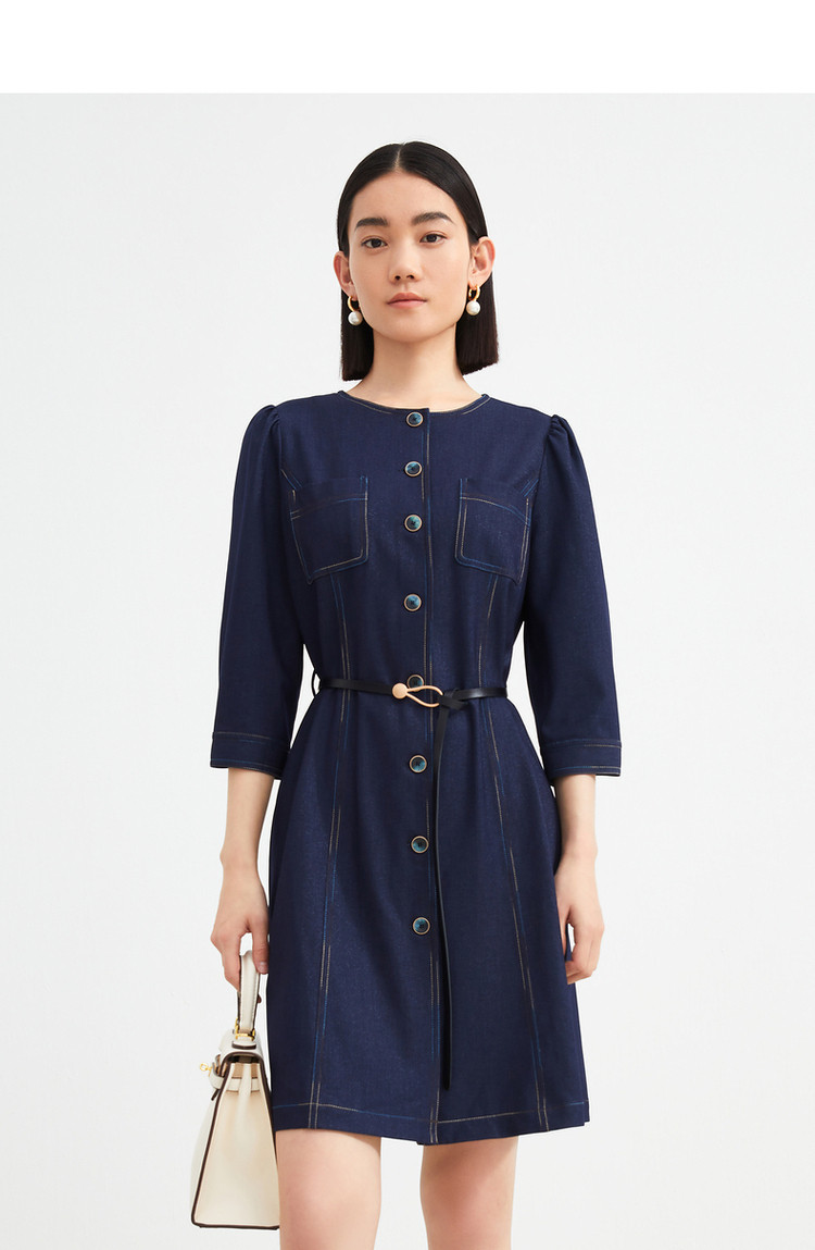 商品名称:JZ玖姿秋季通勤OL复古泡泡袖仿牛仔连衣裙女 319308