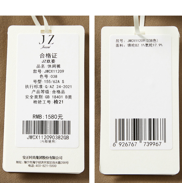 商品名称:JZ玖姿商场同款棕色休闲裤女装夏季新长款裤子薄JWCX11209 141388