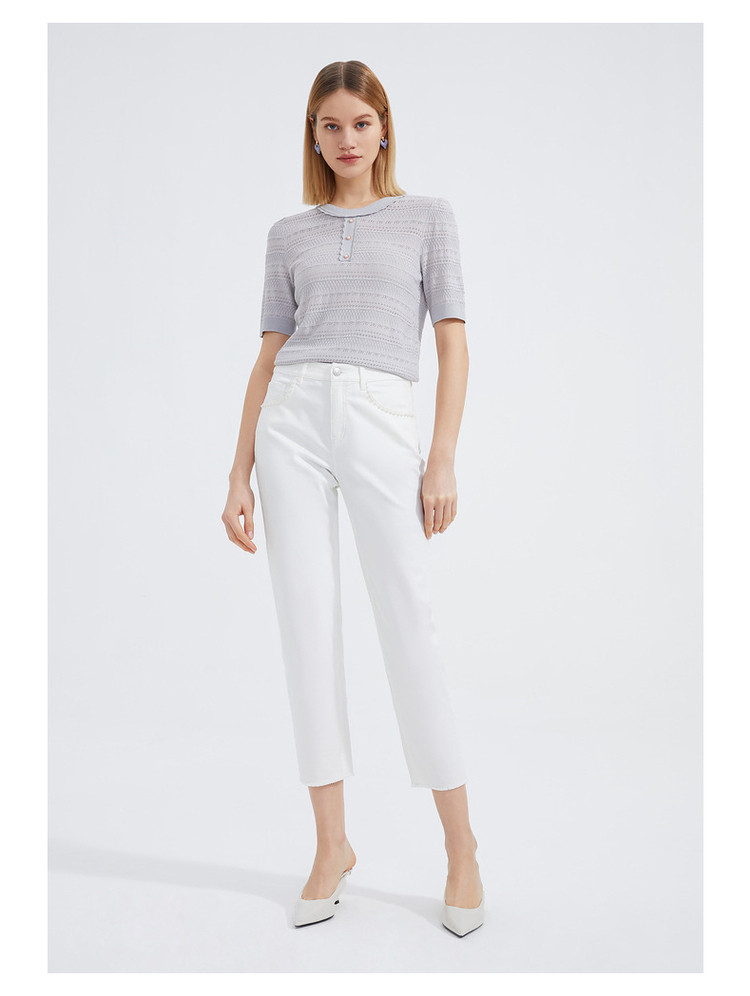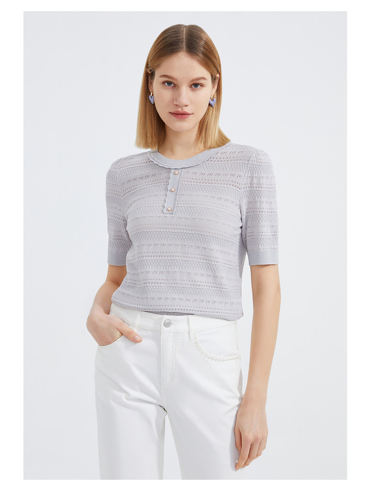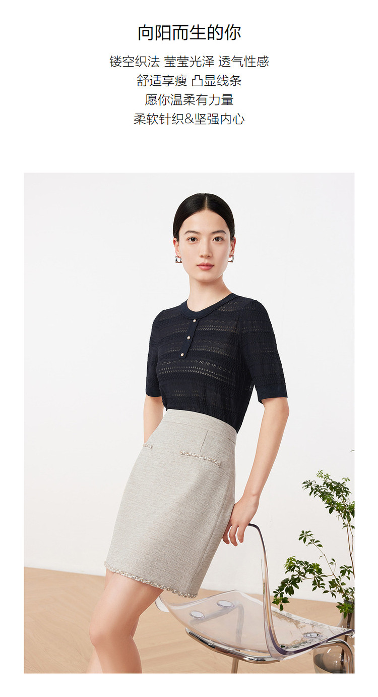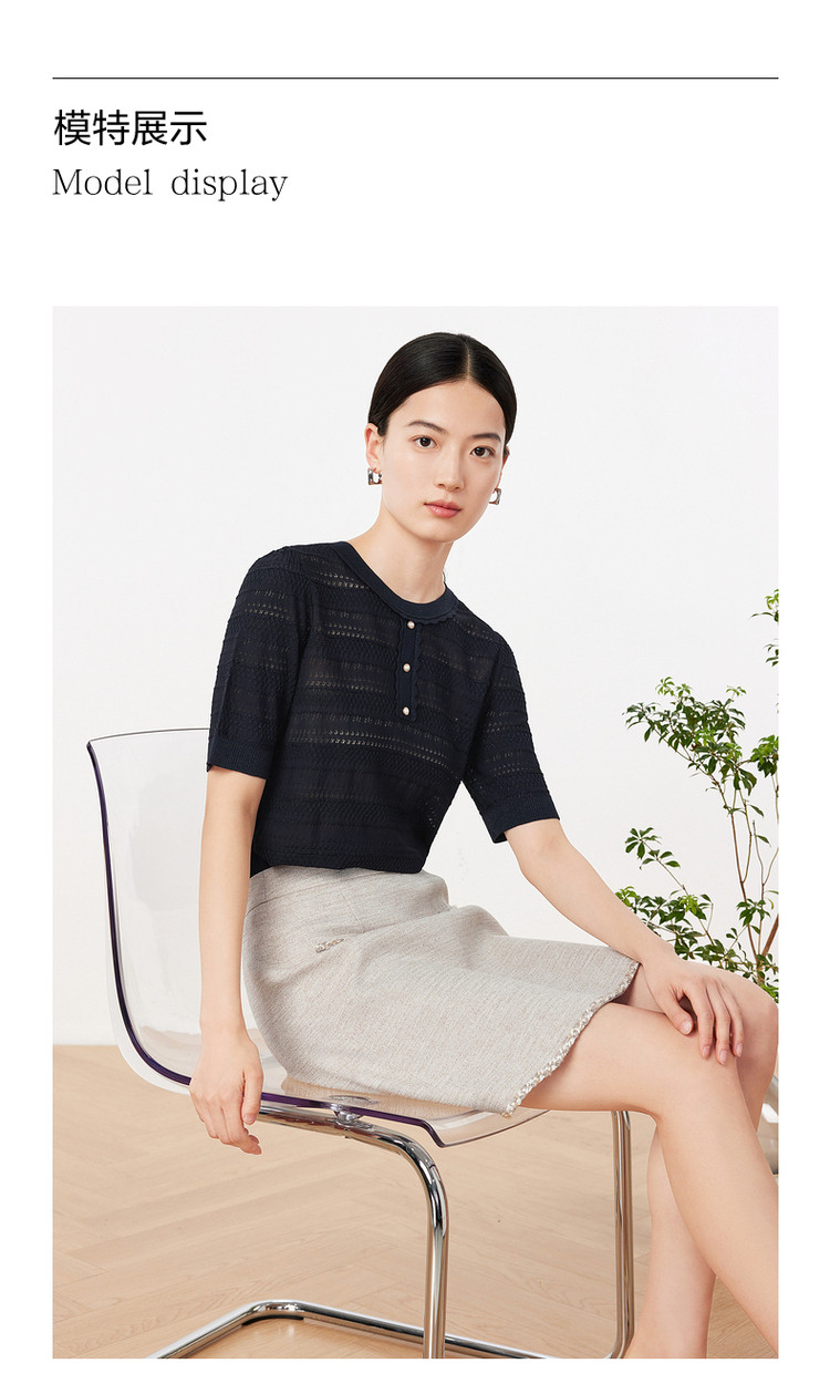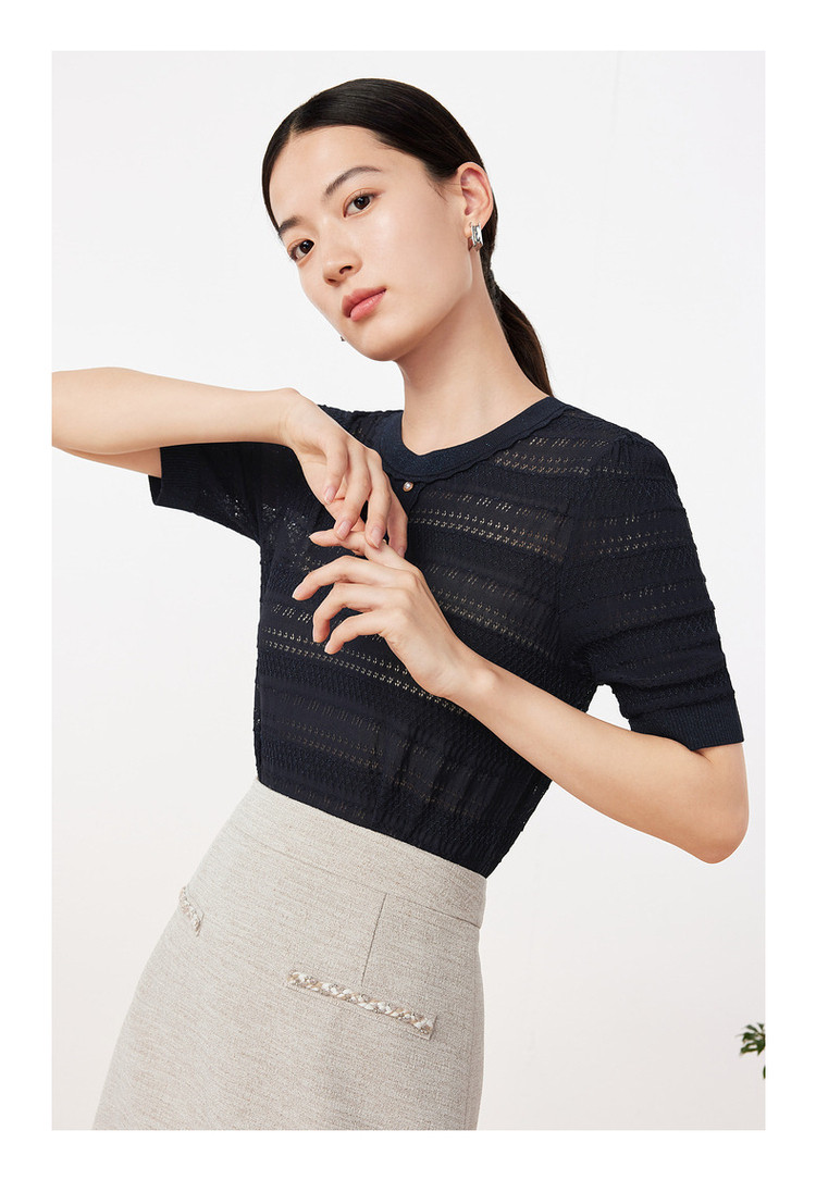 玖姿夏季镂空透气优雅珍珠扣女式针织衫 484236