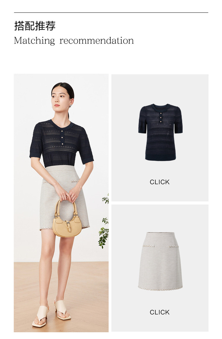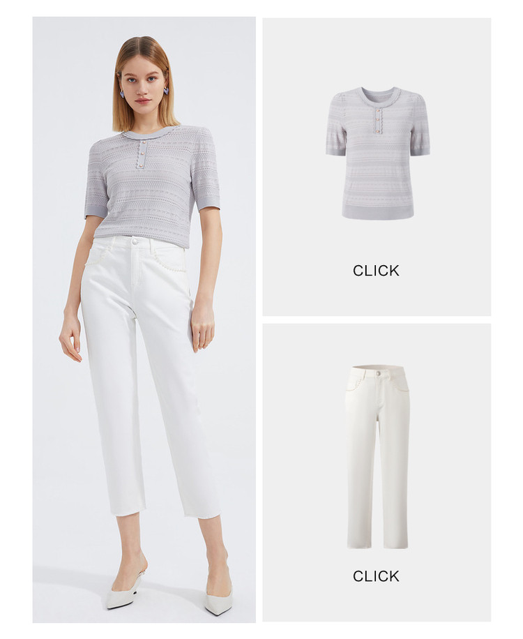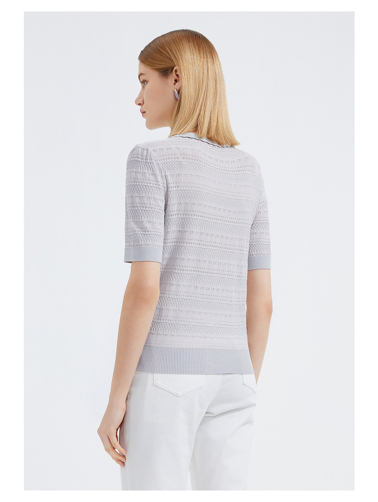 商品名称:玖姿夏季镂空透气优雅珍珠扣女式针织衫 484236