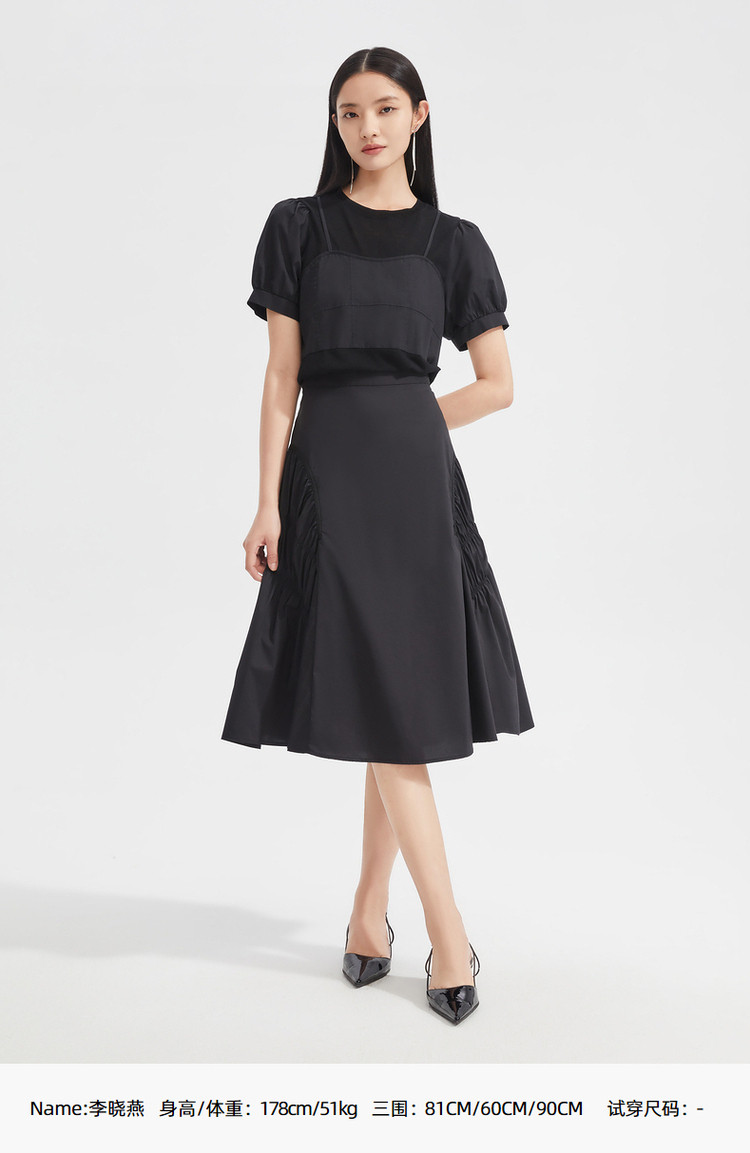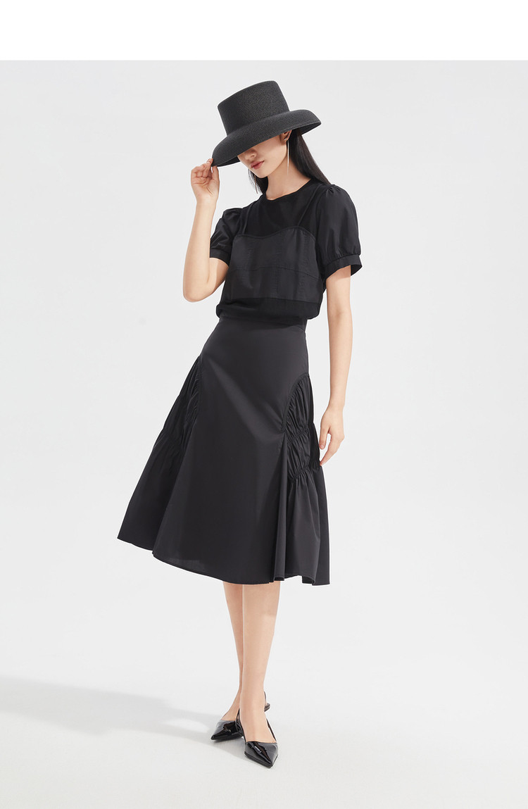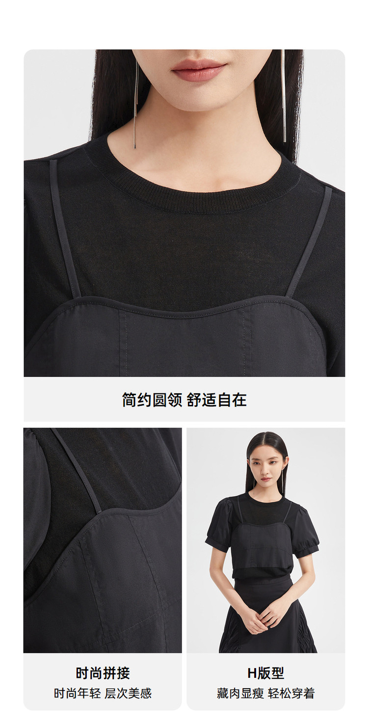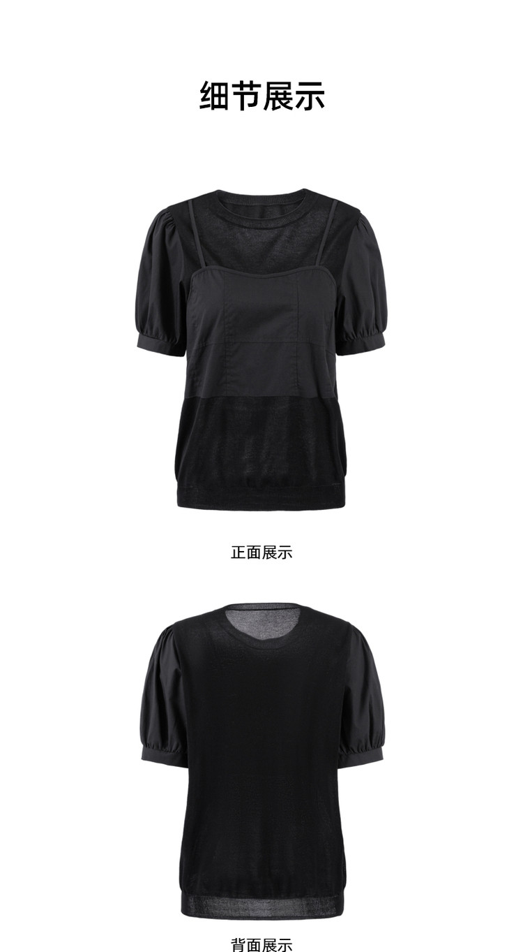 商品名称:JZ玖姿夏季时尚法式拼接泡泡袖简约圆领女式针织衫 701580