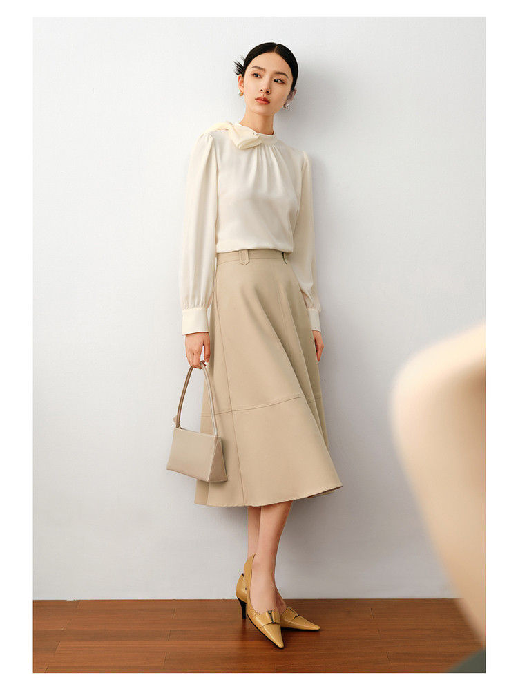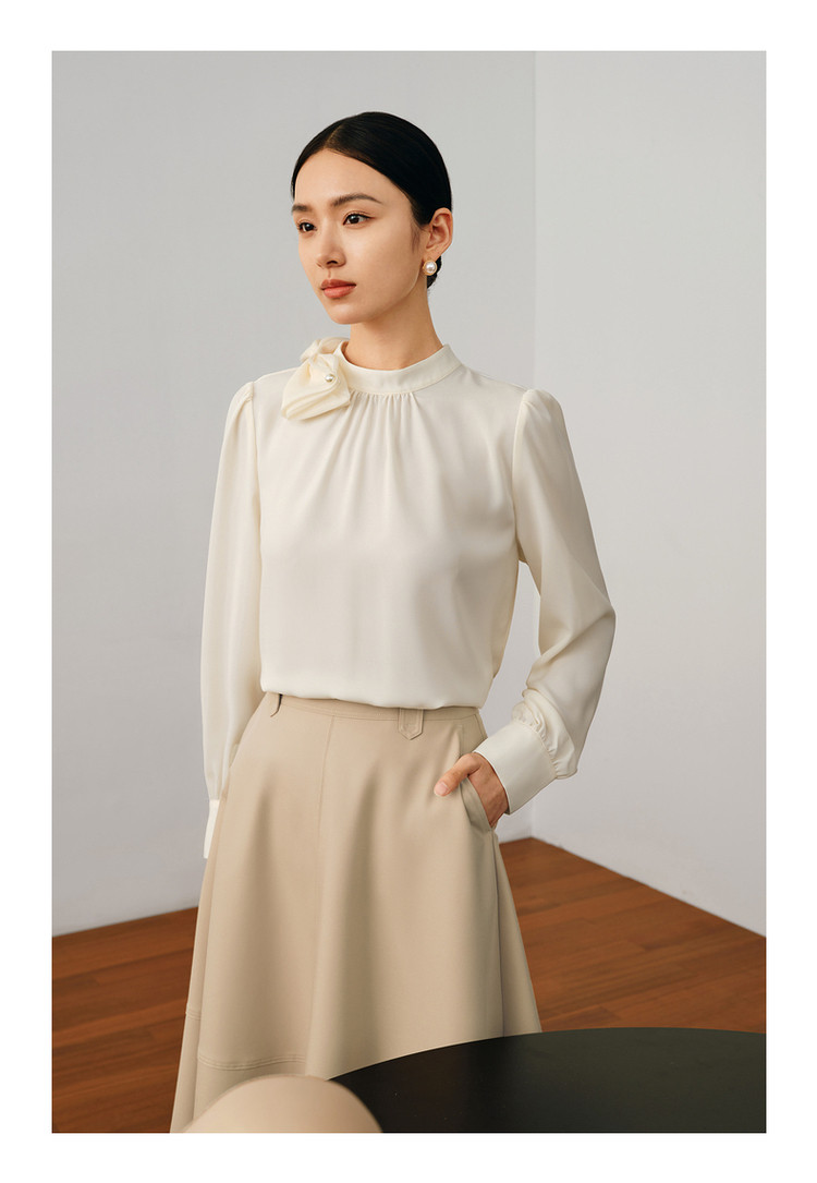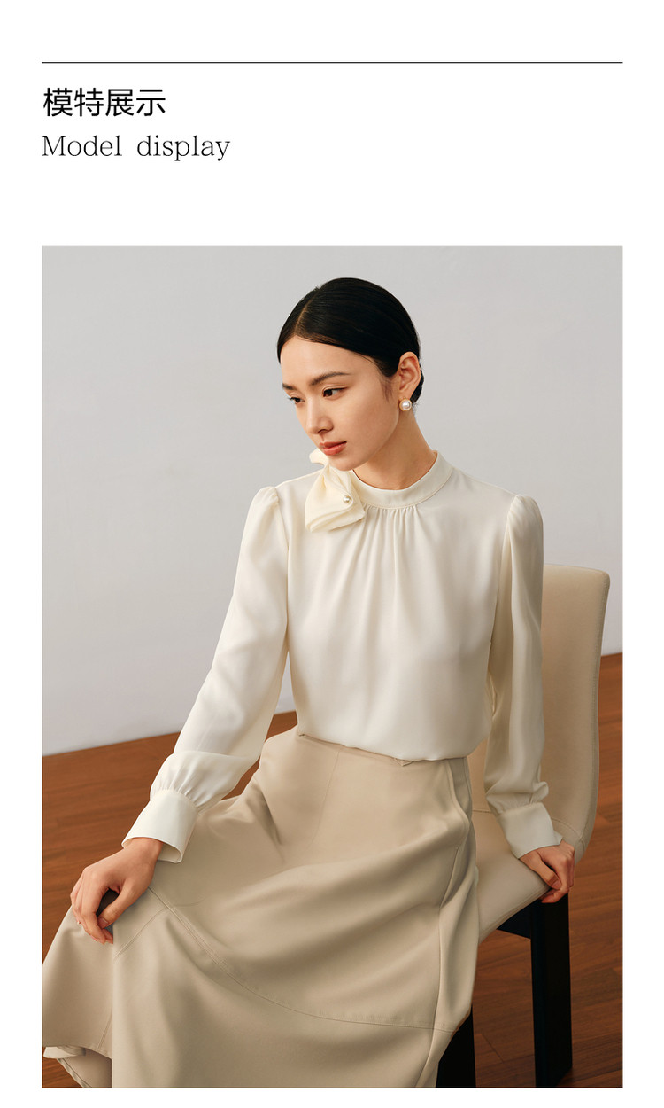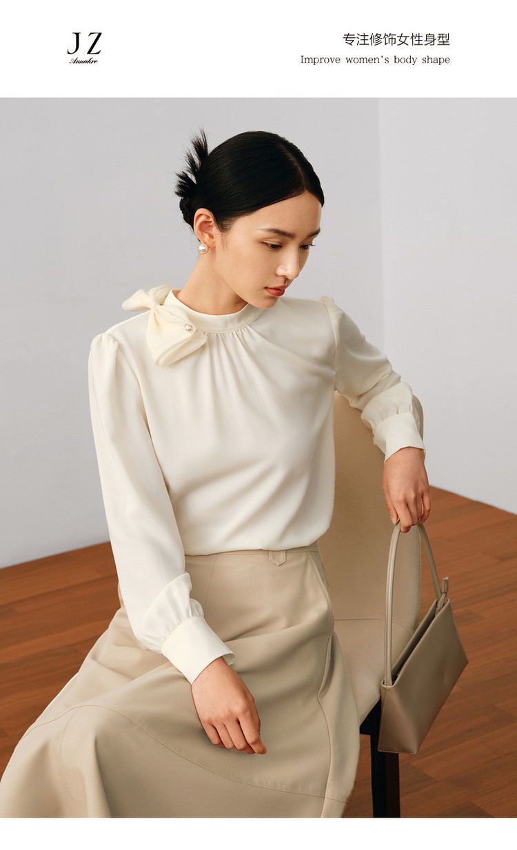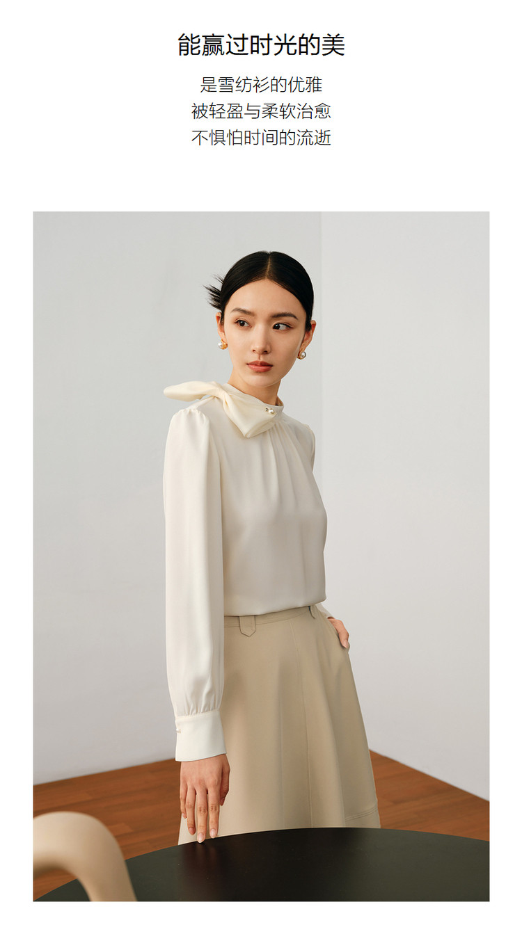 商品名称:玖姿旗下安娜蔻系列轻熟风复古可拆蝴蝶结雪纺长袖上衣女秋季 754060