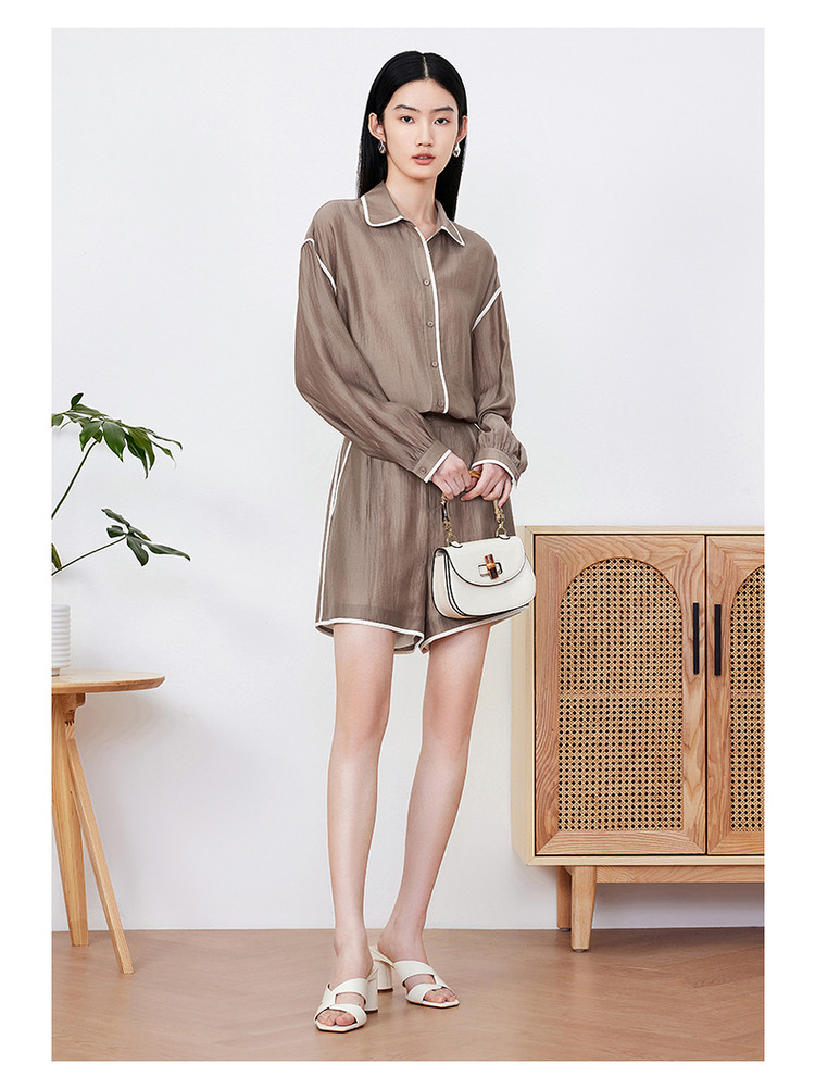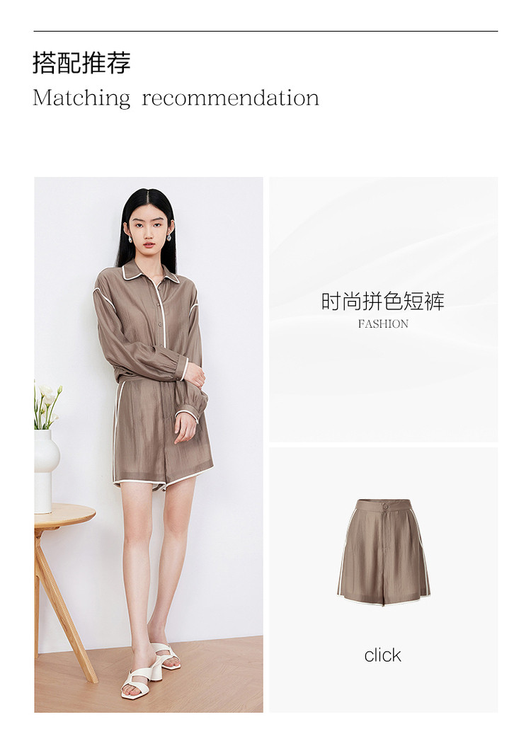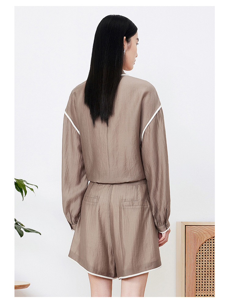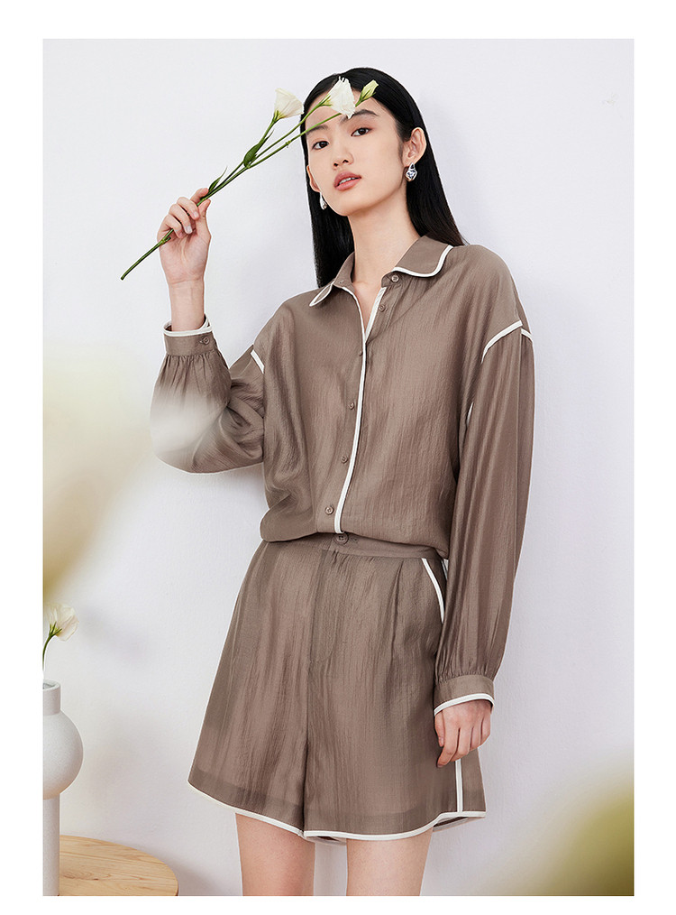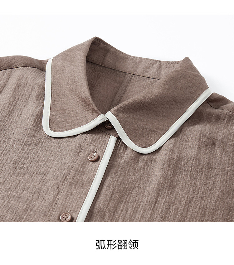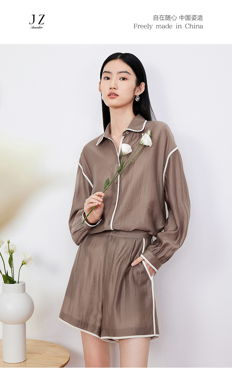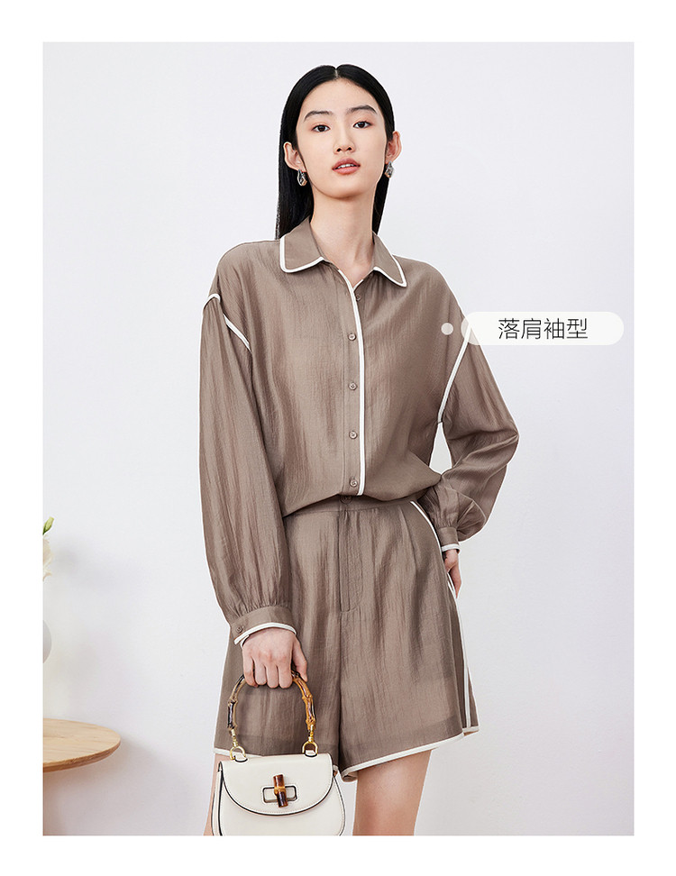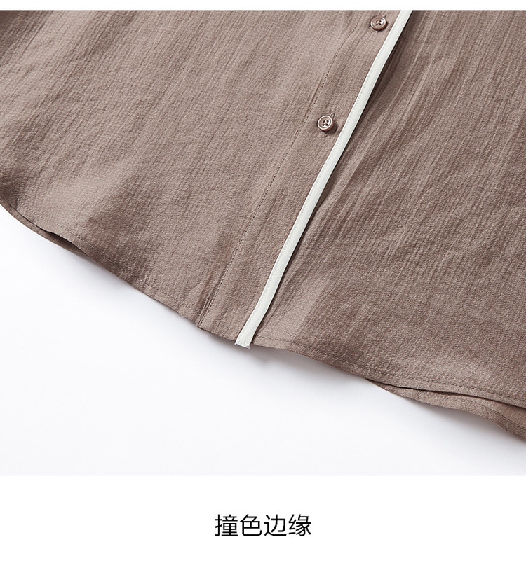 商品名称:玖姿旗下安娜蔻系列肌理微皱衬衫女装夏季落肩袖宽松休闲外套 507020