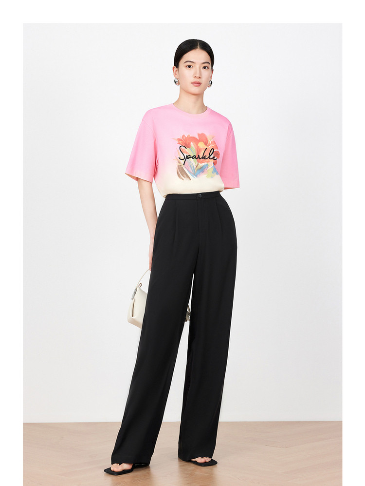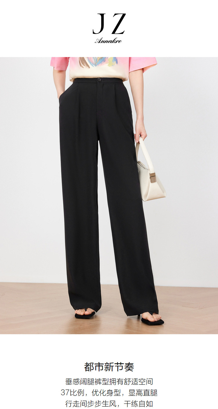 商品名称:玖姿旗下安娜蔻系列时尚压褶小众休闲裤女装夏季显高阔腿裤 880972