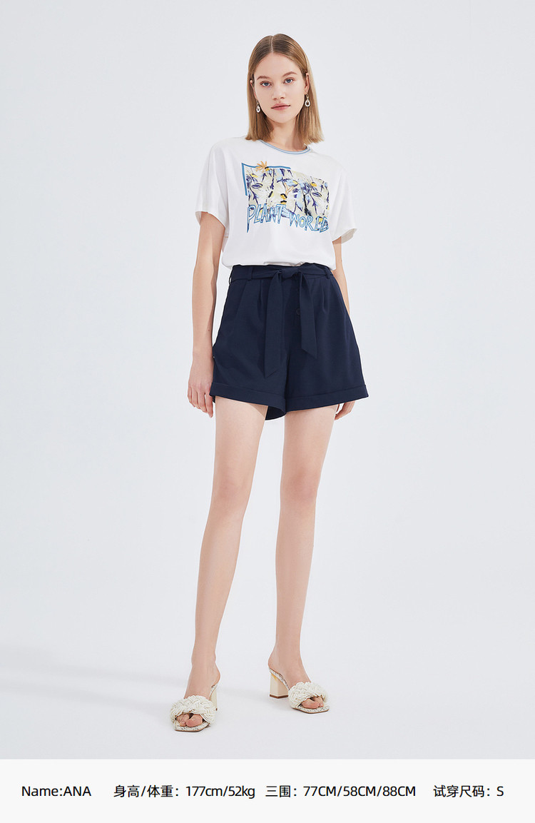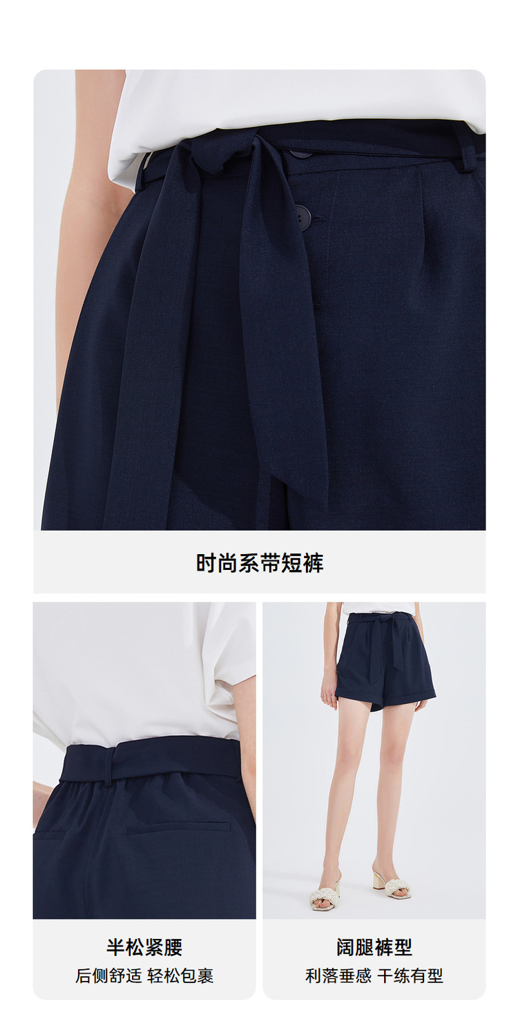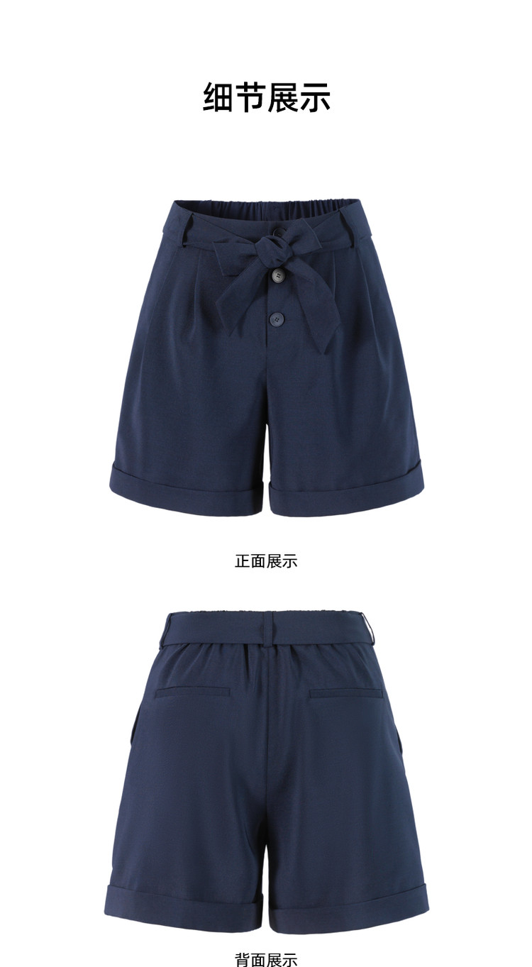 商品名称:JZ玖姿夏季时尚休闲半松紧系带阔腿休闲短裤女 067916